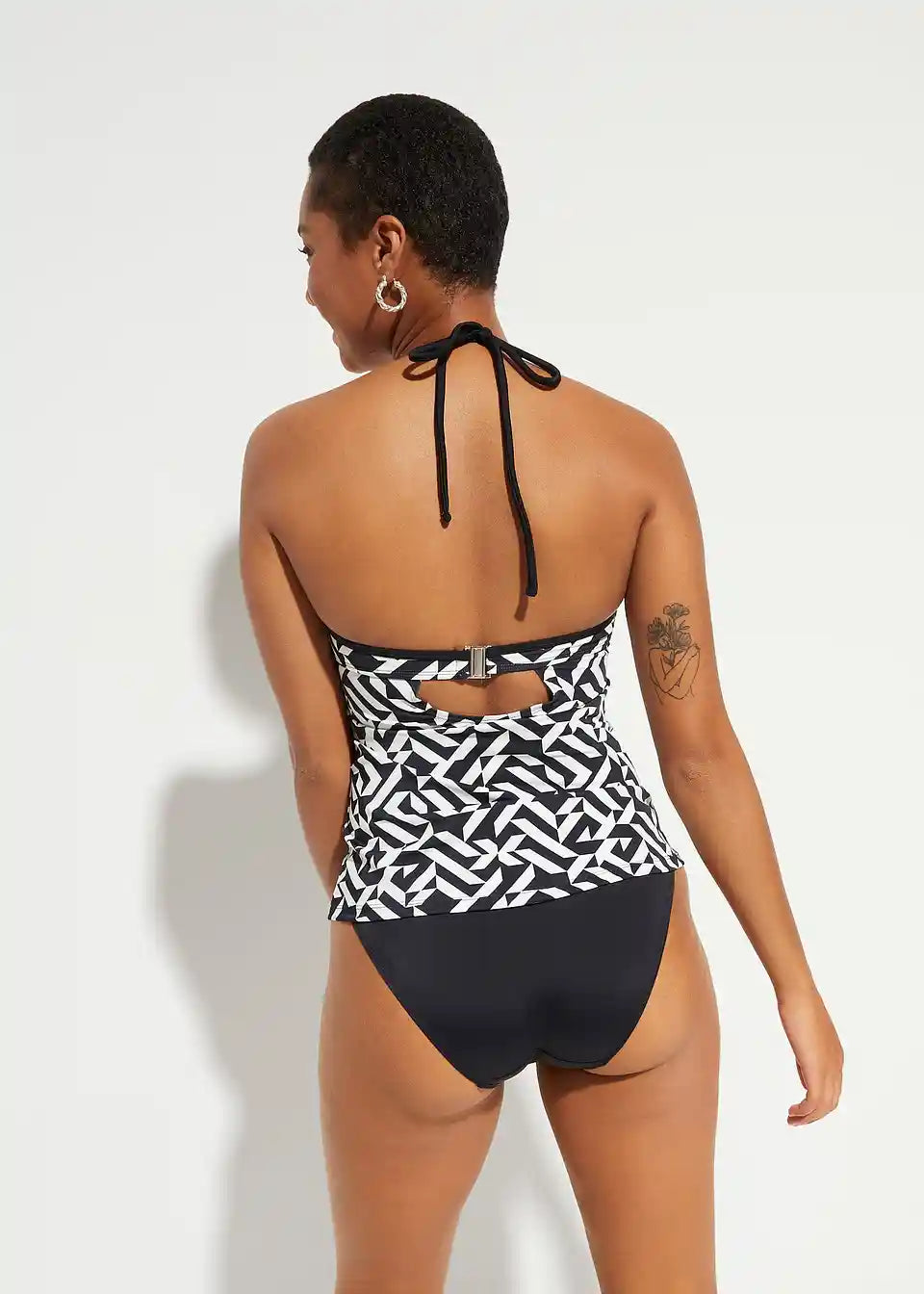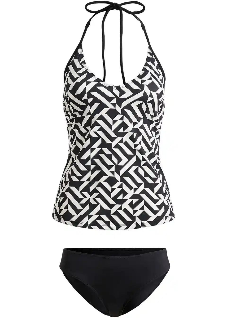 Schöner im Nacken zu bindenden Tankini mit graphischem Muster