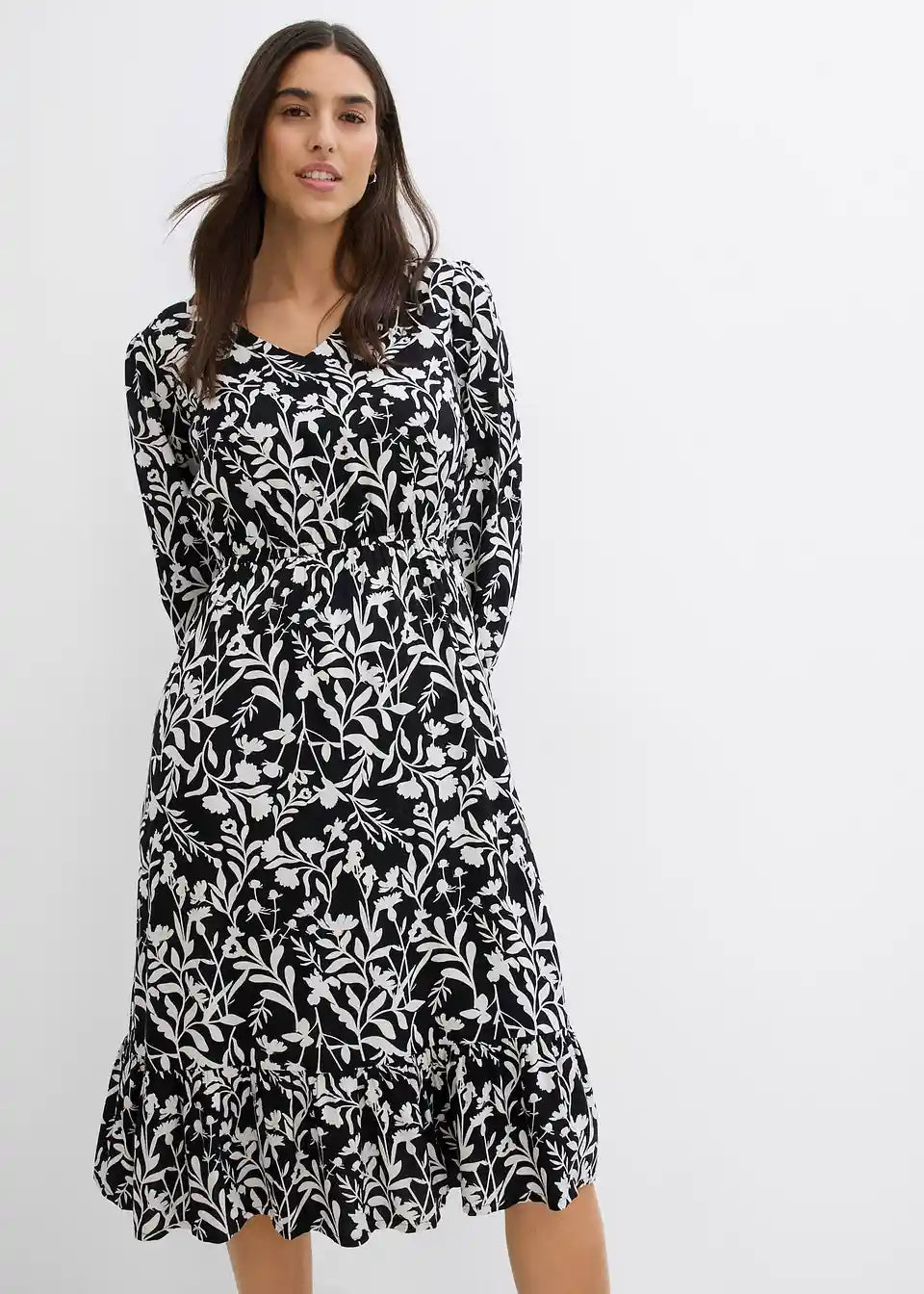Viskose-Webkleid mit Taschen und V-Ausschnitt