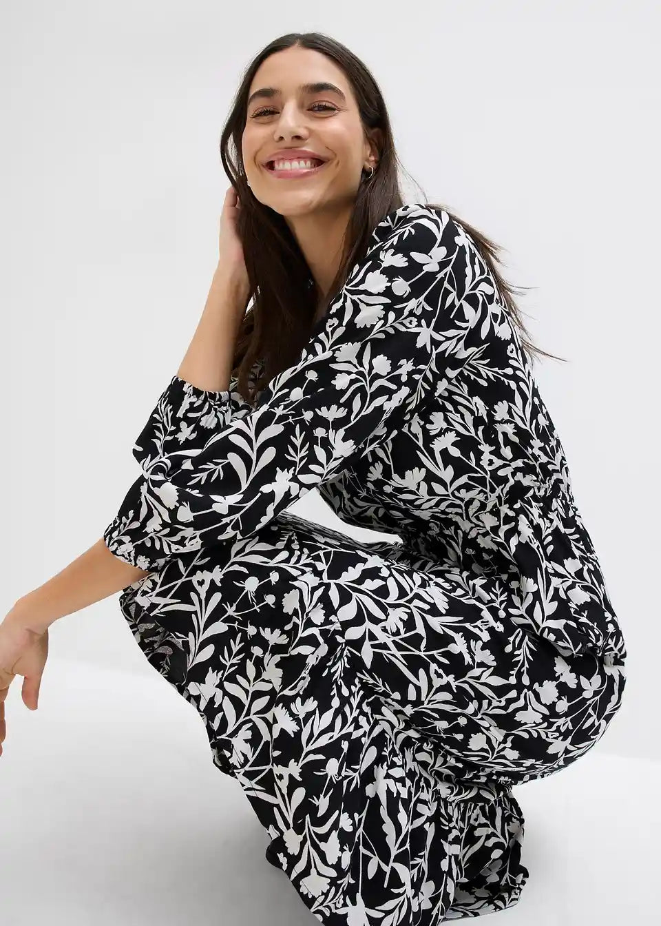 Farbe:schwarz/wollweiß geblümt