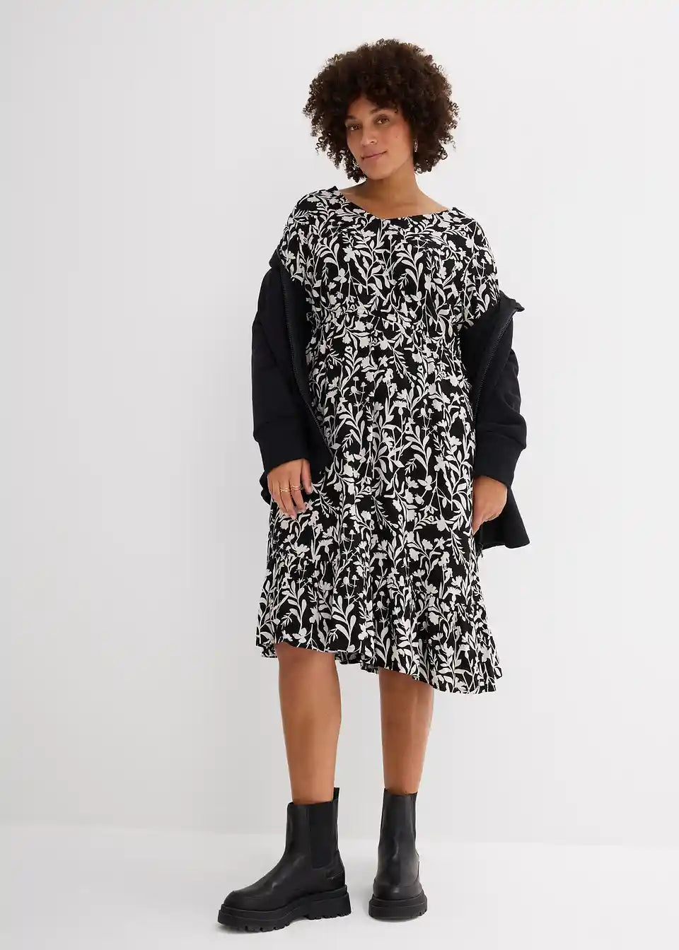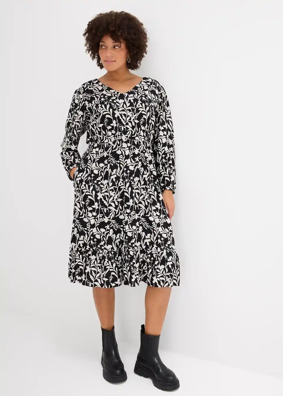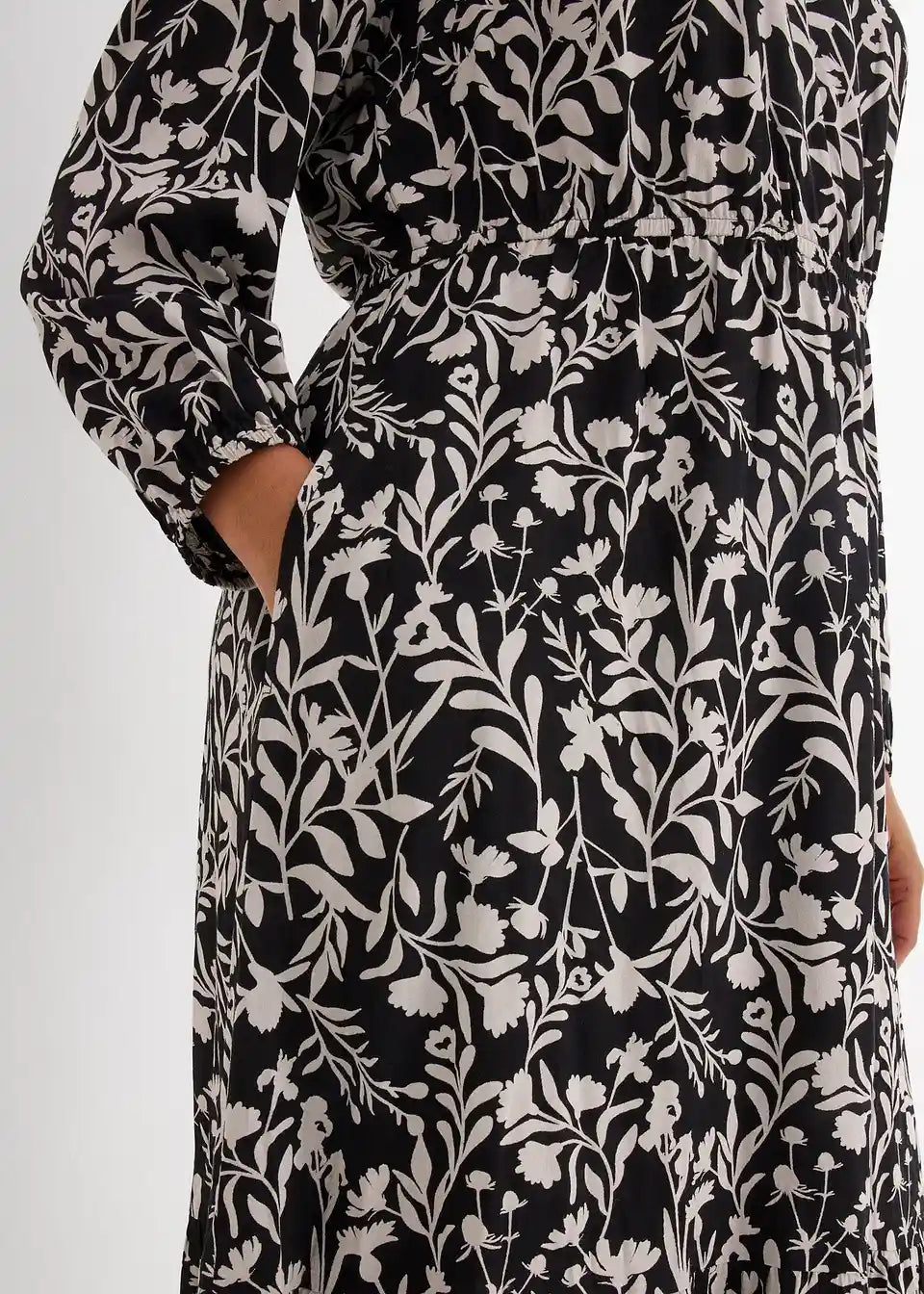 Viskose-Webkleid mit Taschen und V-Ausschnitt