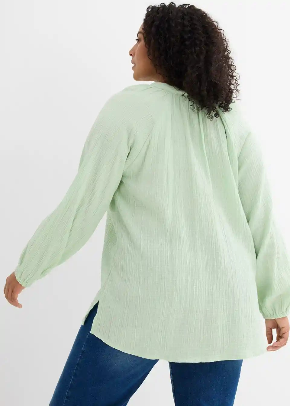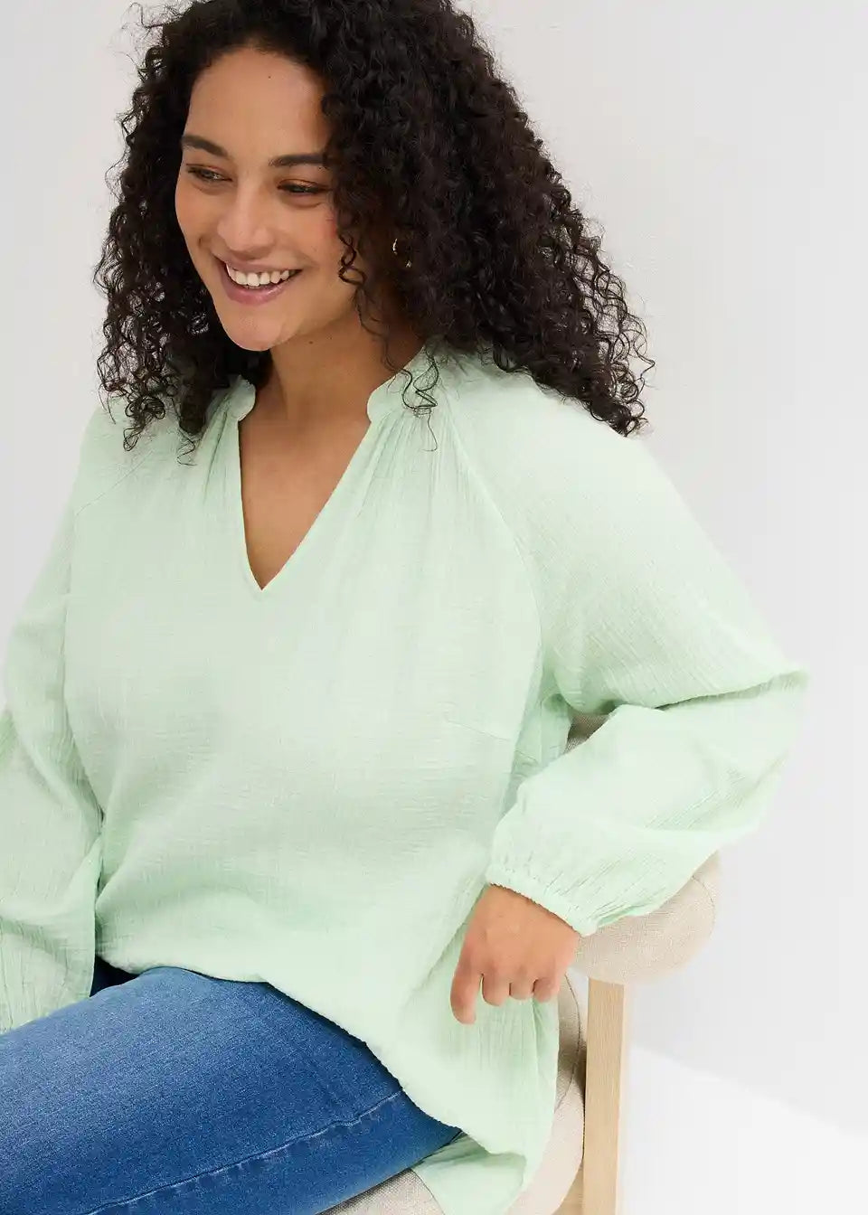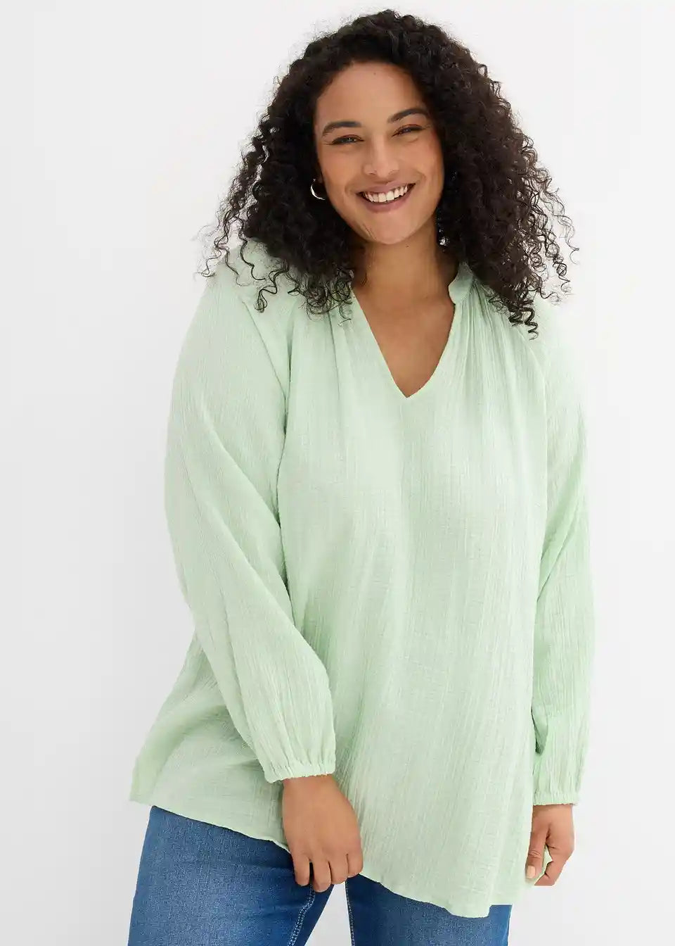 Langarm-Tunika aus Musselin mit V-Ausschnitt