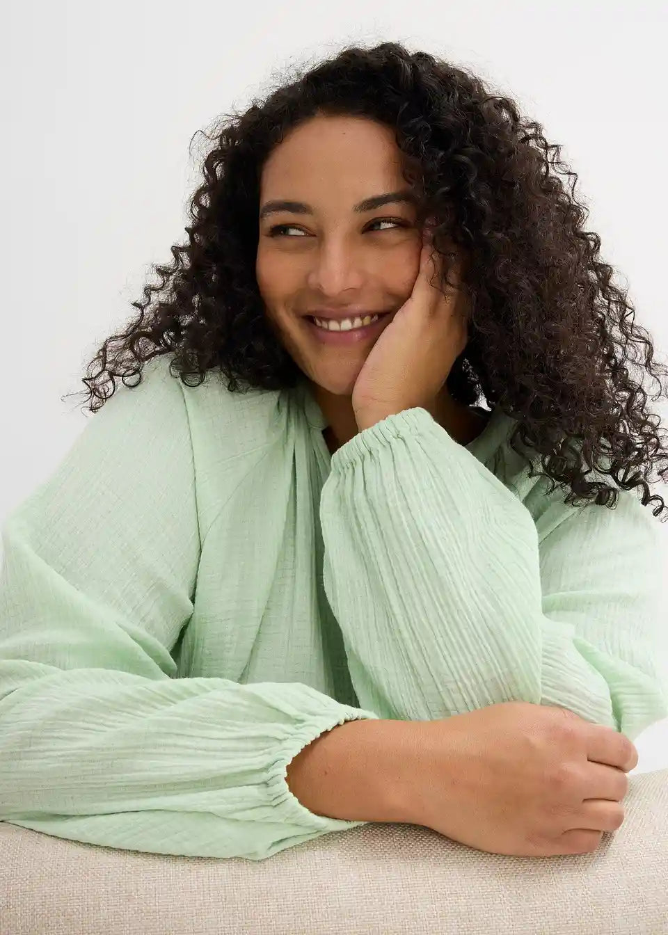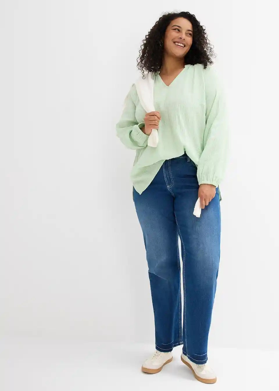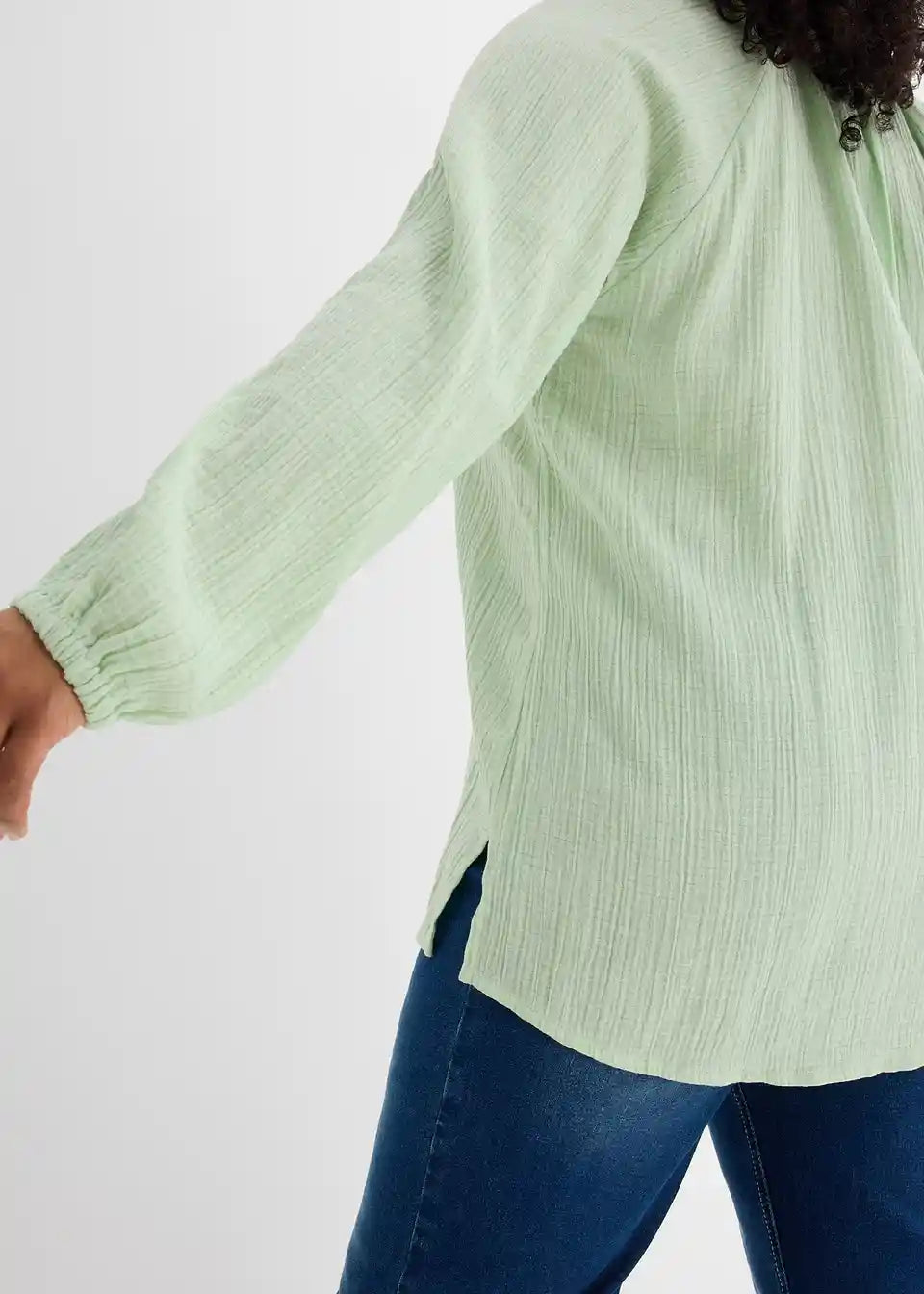 Langarm-Tunika aus Musselin mit V-Ausschnitt