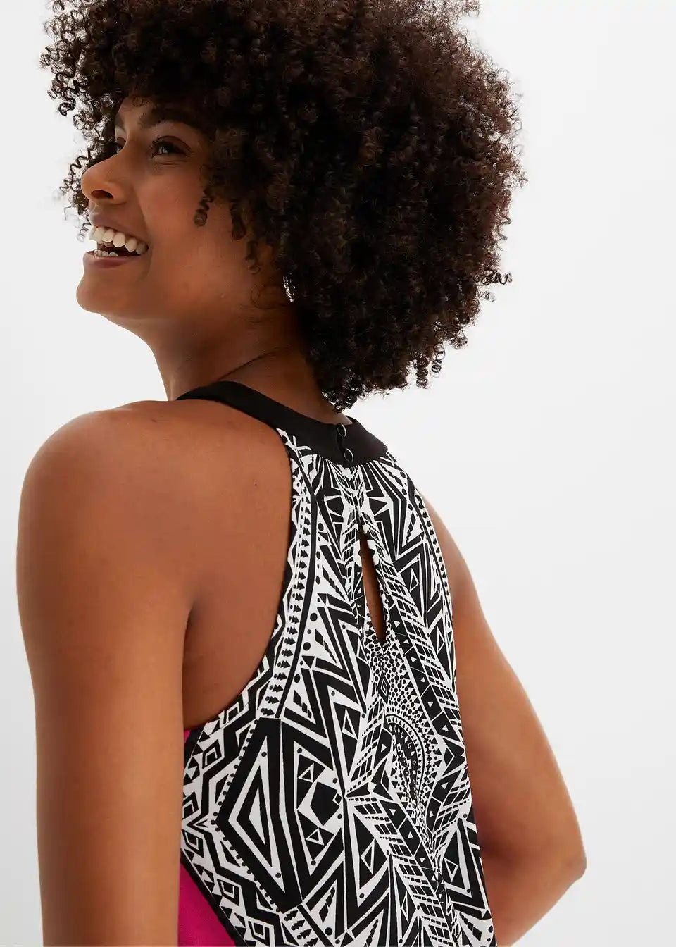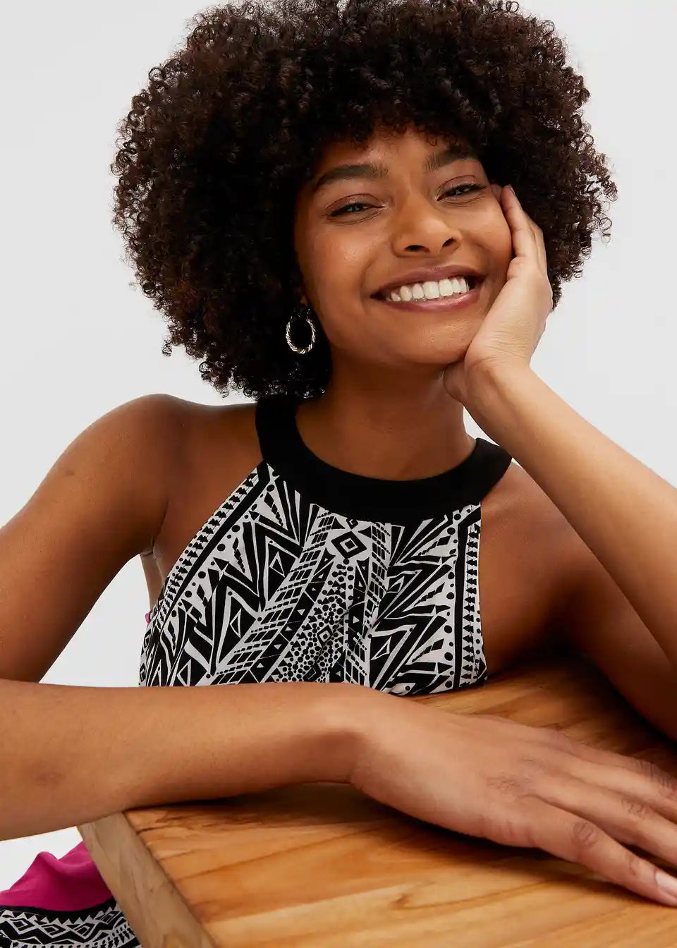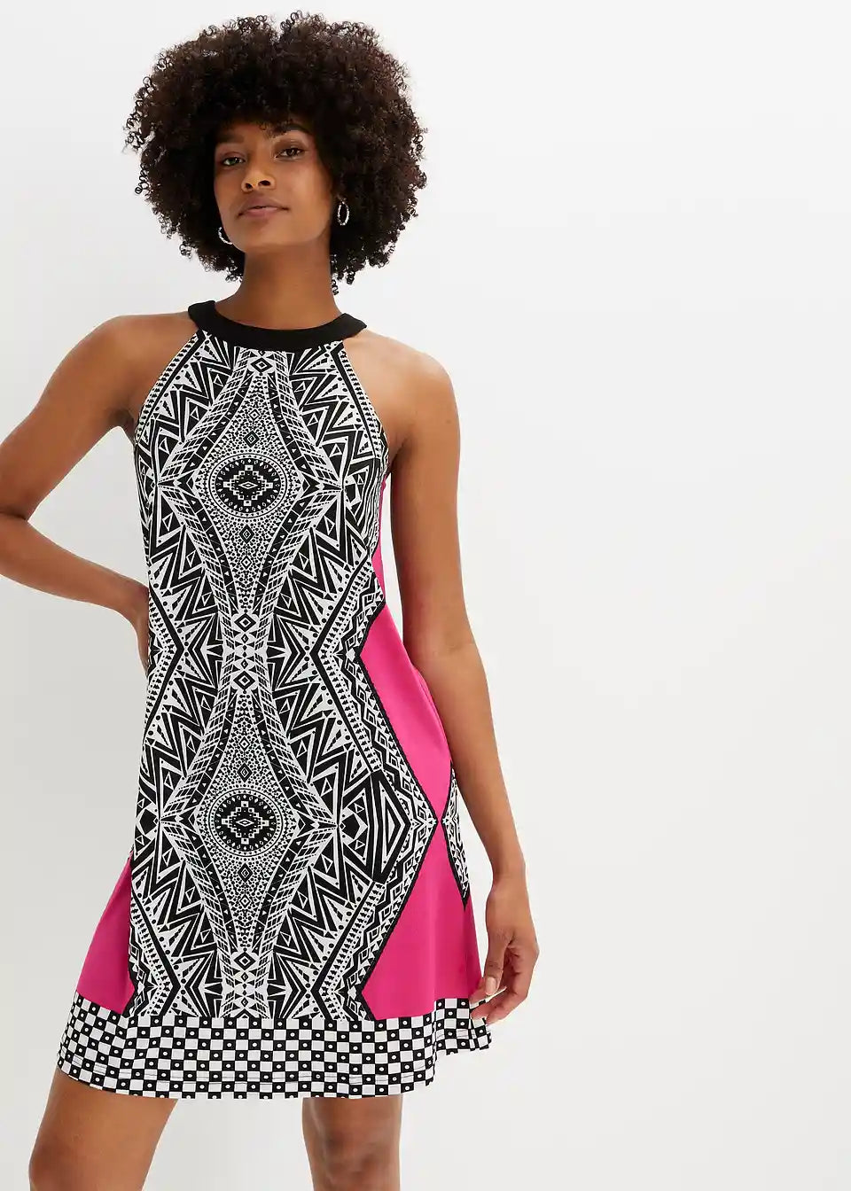 Modernes kurzes Neckholder-Kleid mit schönem Druck