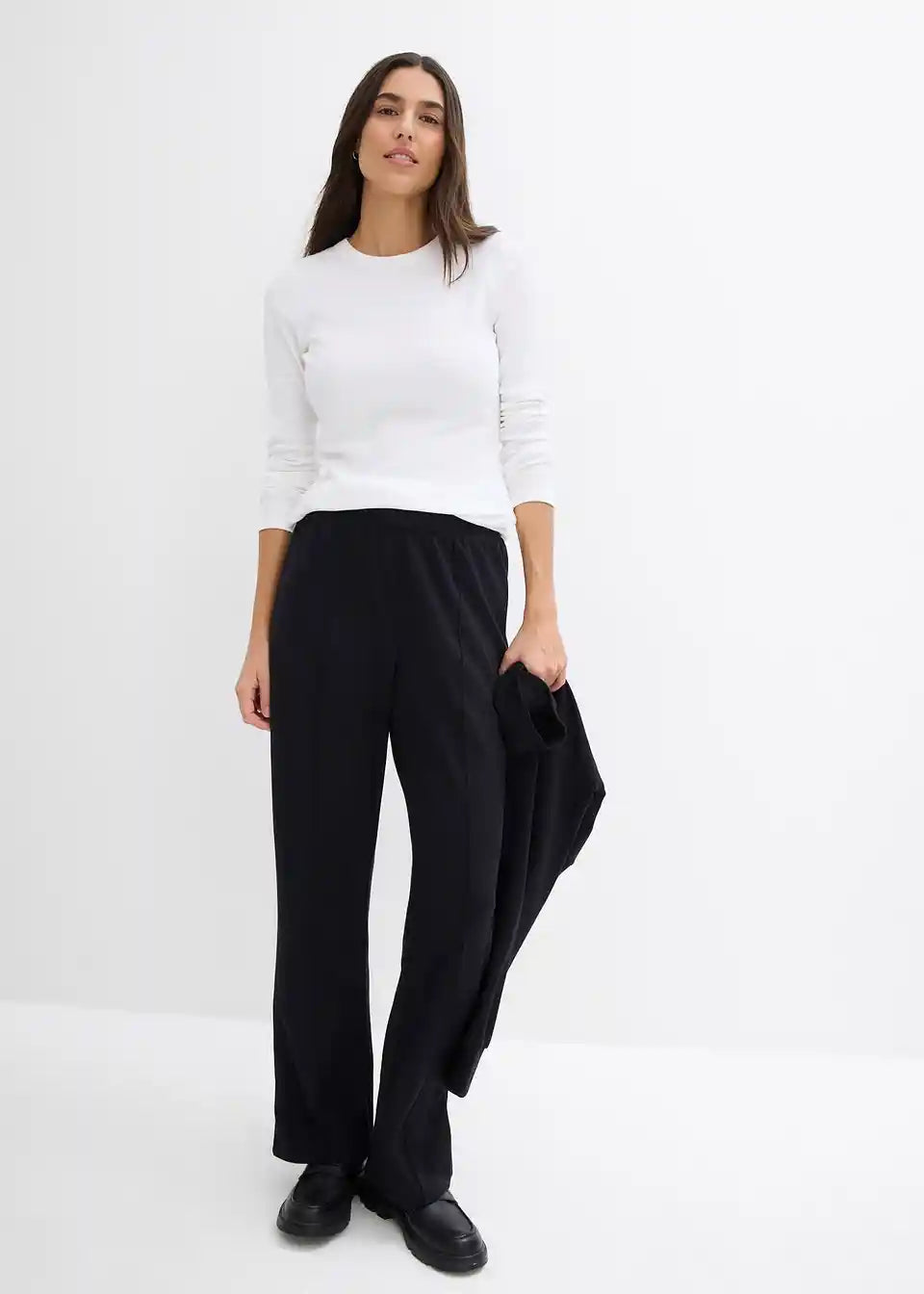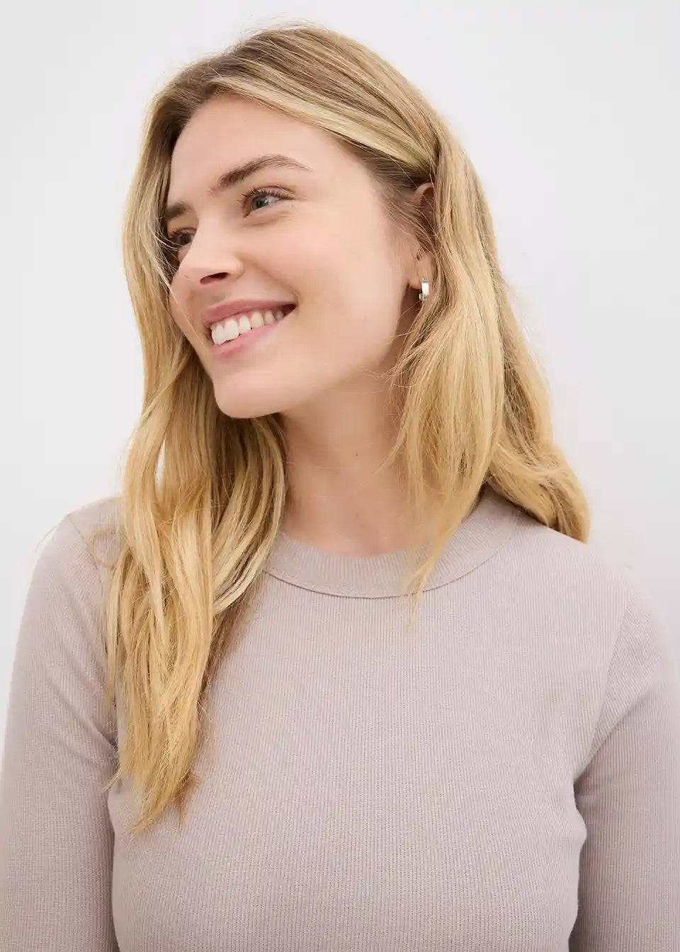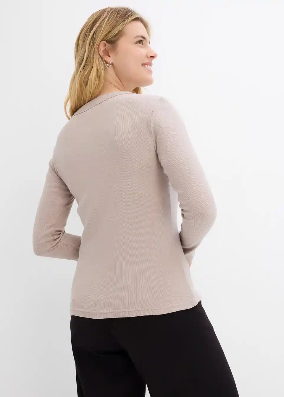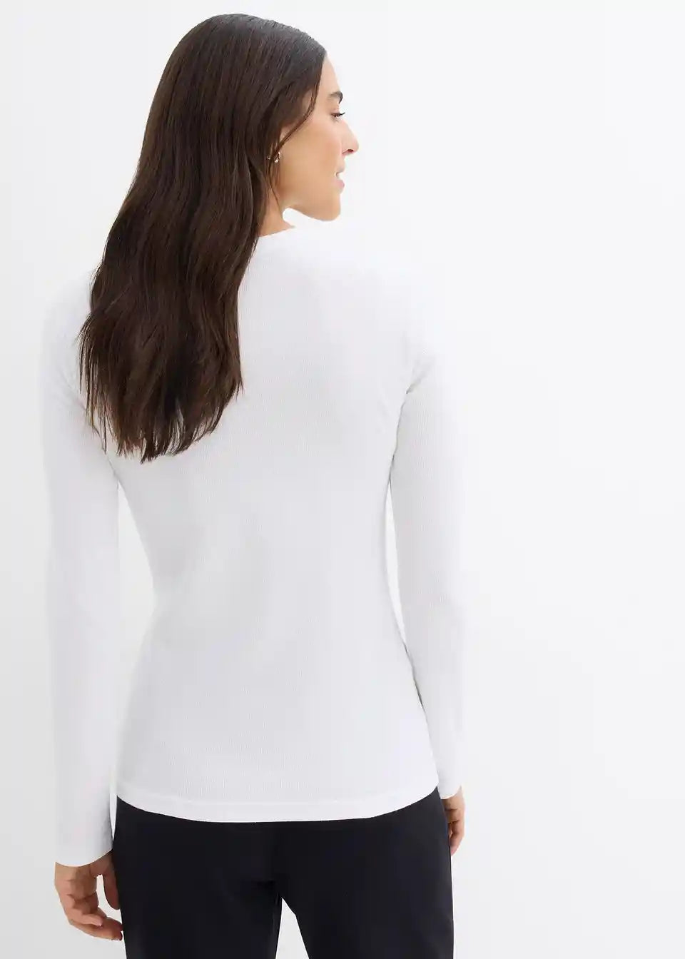 Bequemes Langarm-Rippshirt mit Bio-Baumwolle und Rundhalsausschnitt. Länge in Gr. 40/42 ca. 66cm, maschinenwaschbar.