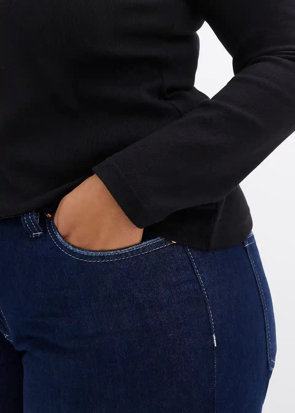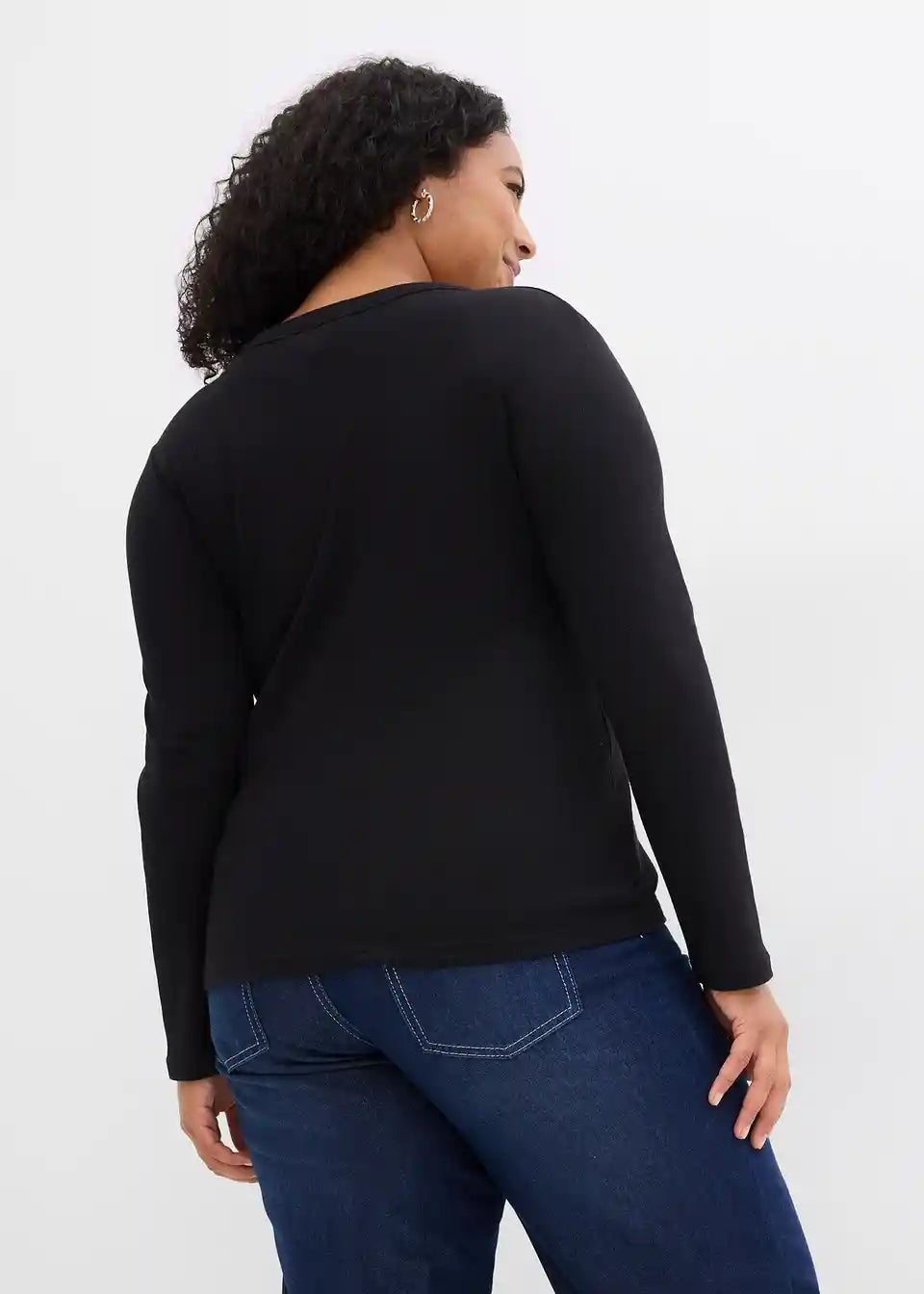 Bequemes Langarm-Rippshirt mit Bio-Baumwolle und Rundhalsausschnitt. Länge in Gr. 40/42 ca. 66cm, maschinenwaschbar.