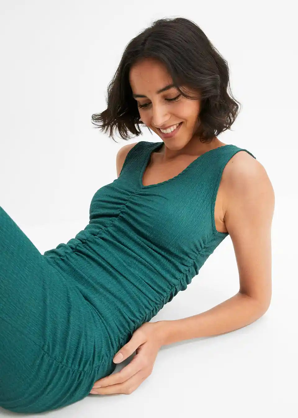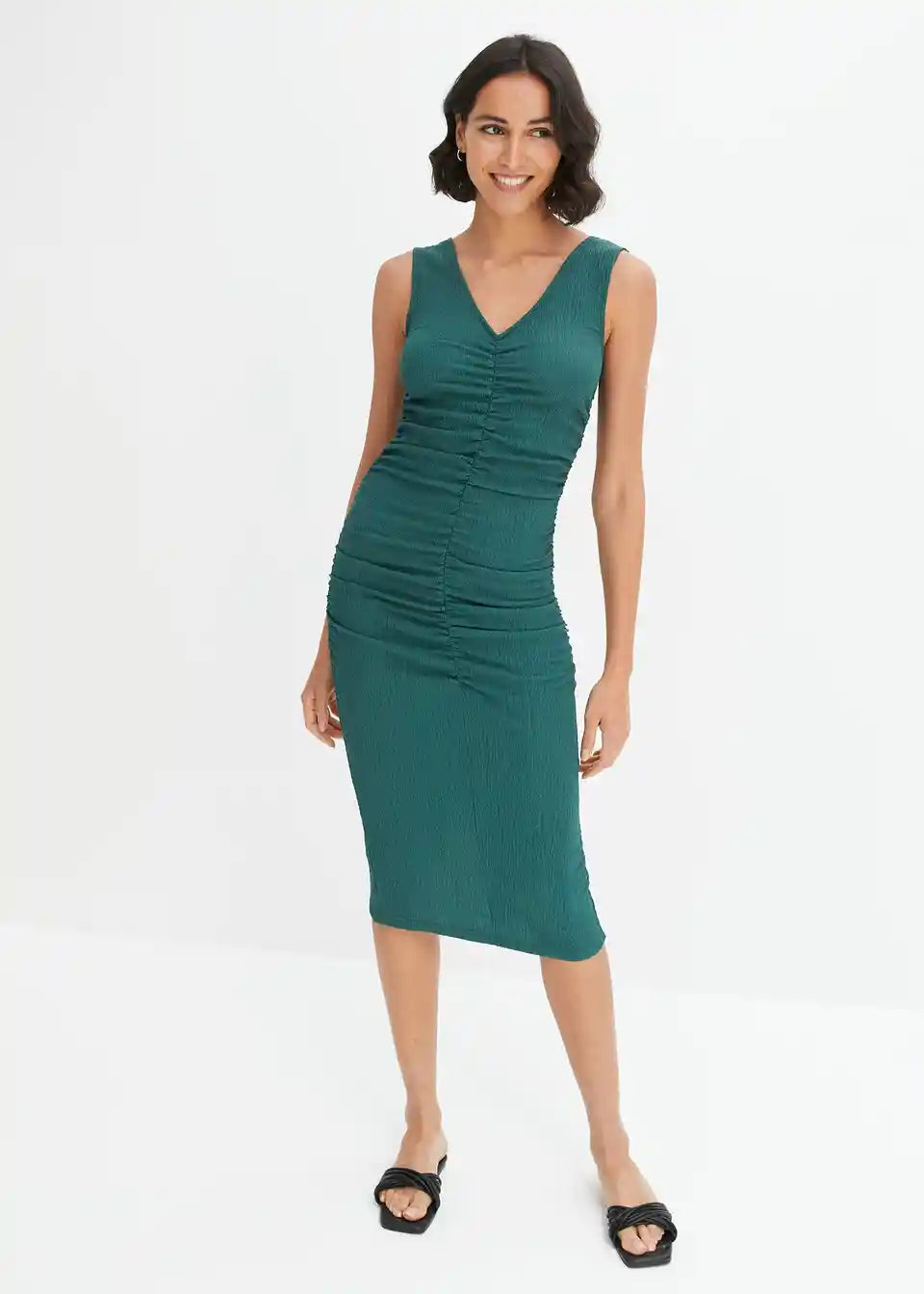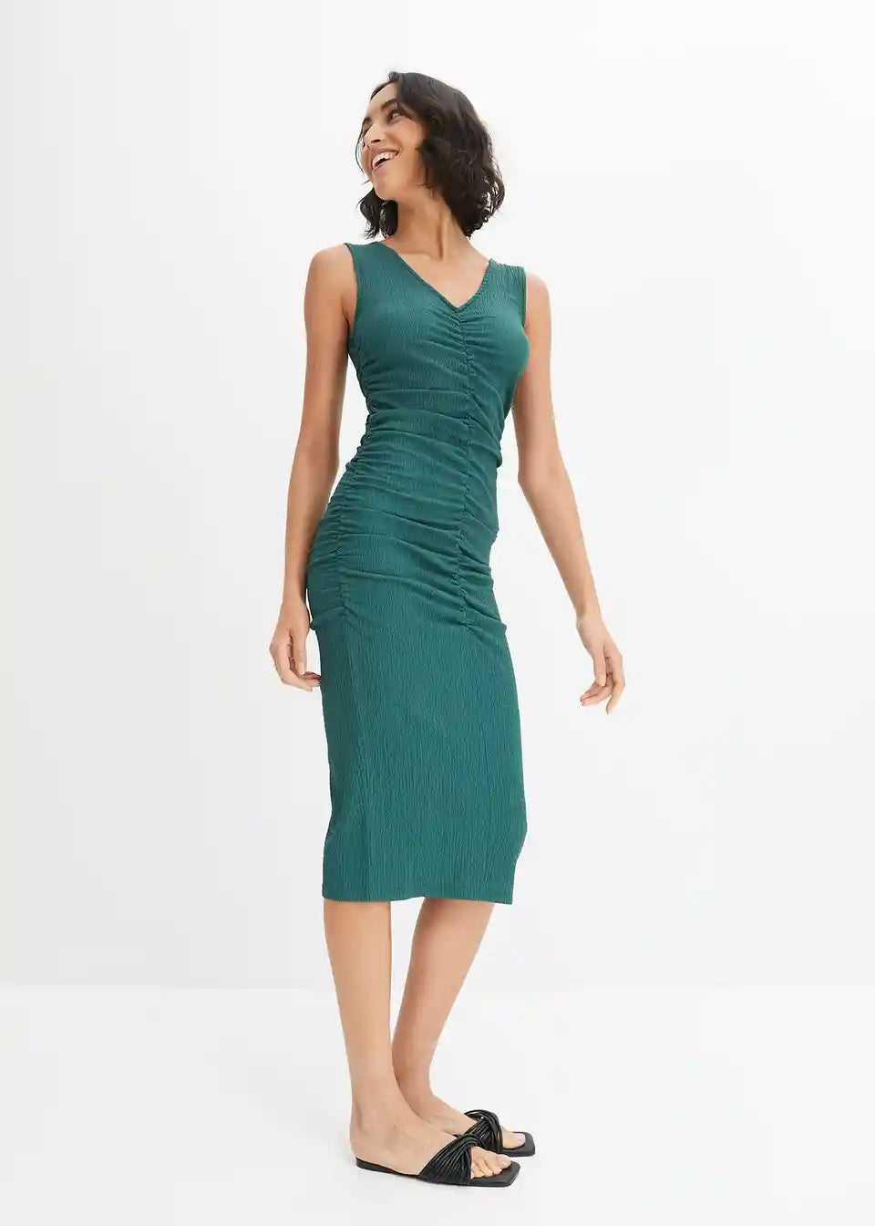 Sitz gut und ist angenehm zu tragen. Eine dezente Bluse, offen darüber angezogen, oder eine kurze Jacke, dann ist das Kleid auch alltagstauglich.