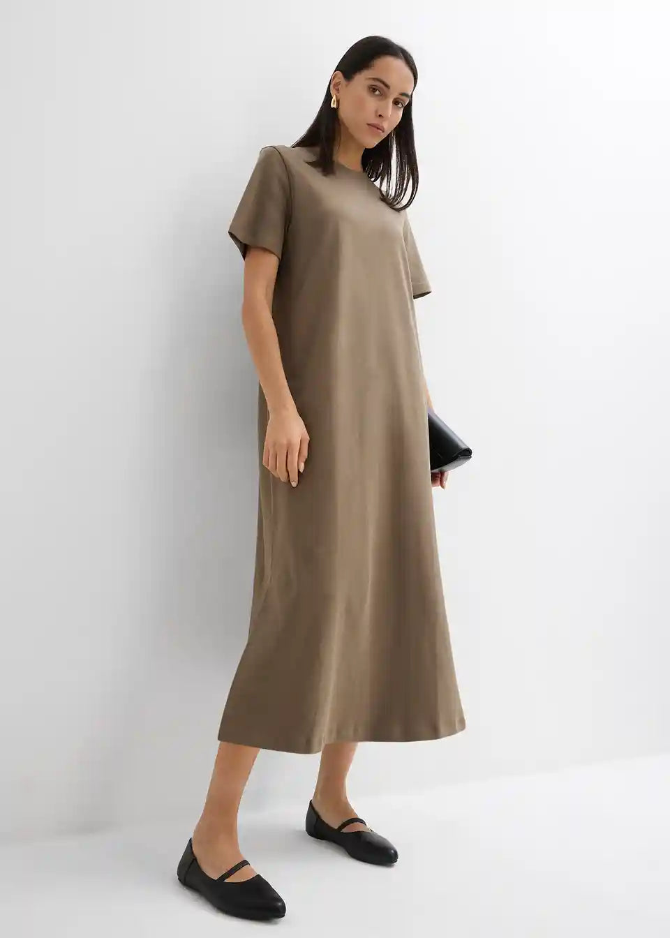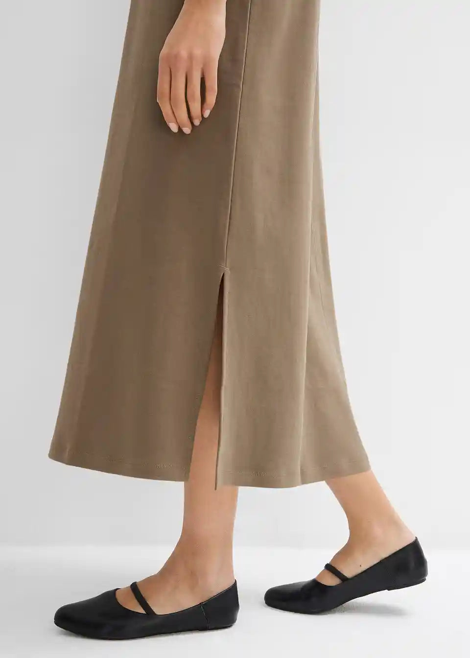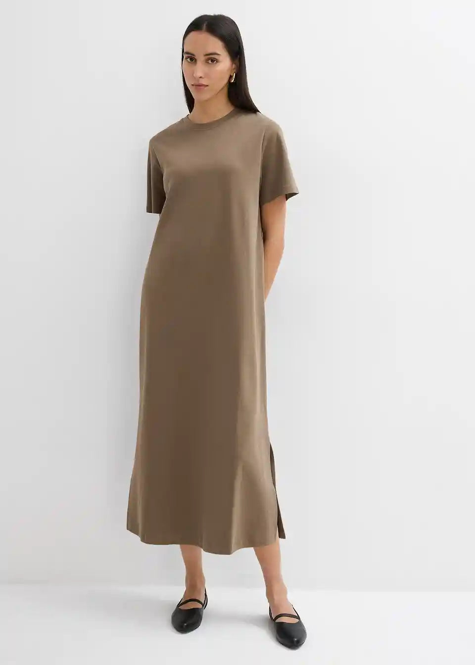 Maxikleid mit kurzem Arm und seitlichen Schlitzen