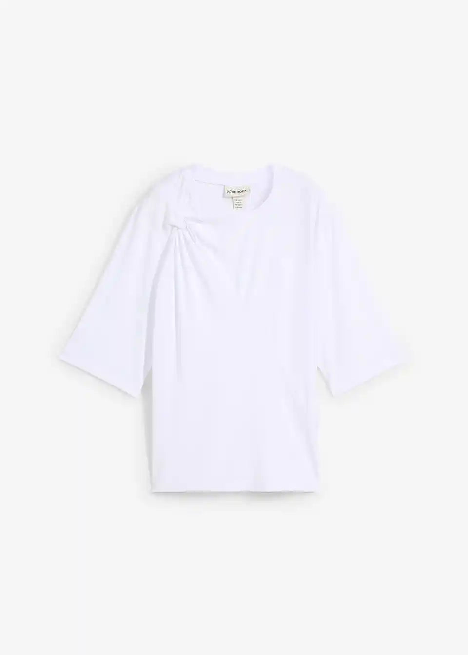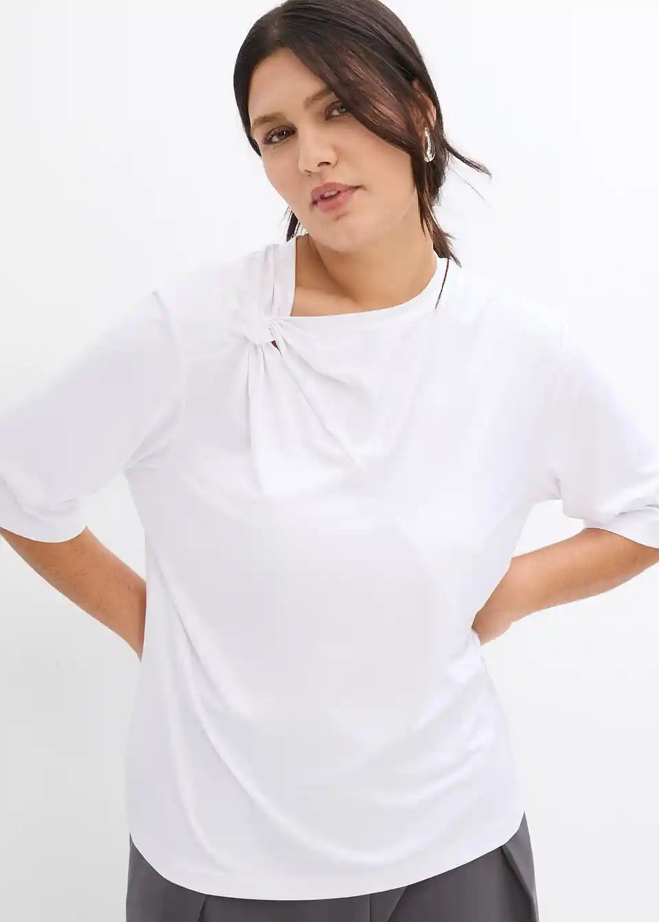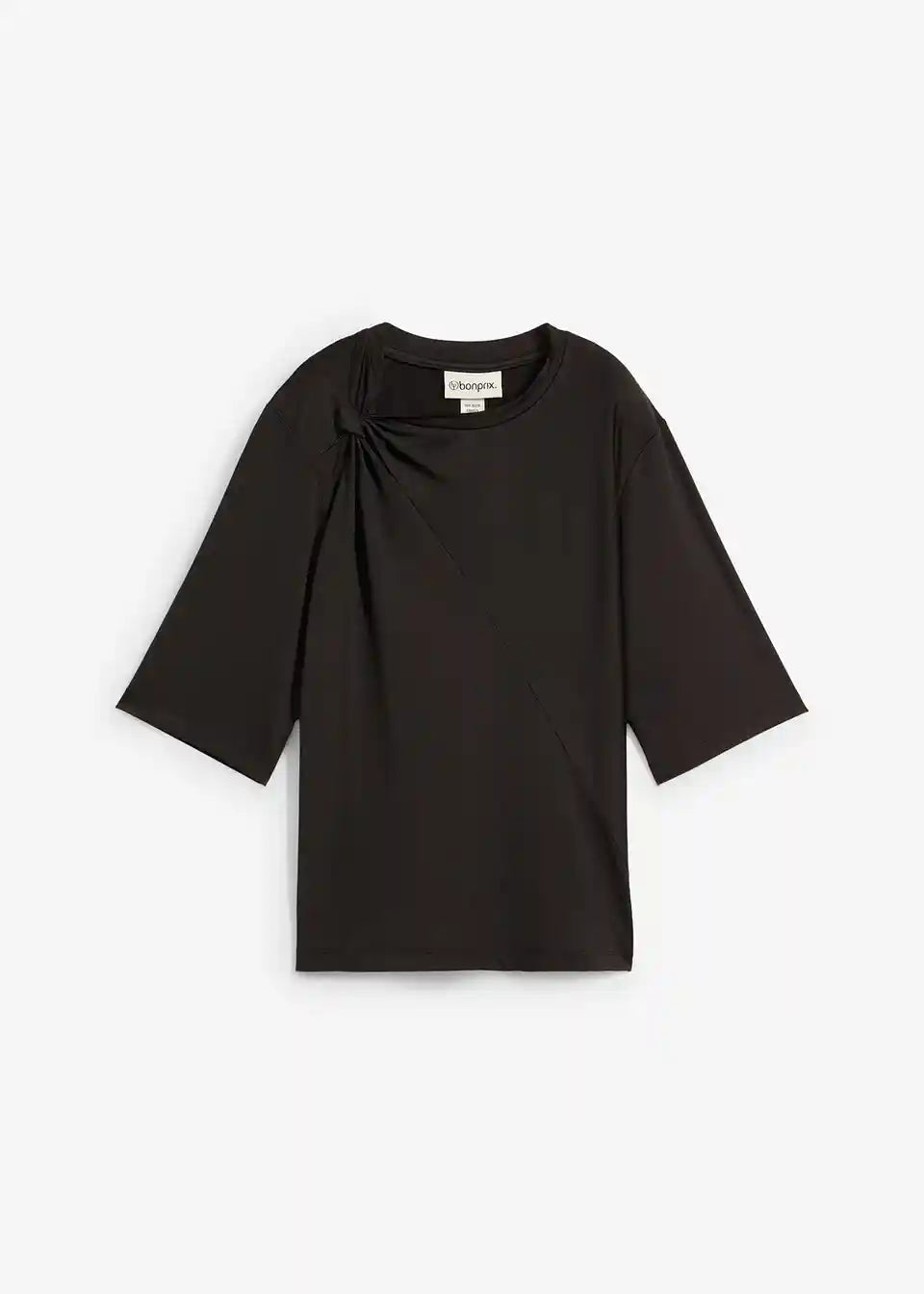 T-Shirt mit kunstvoll gedrehter Partie an der Schulter, einem Rundhalsausschnitt sowie kurzen Ärmeln