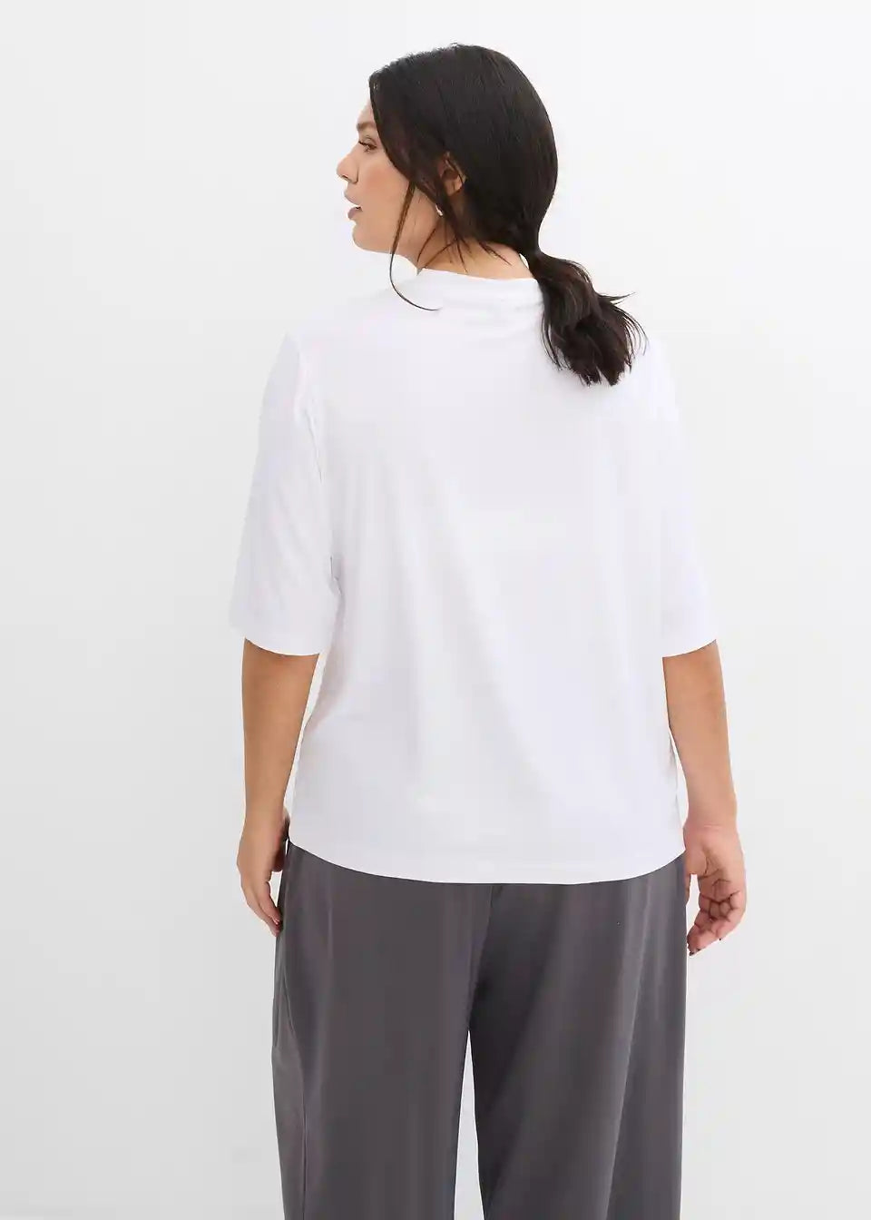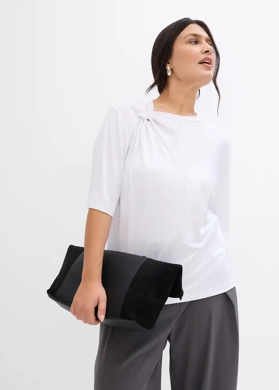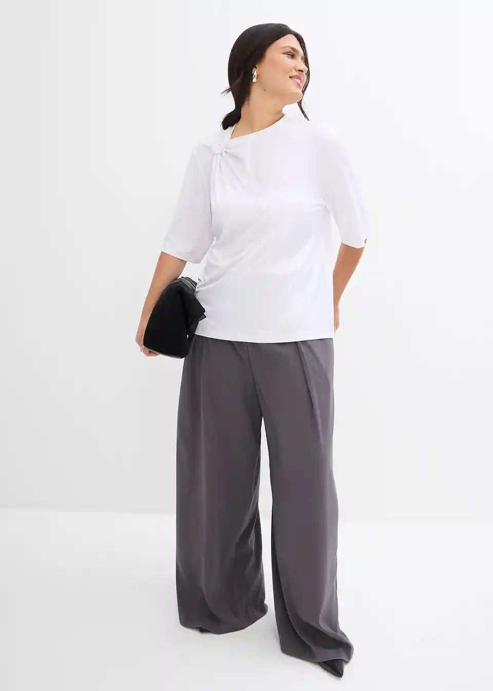 T-Shirt mit kunstvoll gedrehter Partie an der Schulter, einem Rundhalsausschnitt sowie kurzen Ärmeln