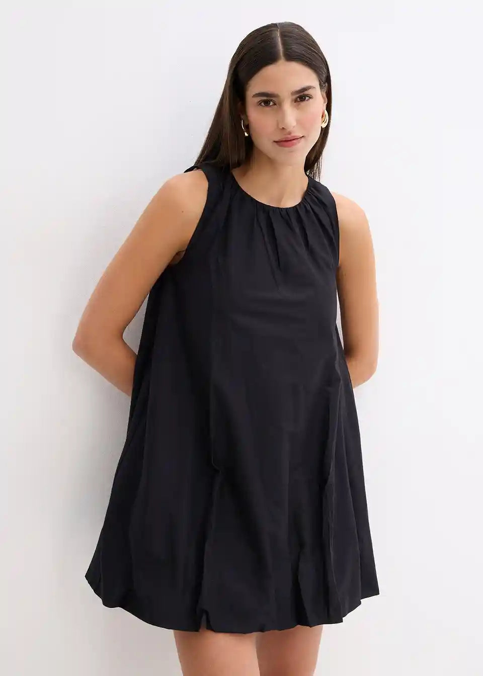 Leichtes Kleid mit einem runden Ausschnitt und Ballonsaum aus reiner Baumwolle, gut kombinierbar mit einer Leggings