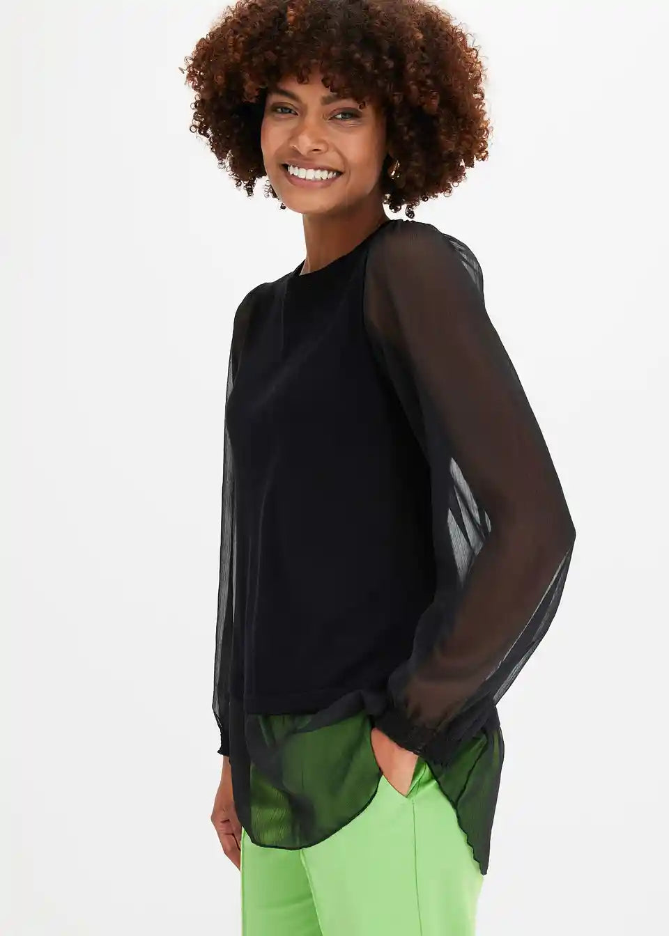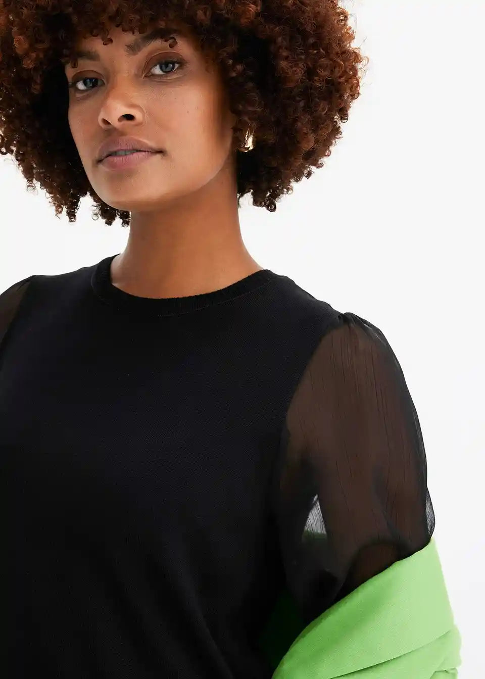 eleganter Pullover mit verspielten Chiffon Ärmeln