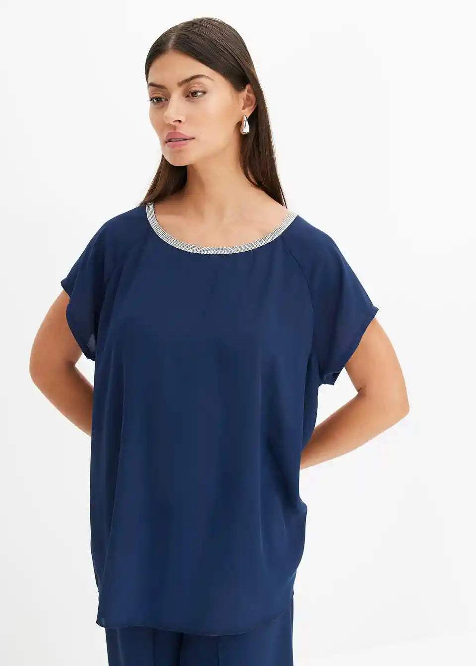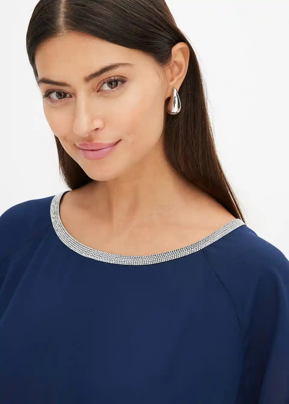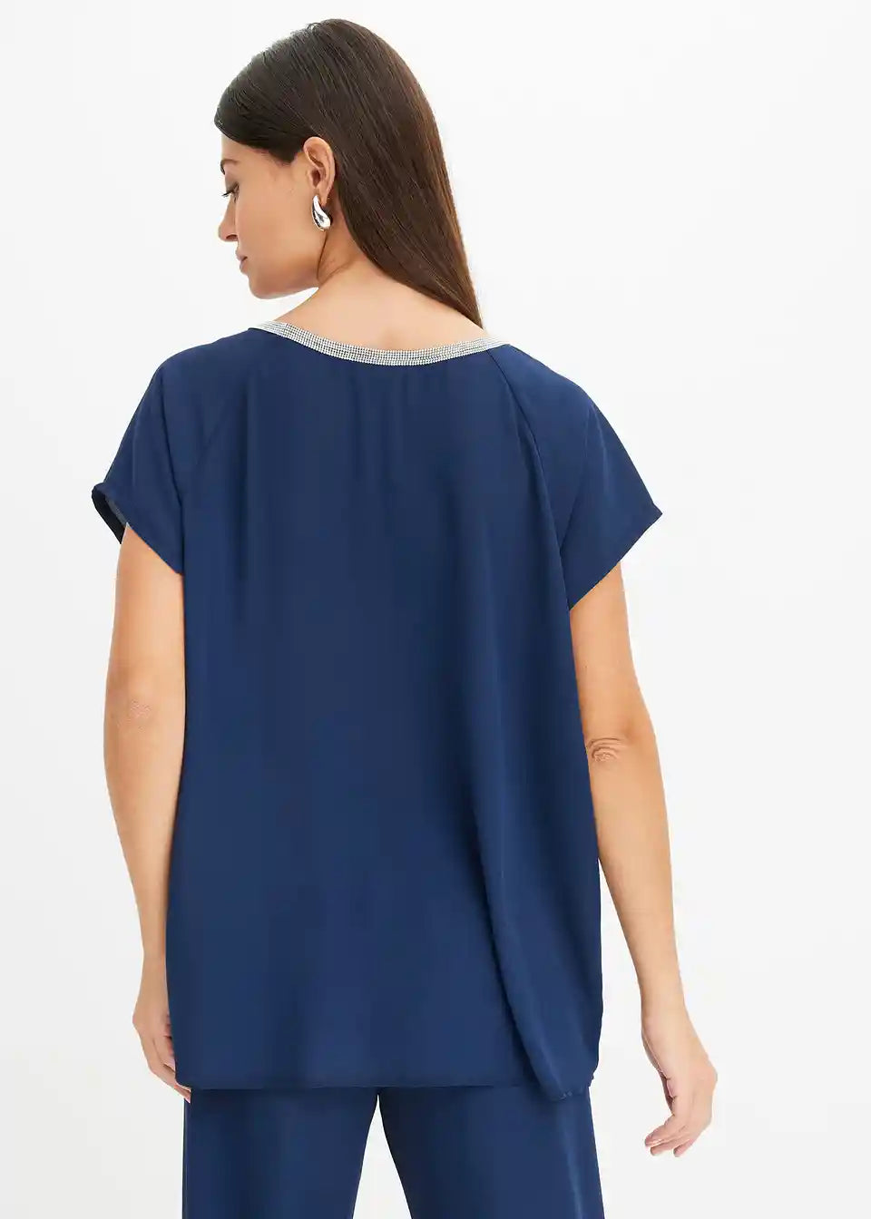 Oversized Bluse aus feinem Georgette mit Strasssteinverzierung am Ausschnitt