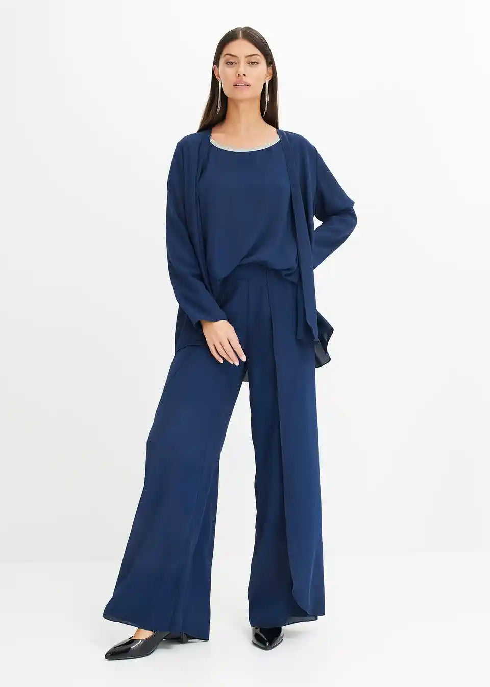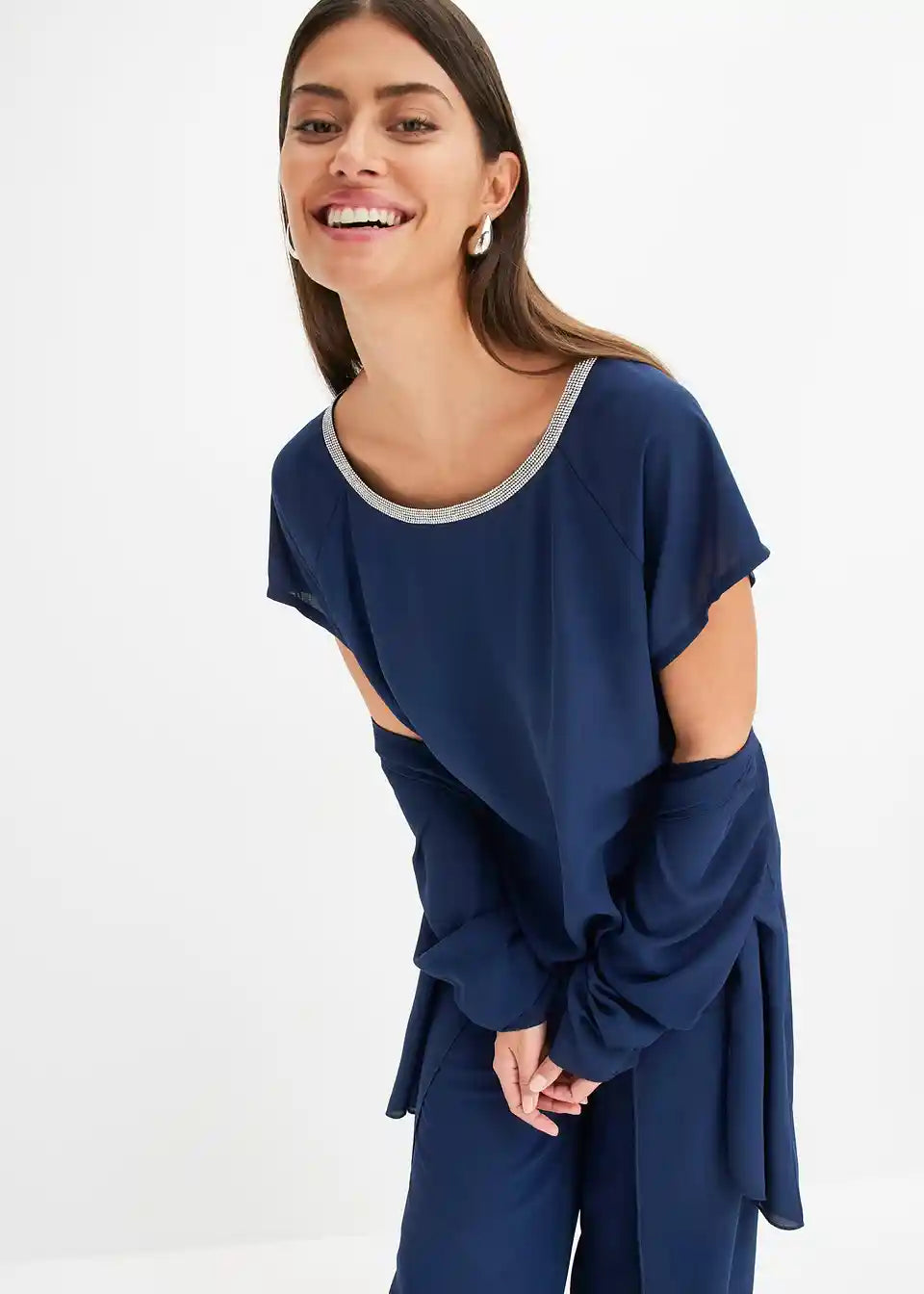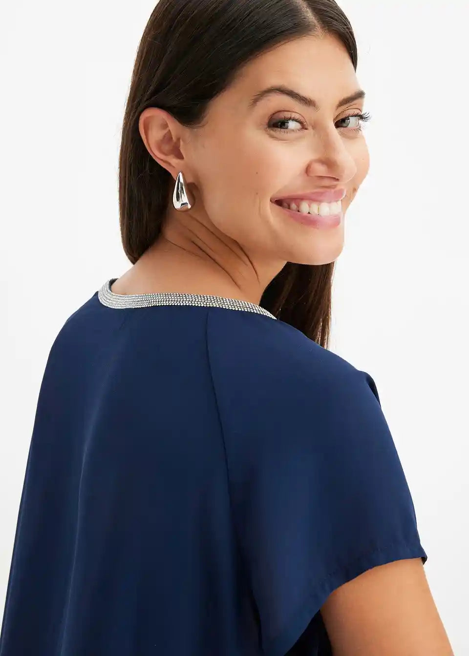 Oversized Bluse aus feinem Georgette mit Strasssteinverzierung am Ausschnitt