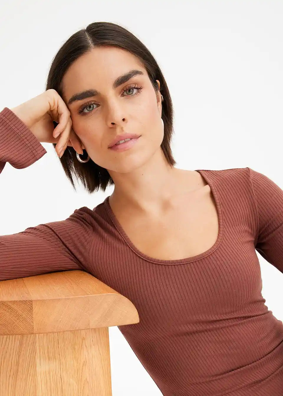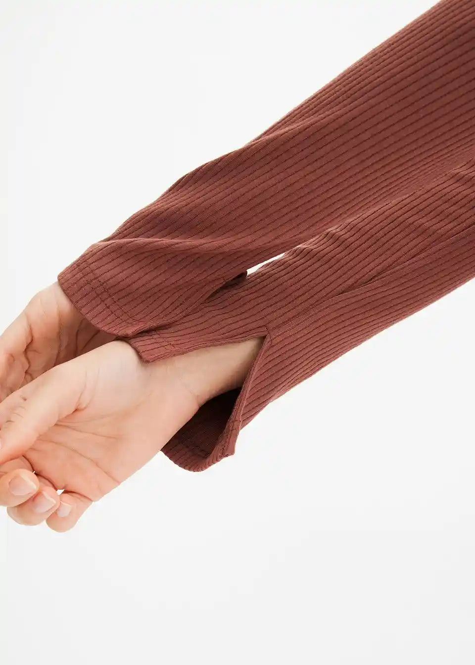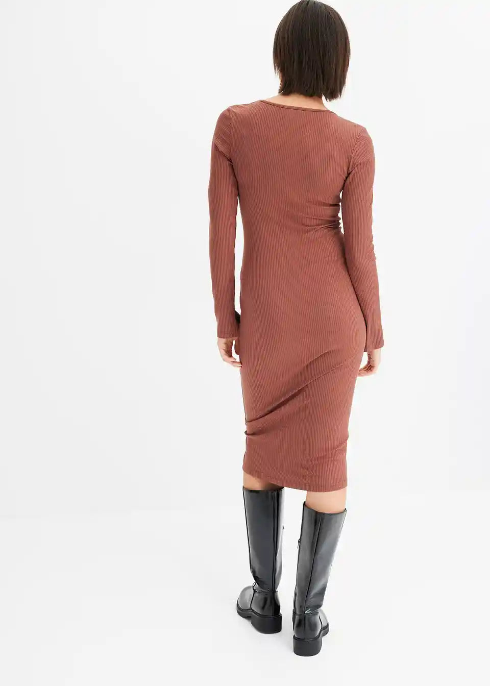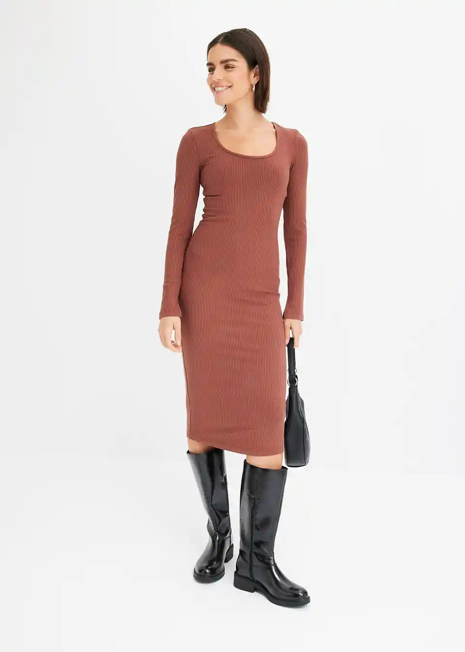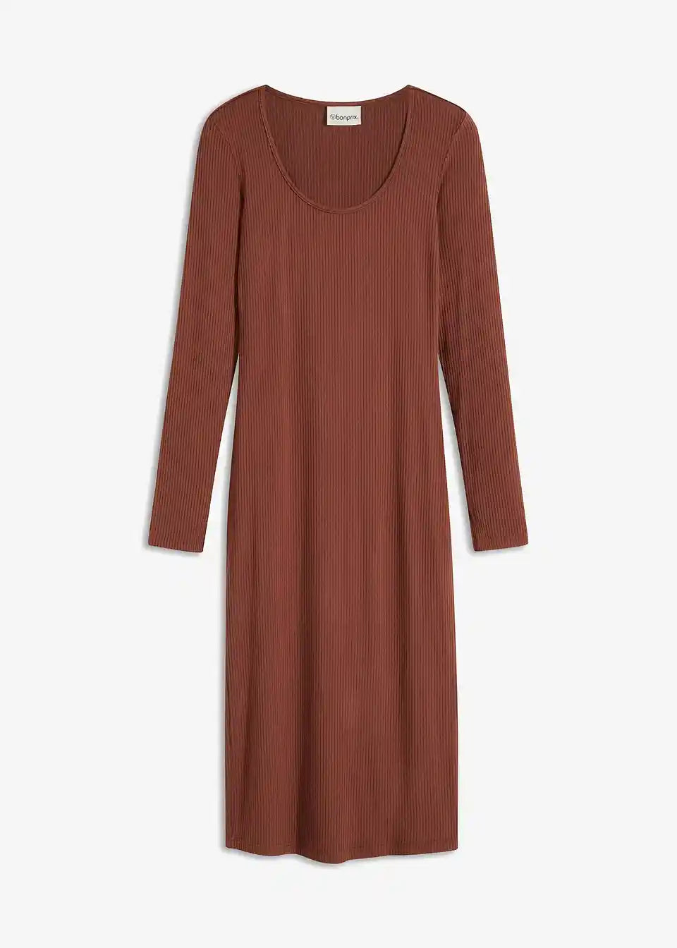 Jerseykleid aus feiner Rippe mit tiefem Rundhalsausschnitt