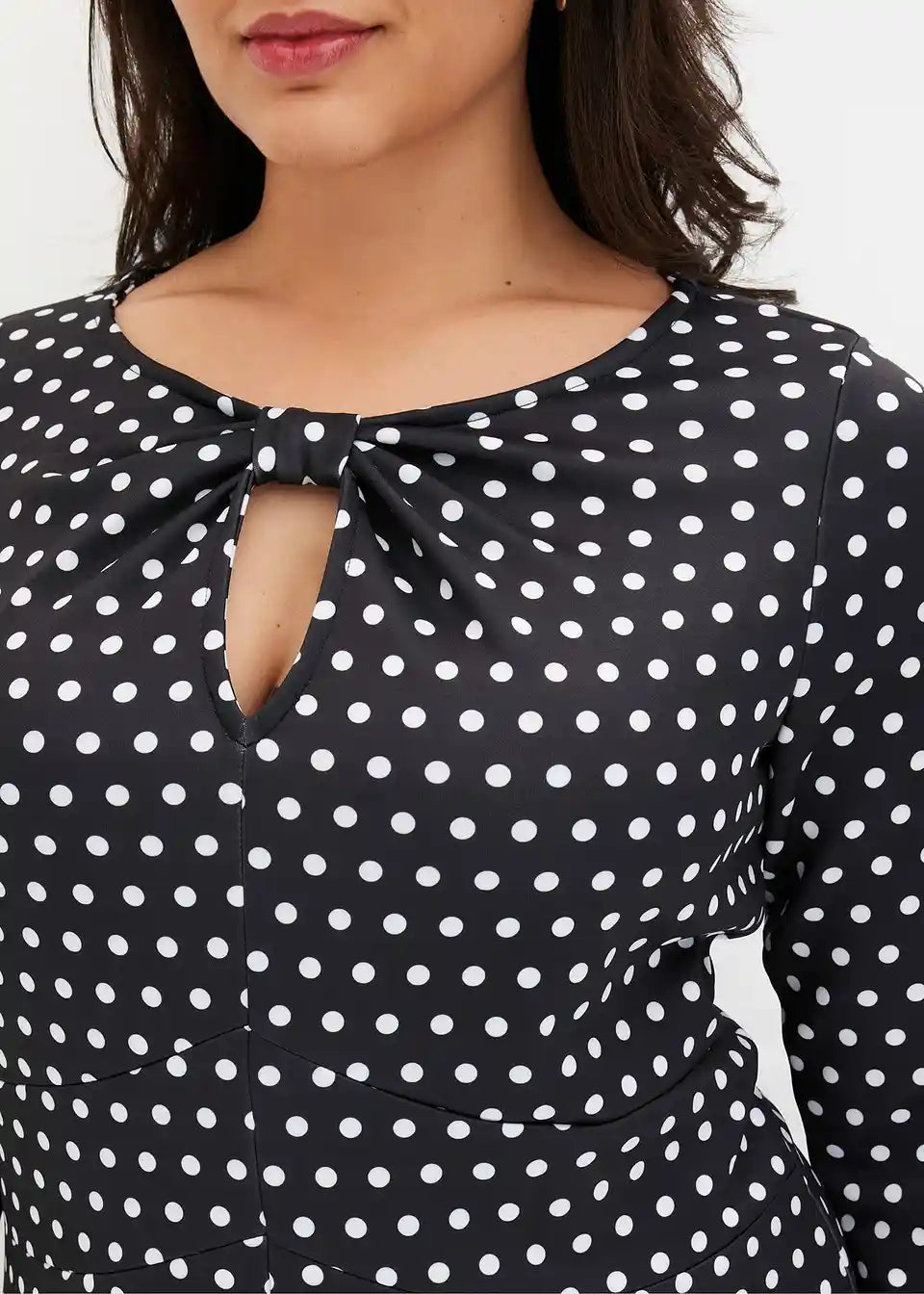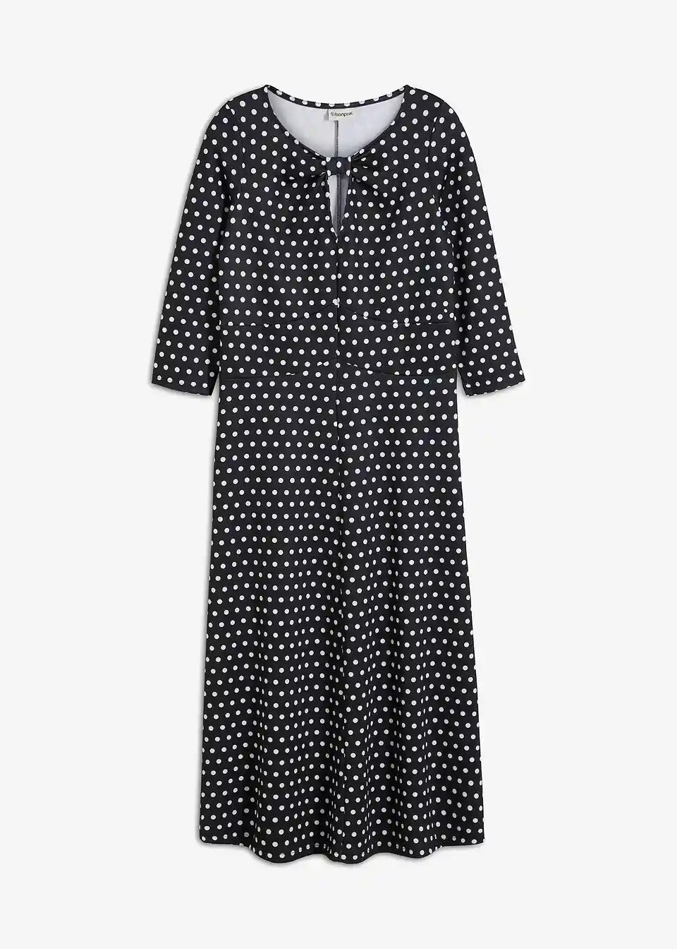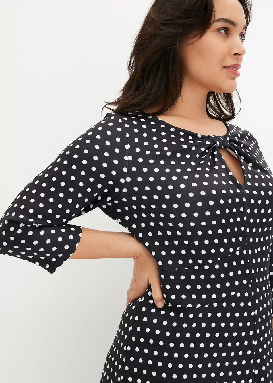 Kleid mit Polka Dots Print und Zierschleife am Ausschnitt