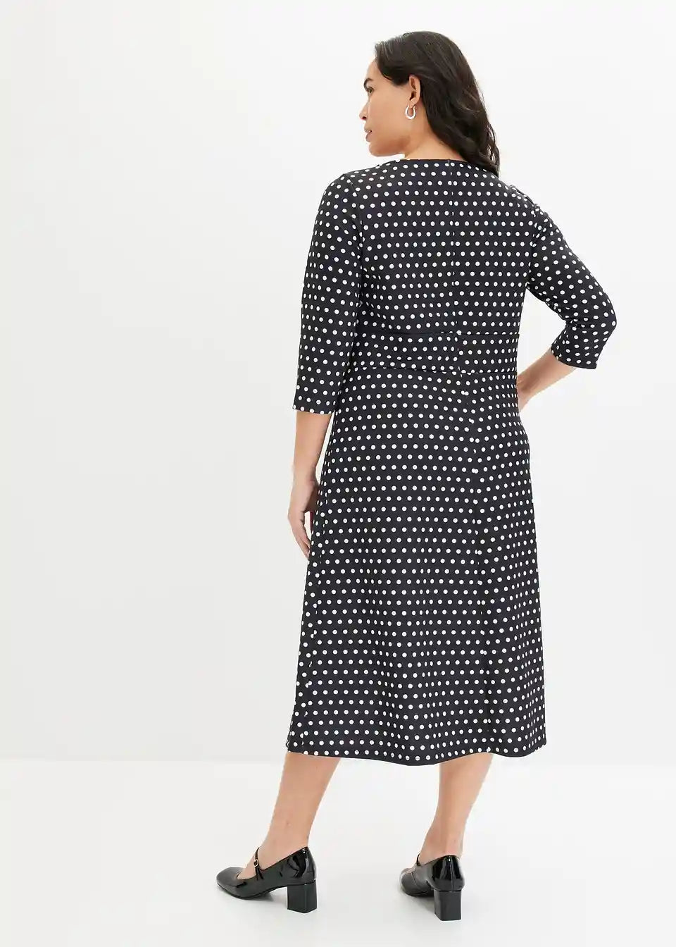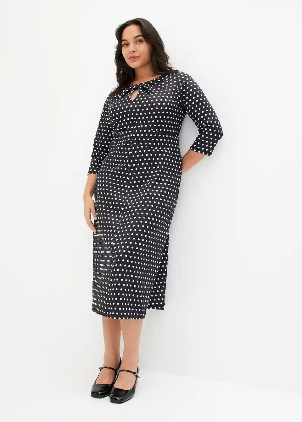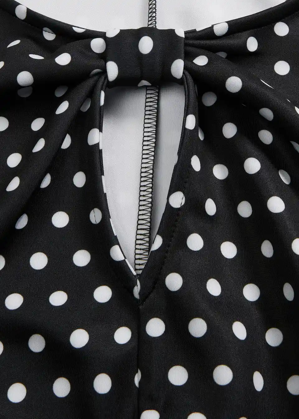 Kleid mit Polka Dots Print und Zierschleife am Ausschnitt
