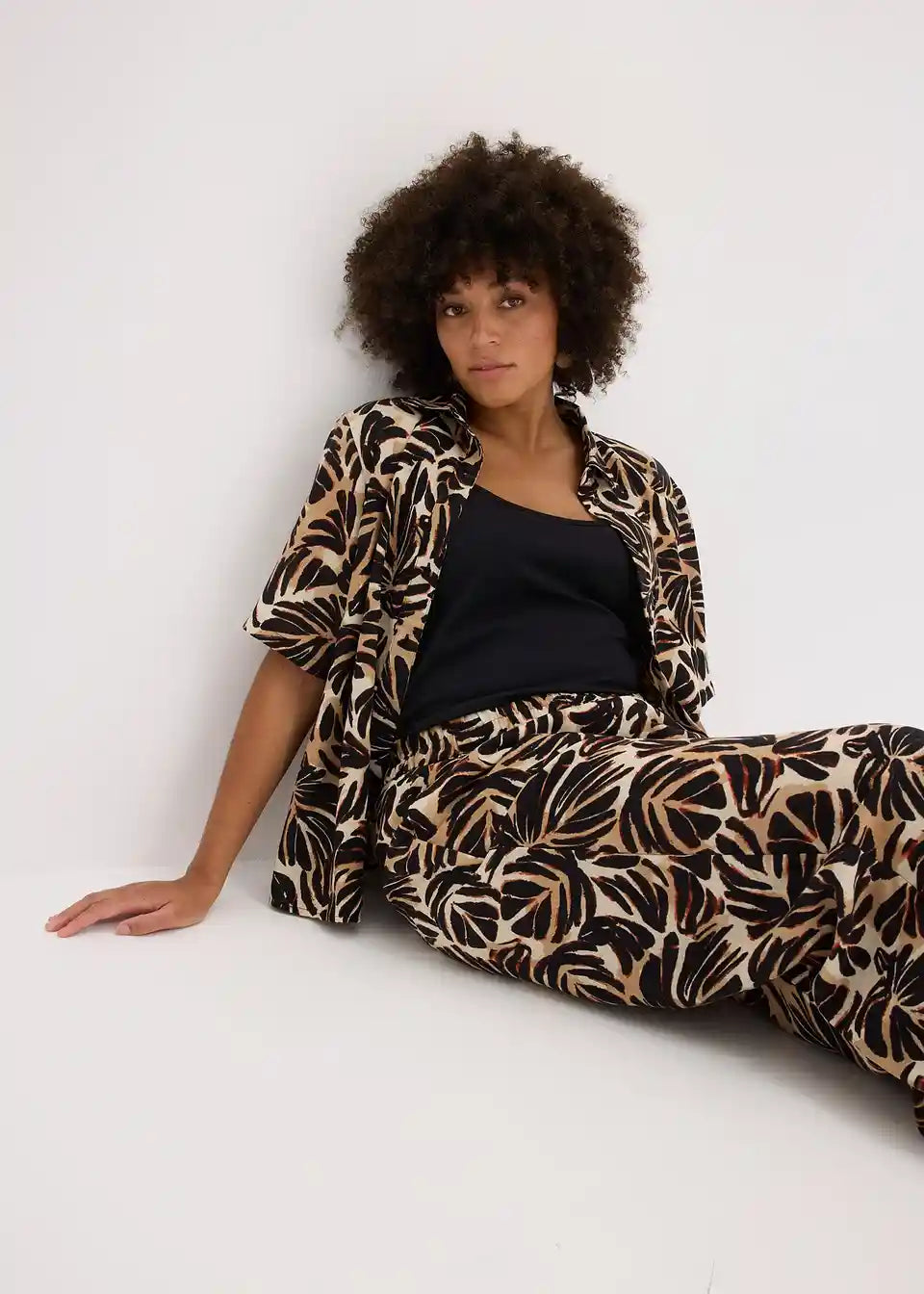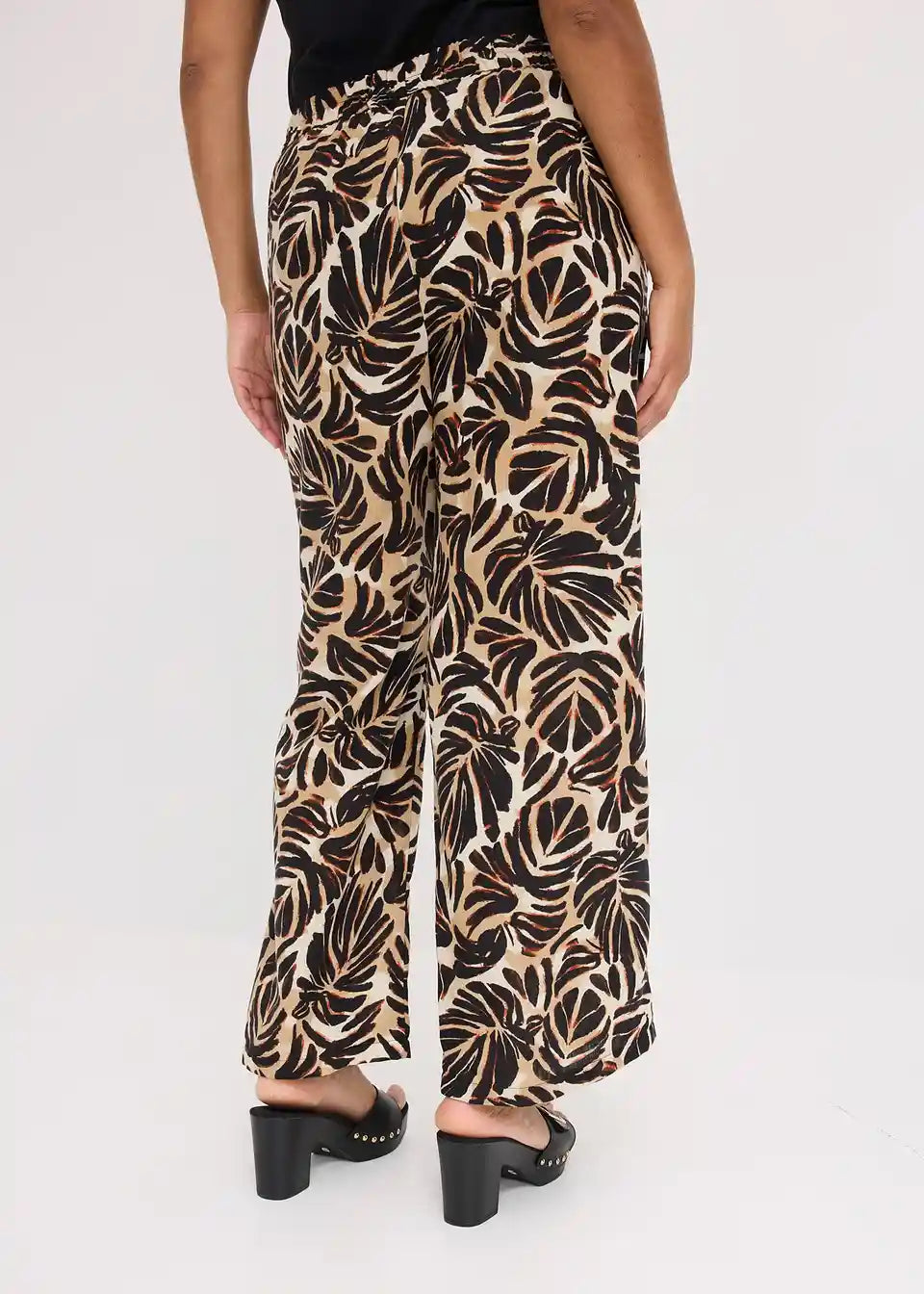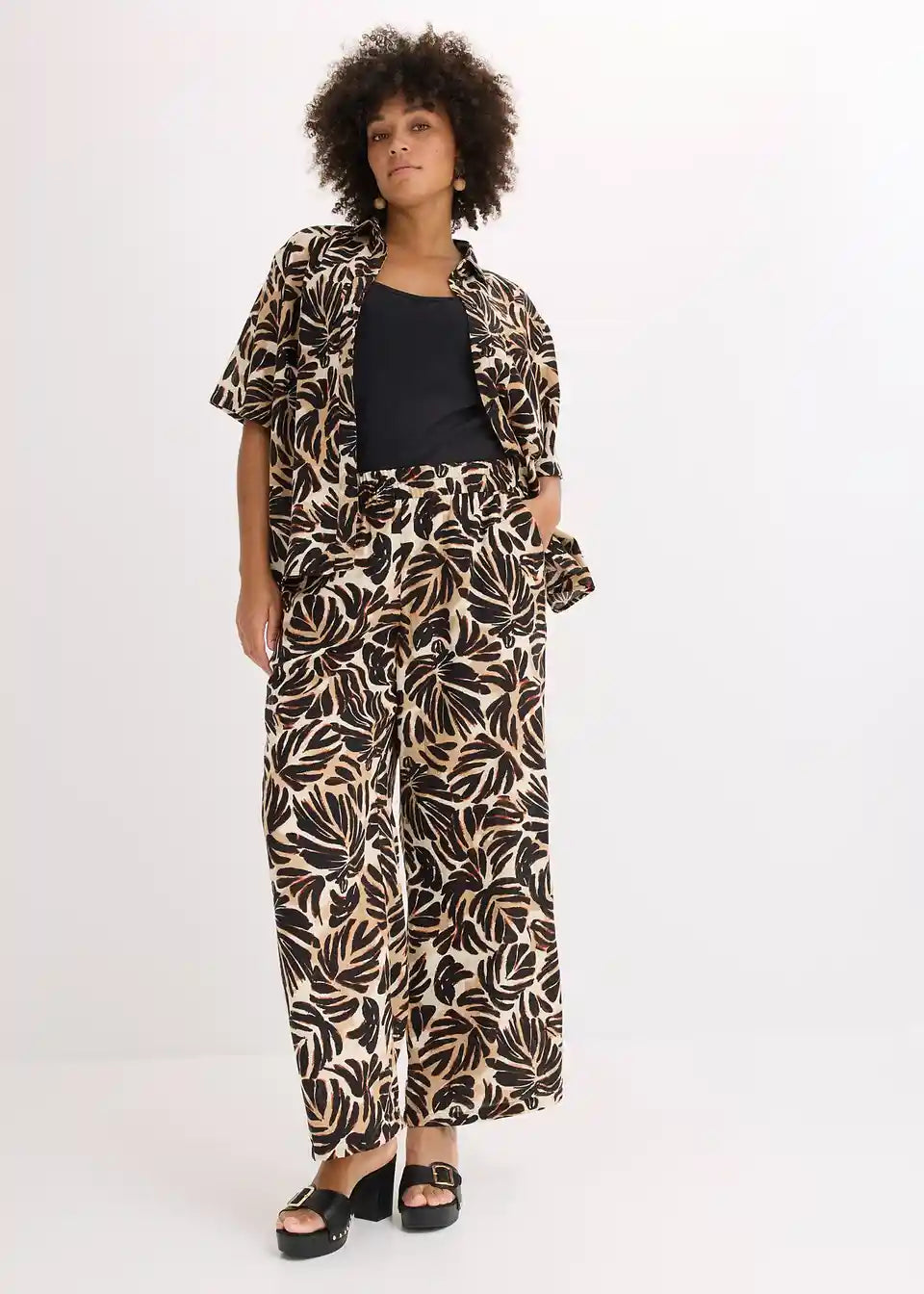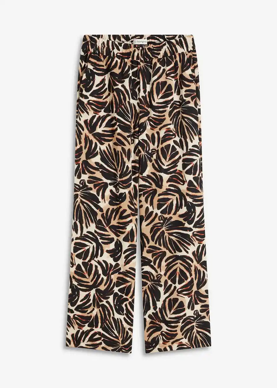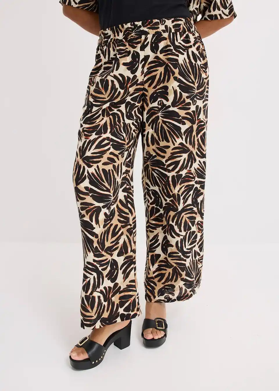 sommerliche Palazzo-Hose in Leinen-Optik mit Gummibund