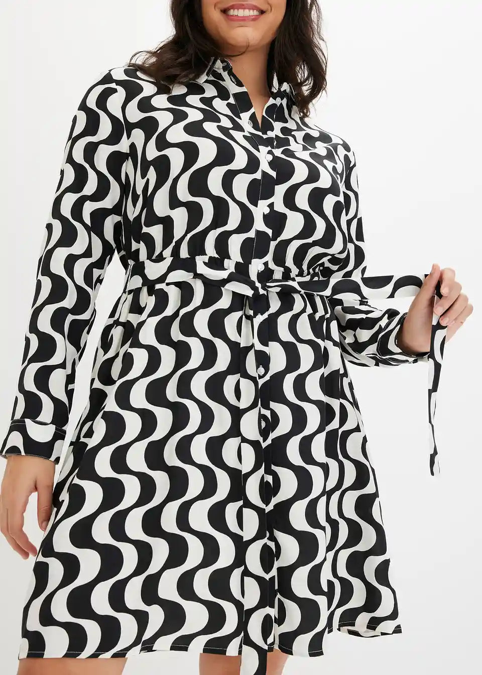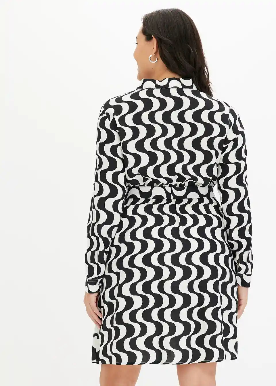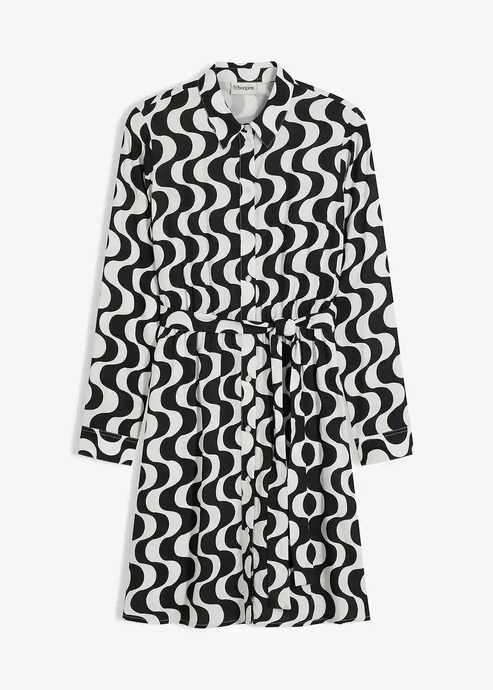 modisch bedrucktes Blusenkleid mit Bindeband in der Taille