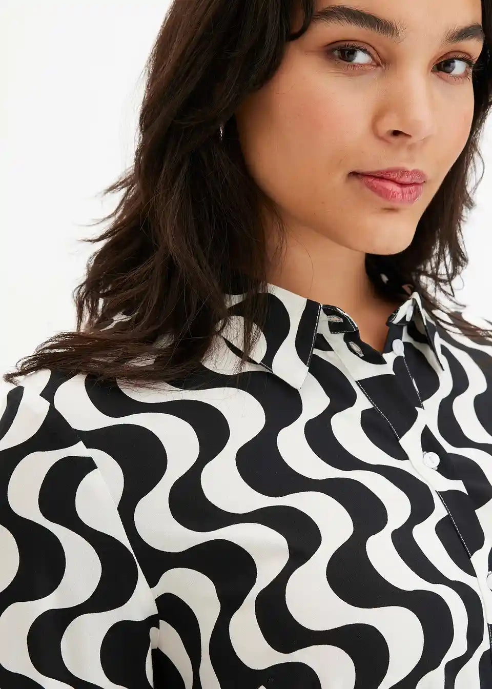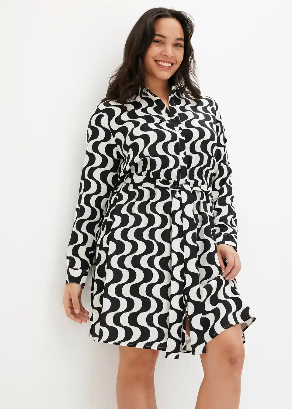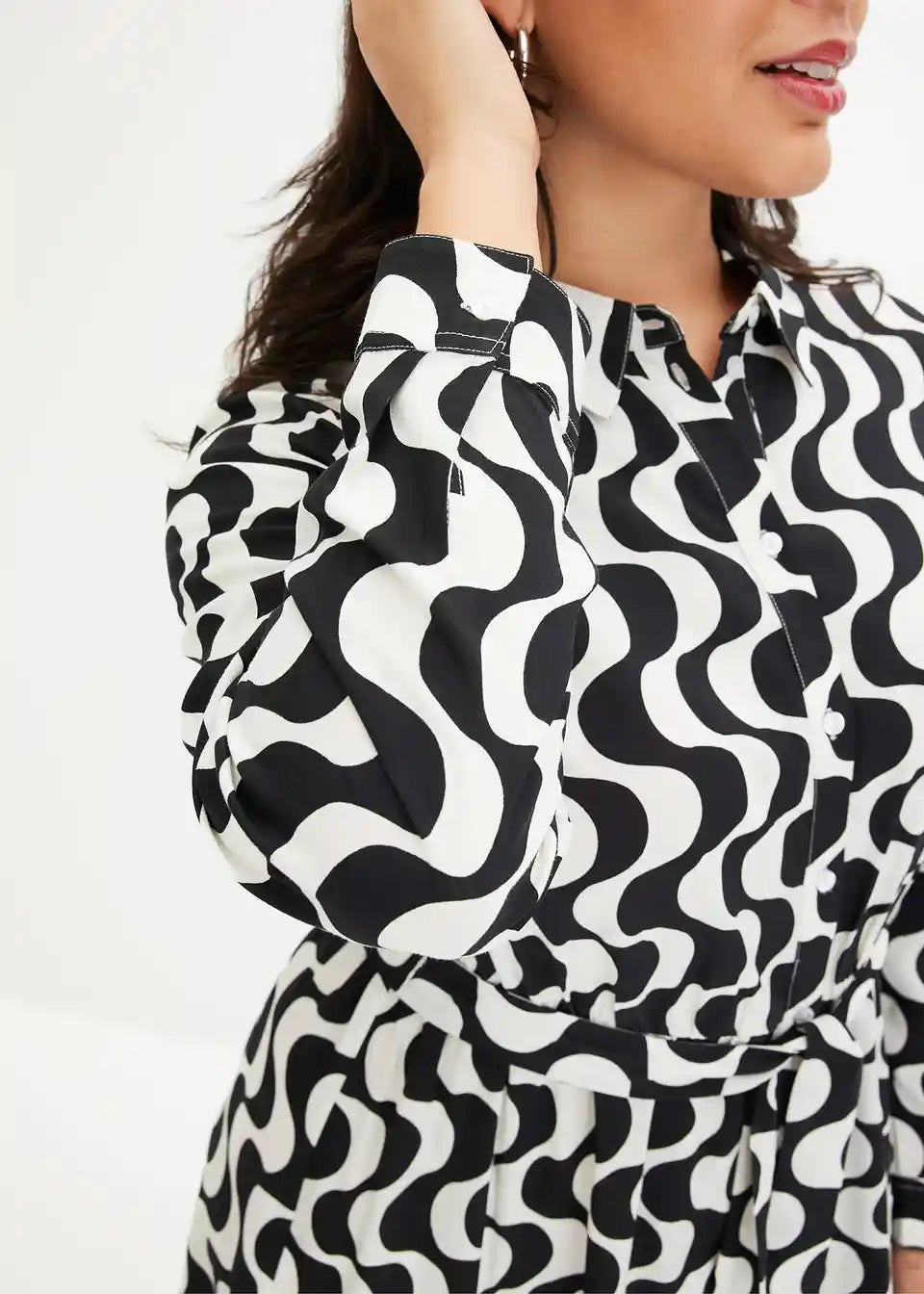 modisch bedrucktes Blusenkleid mit Bindeband in der Taille