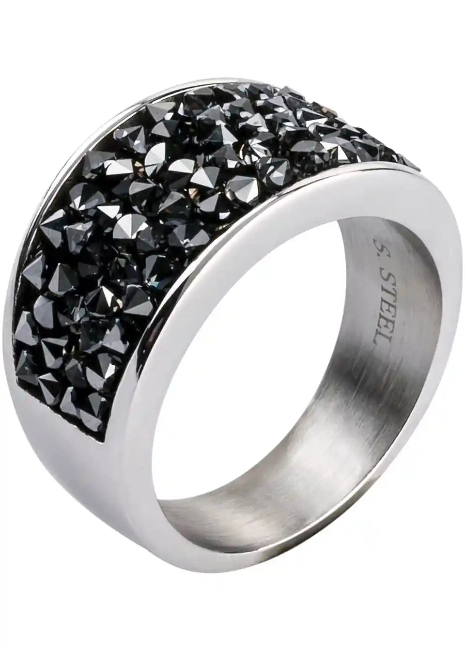 Ring aus Edelstahl mit auffälligen Kristallsteinen