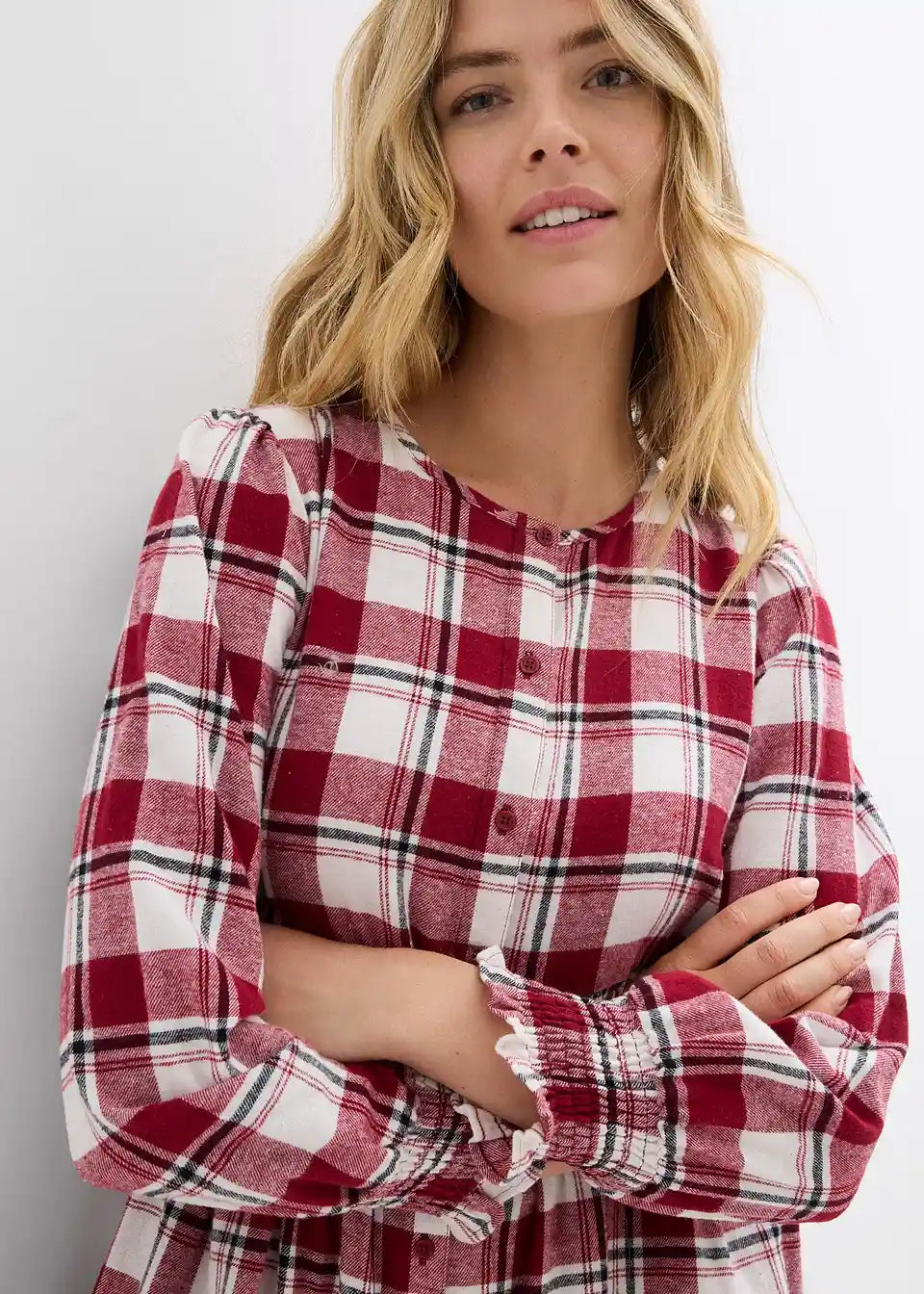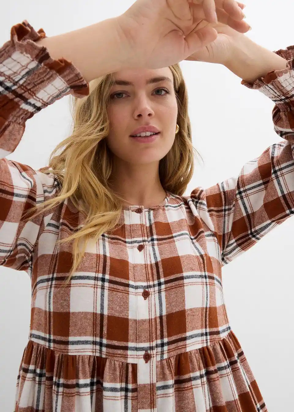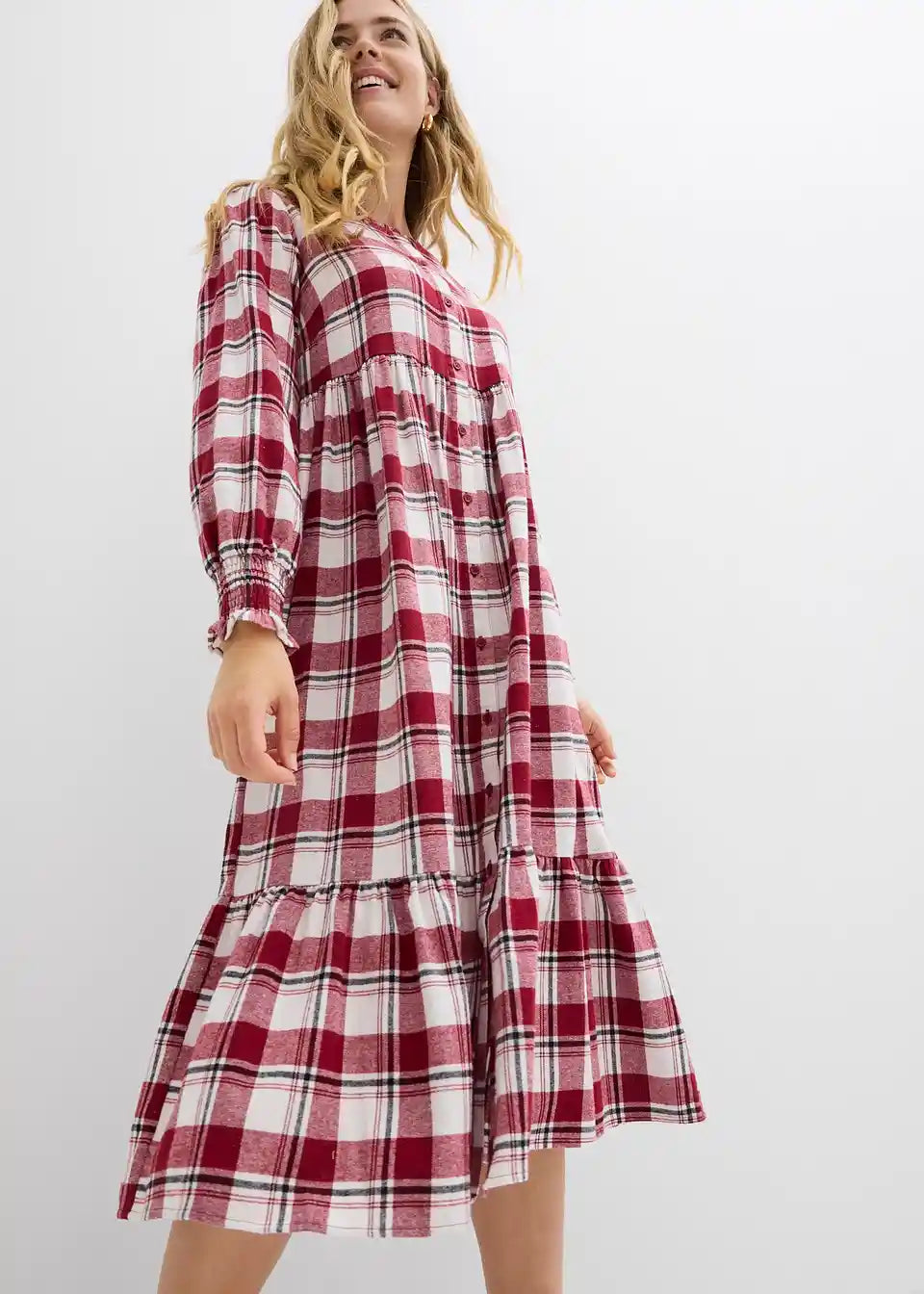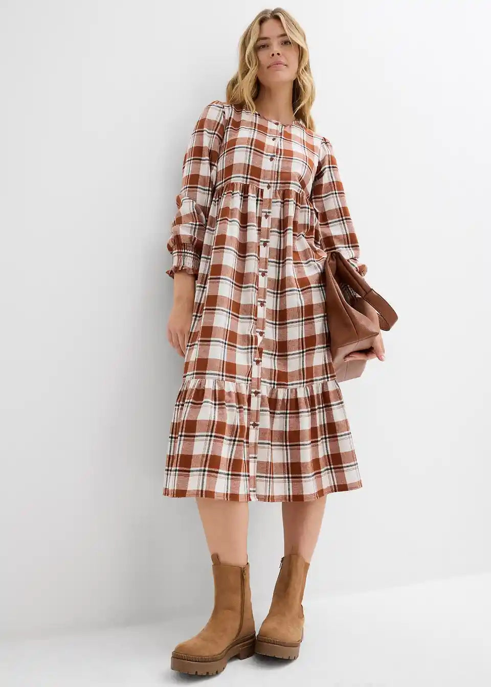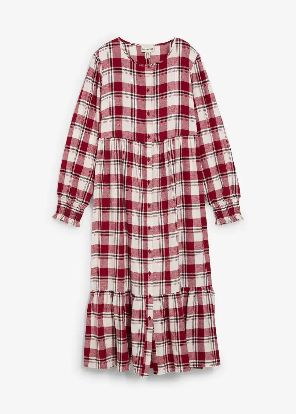 Midikleid in A-Linie aus reiner Baumwolle. Mit durchgängiger, vorderer Knopfleiste und elastischen Ärmelbündchen.
