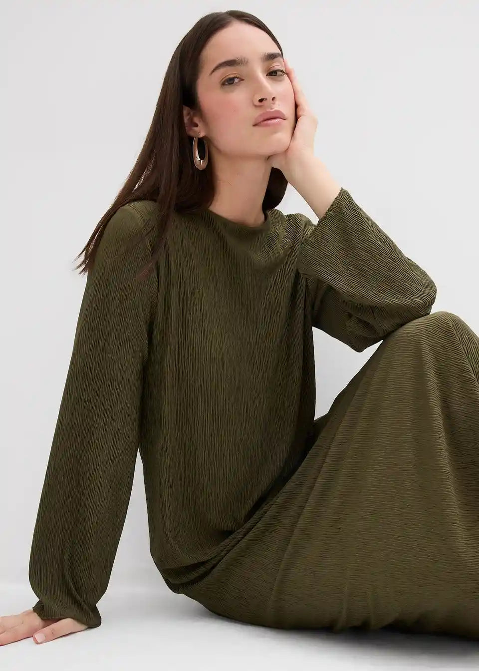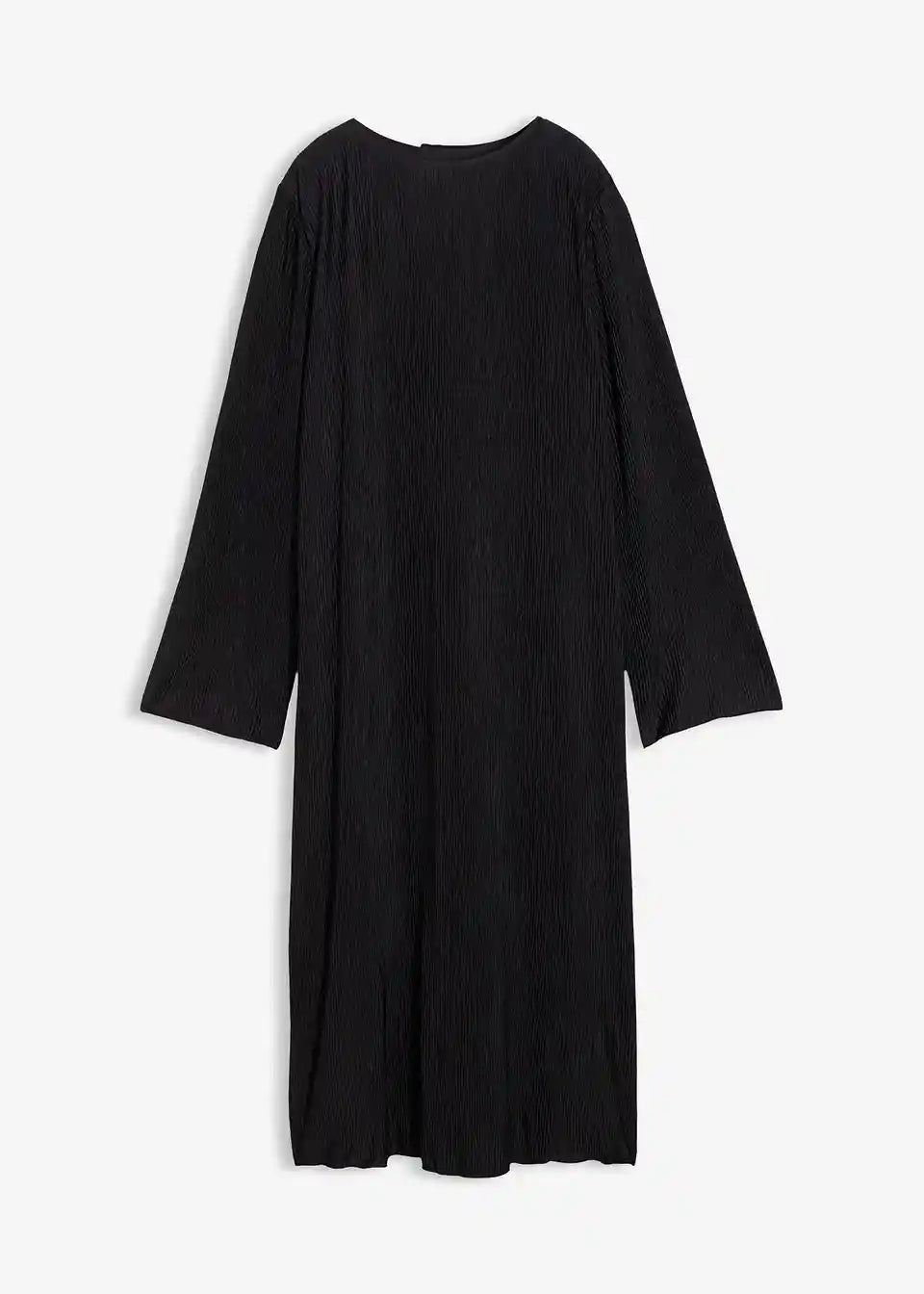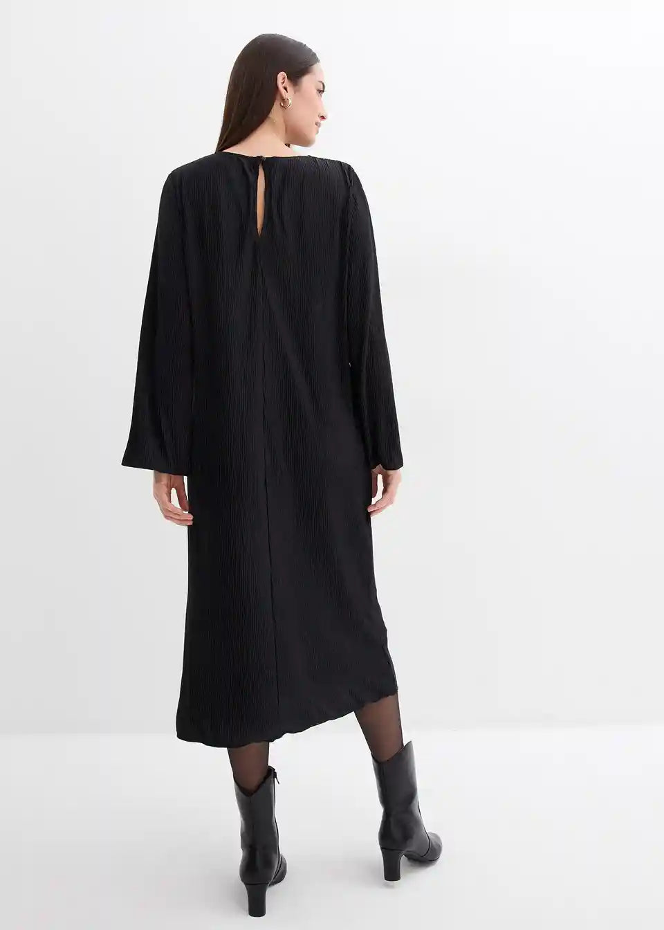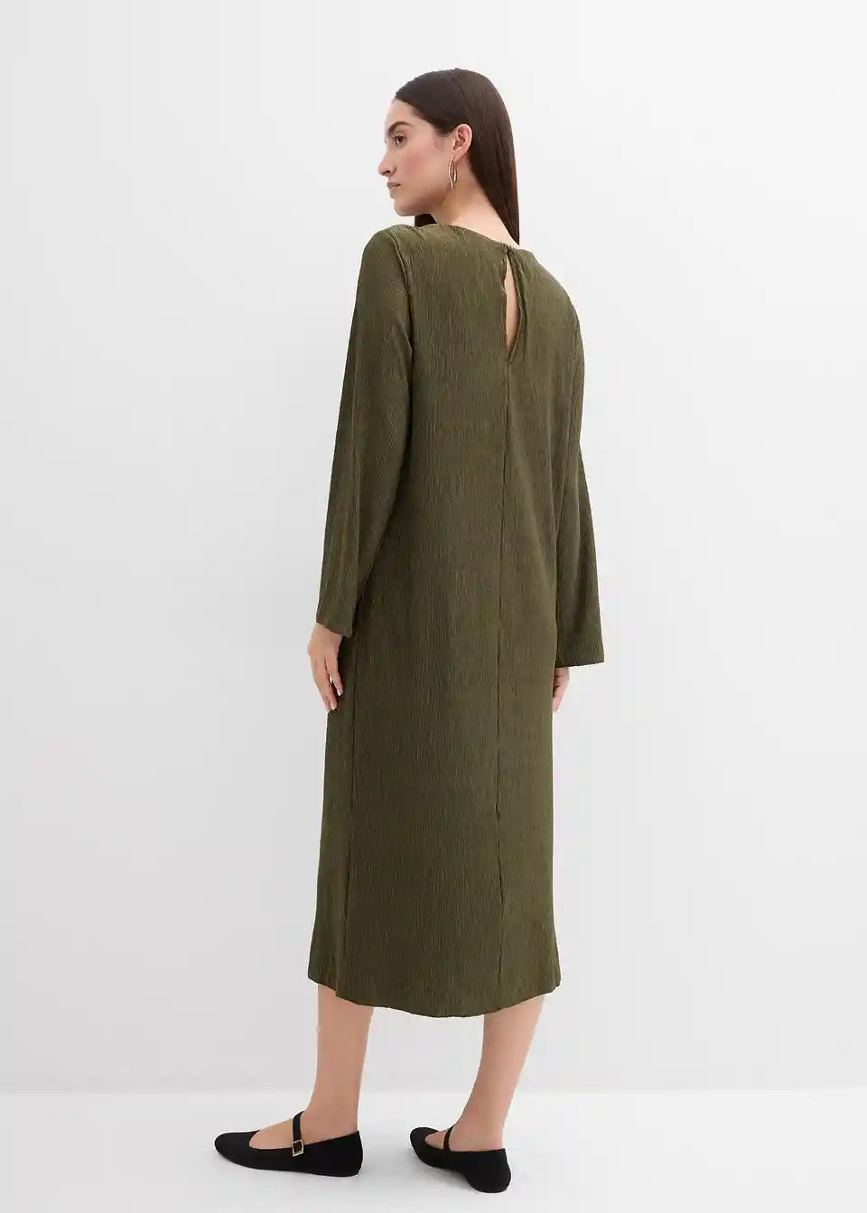 Gerade geschnittenes Kleid mit langem Arm, Schlüssellochöffnung hinten in Crinkle Optik