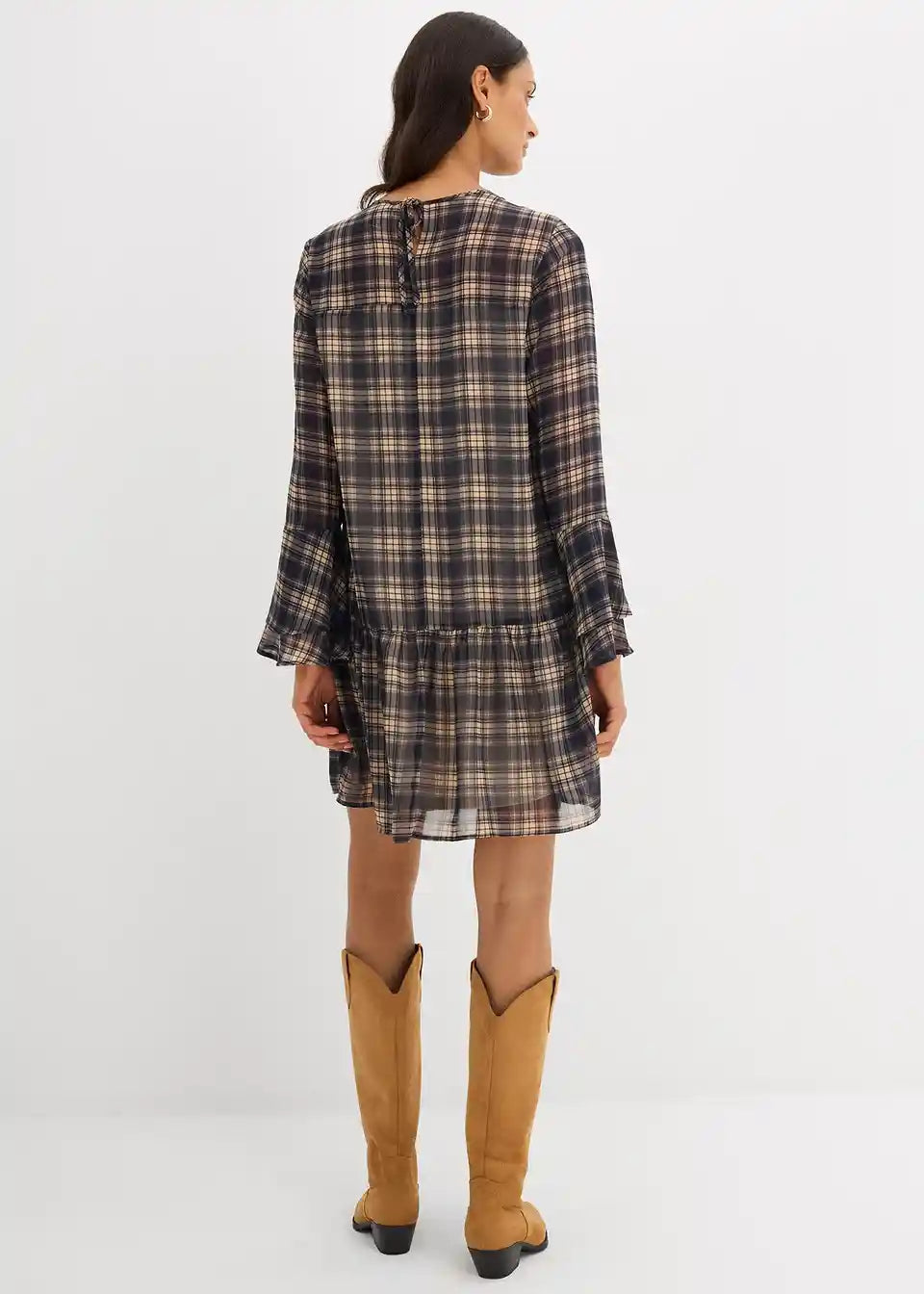 Modisches Chiffonkleid mit Volants und langen Ärmeln