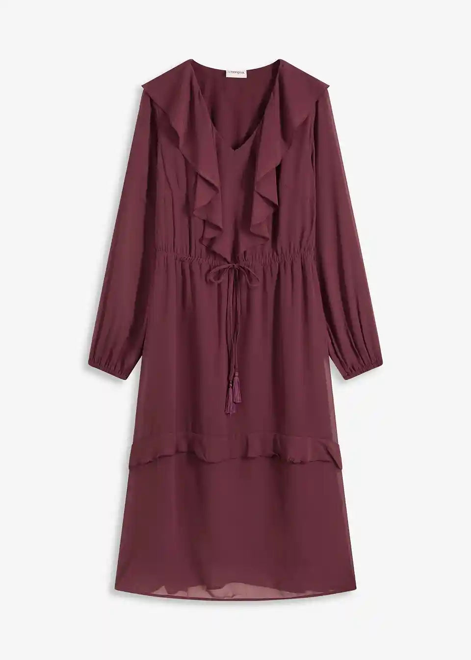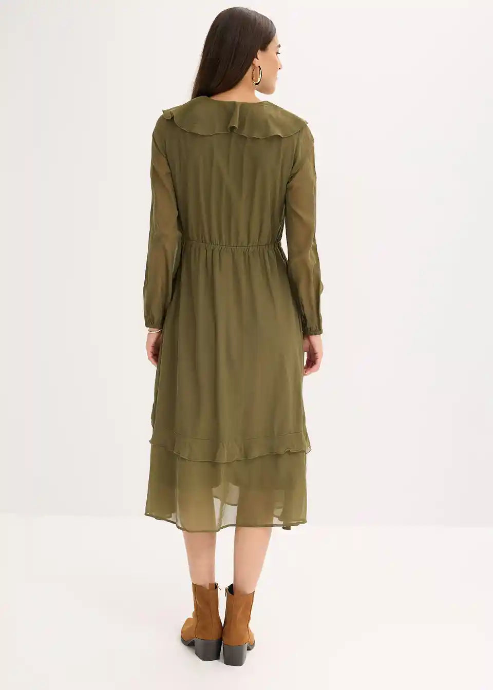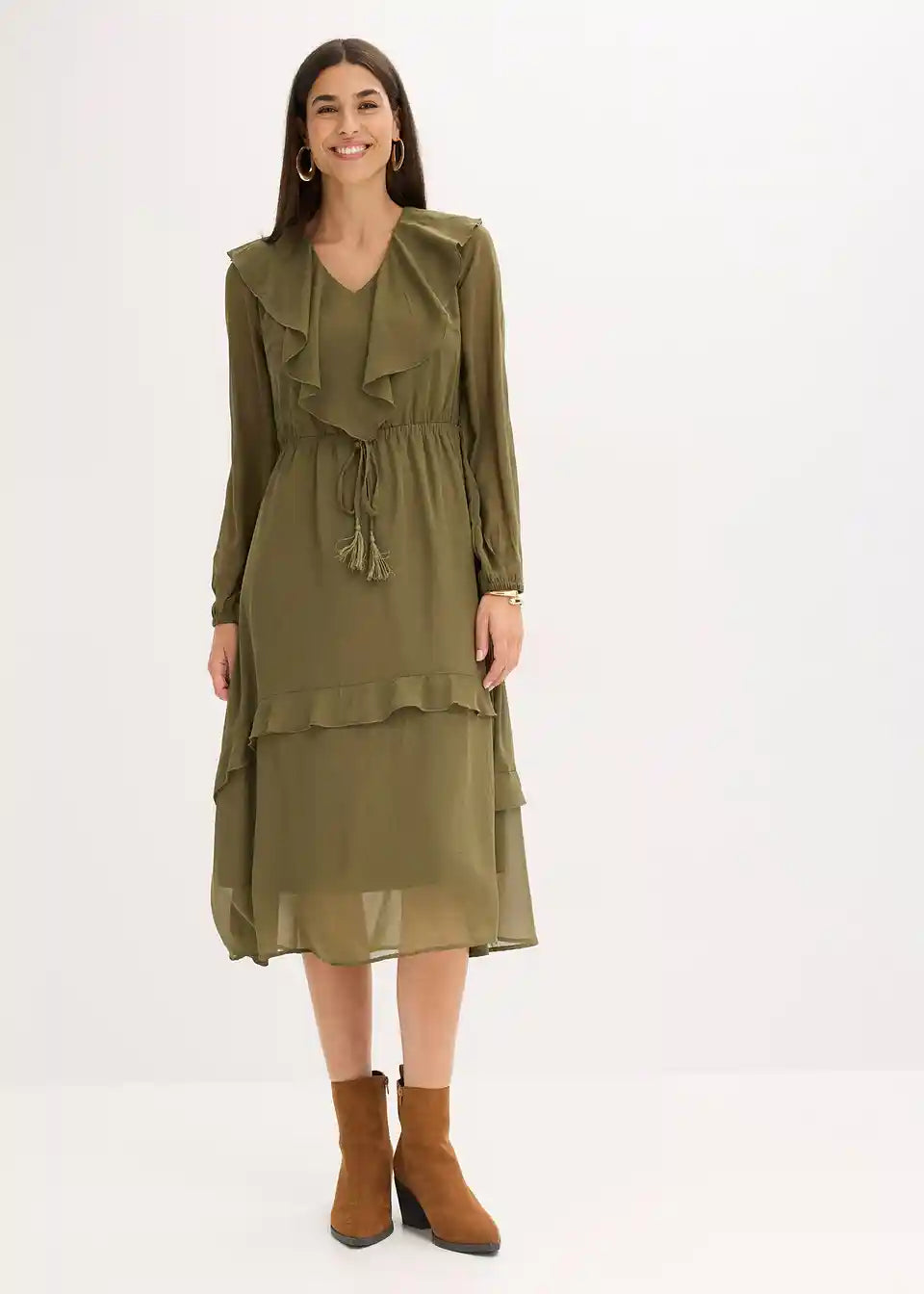 Mittellanges Kleid mit Volants am Ausschnitt und Saum