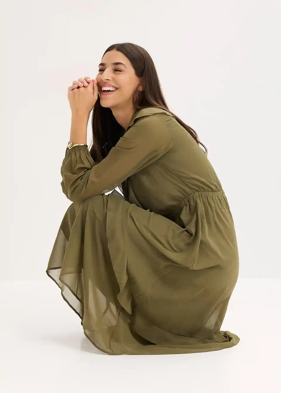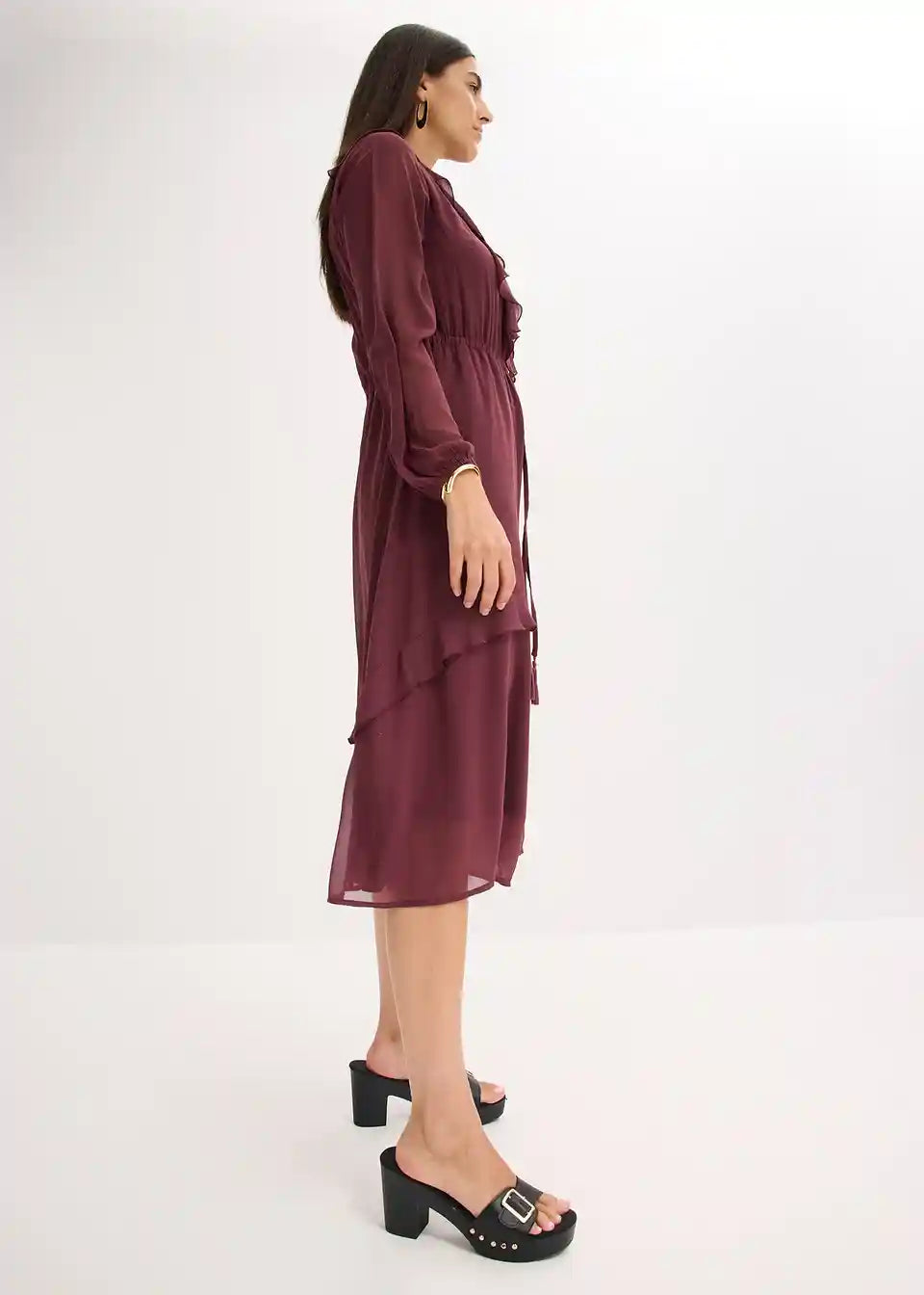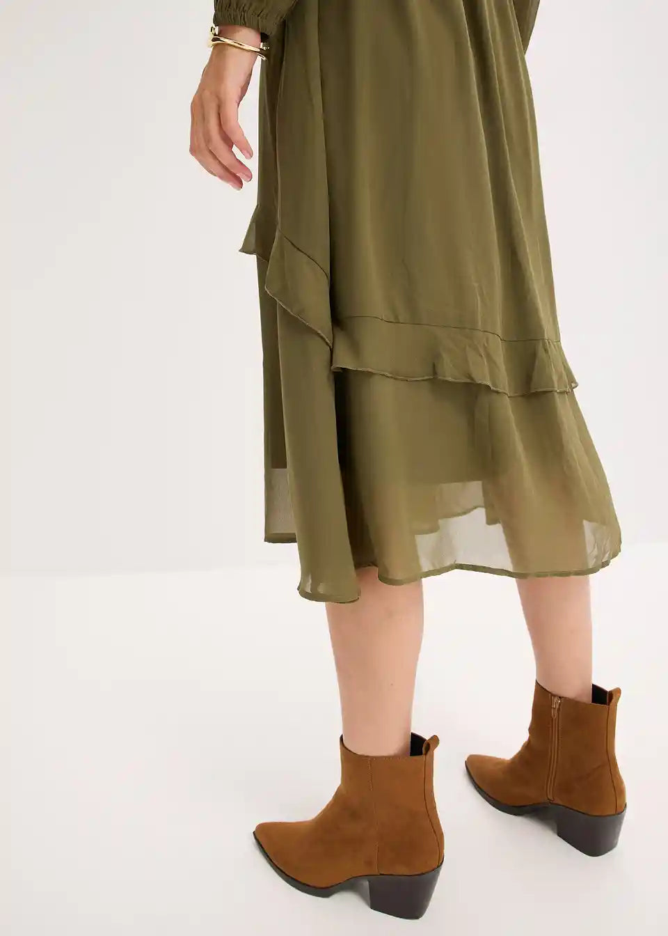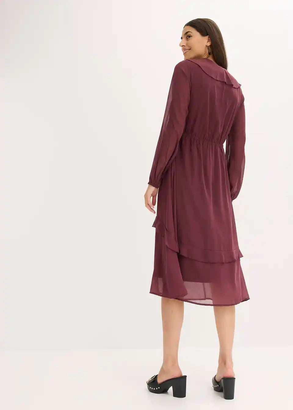 Mittellanges Kleid mit Volants am Ausschnitt und Saum