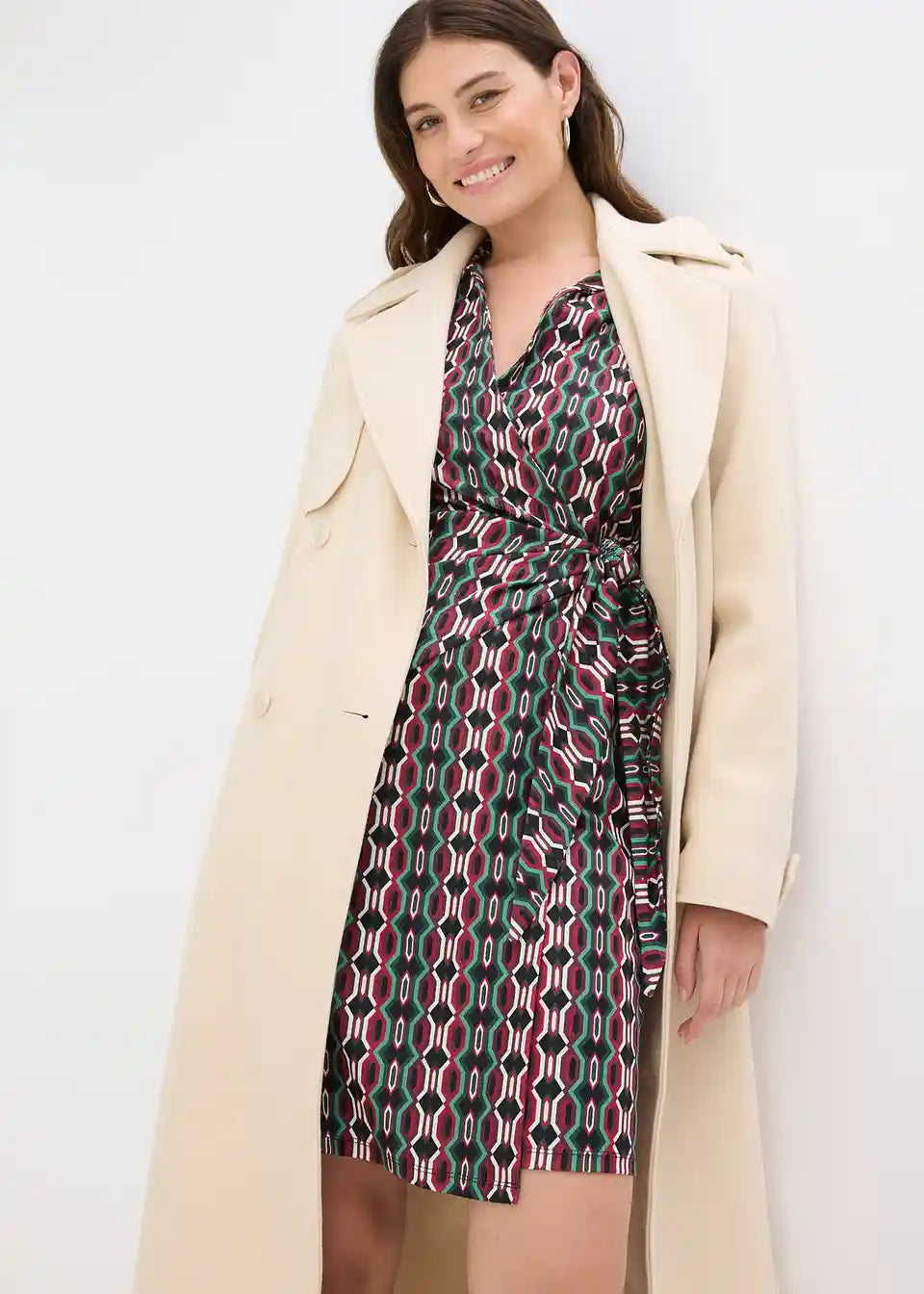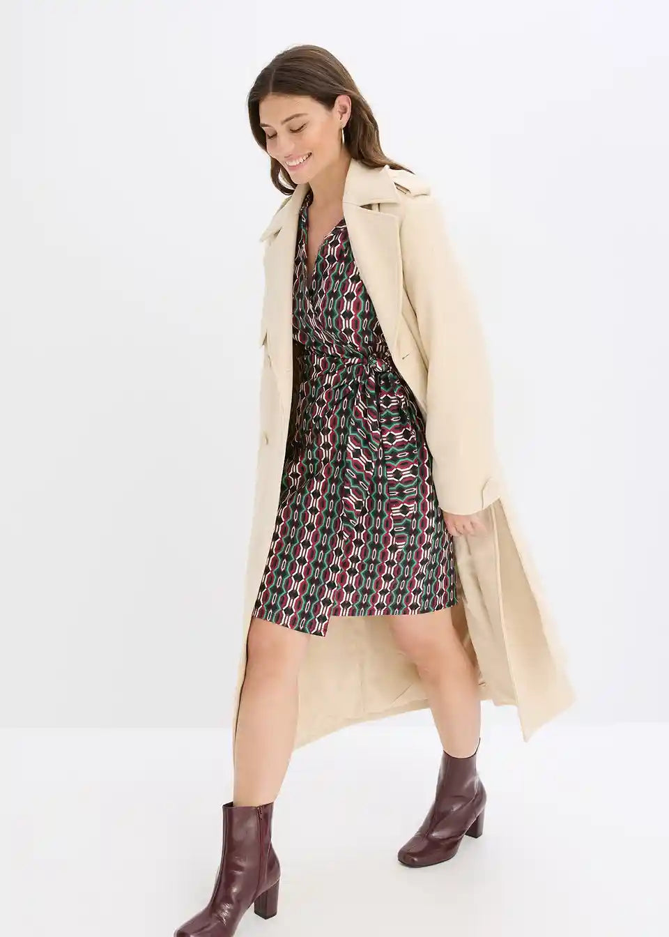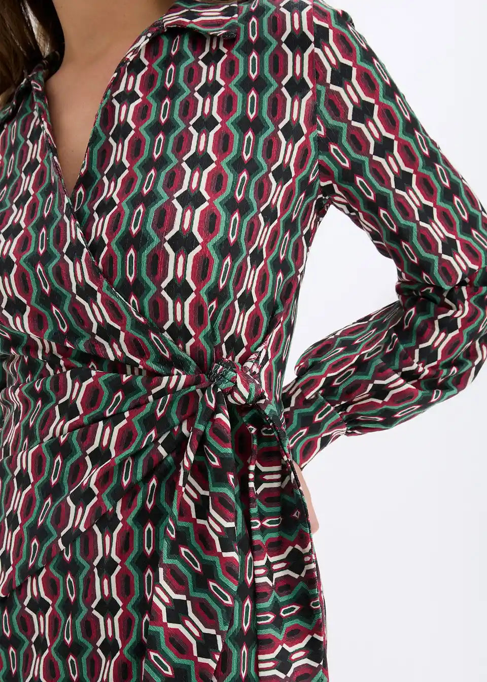 modisches Wickelkleid aus strukturiertem Jersey mit tiefem V-Ausschnitt vorne