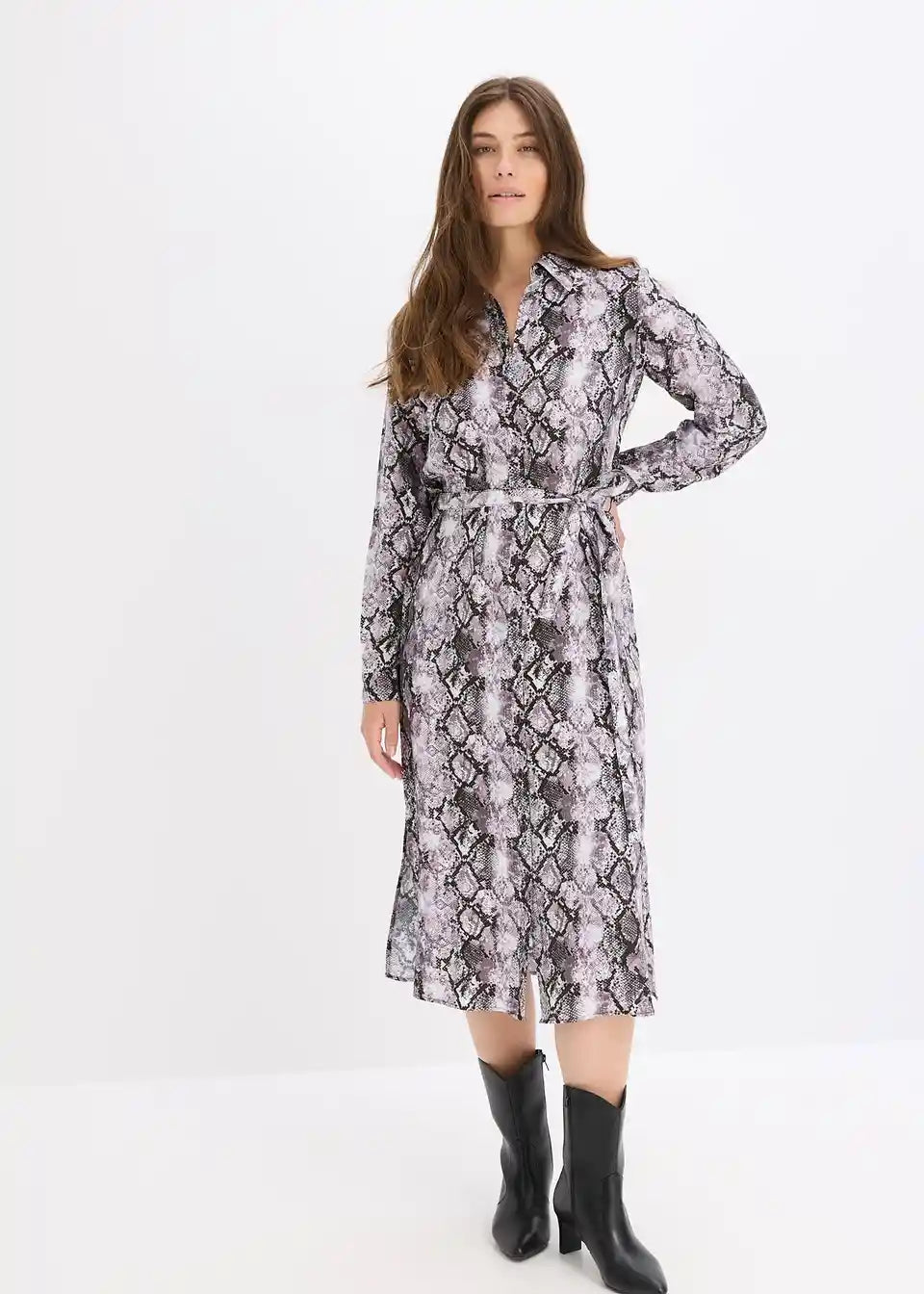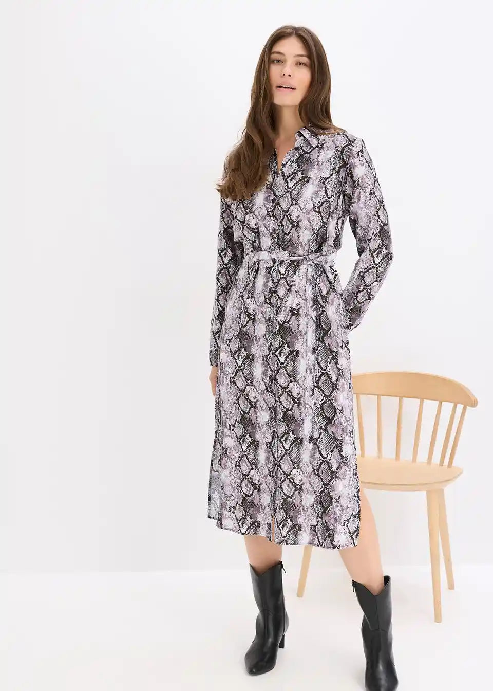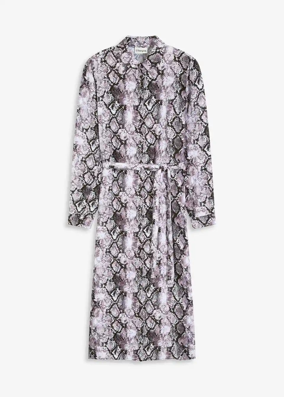 modisch bedrucktes Blusenkleid mit Bindeband in der Taille