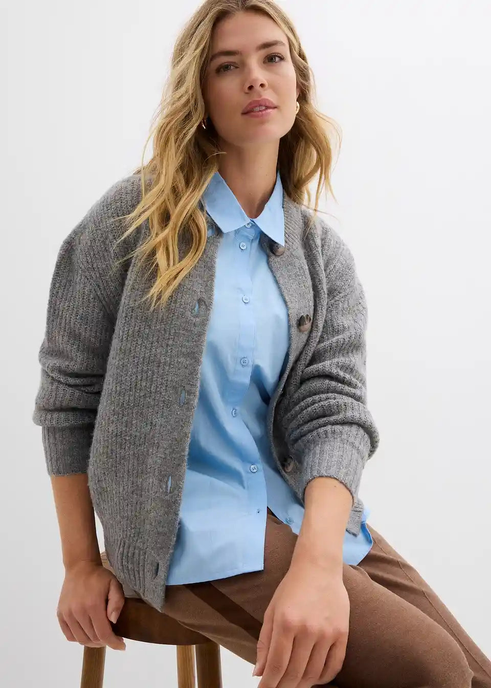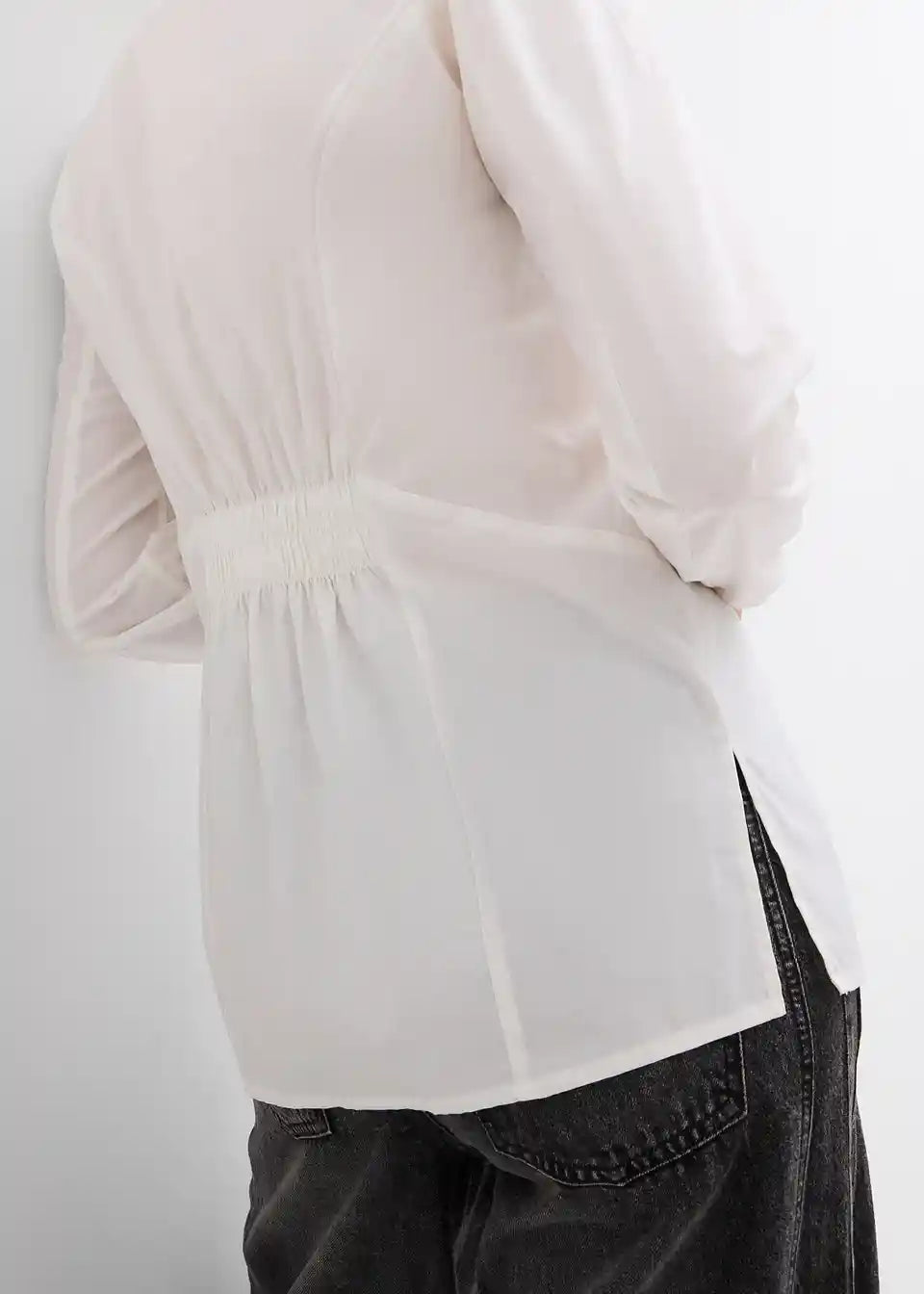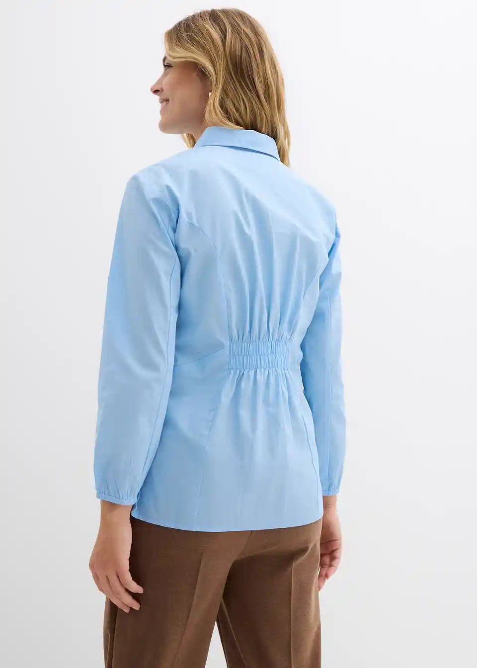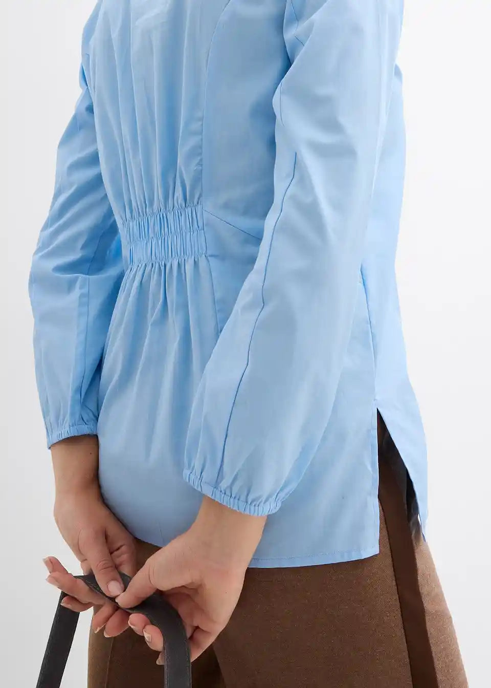 Langärmlige Baumwollbluse mit Elastikeinsatz am Rücken sowie elastischem Ärmelabschluss.