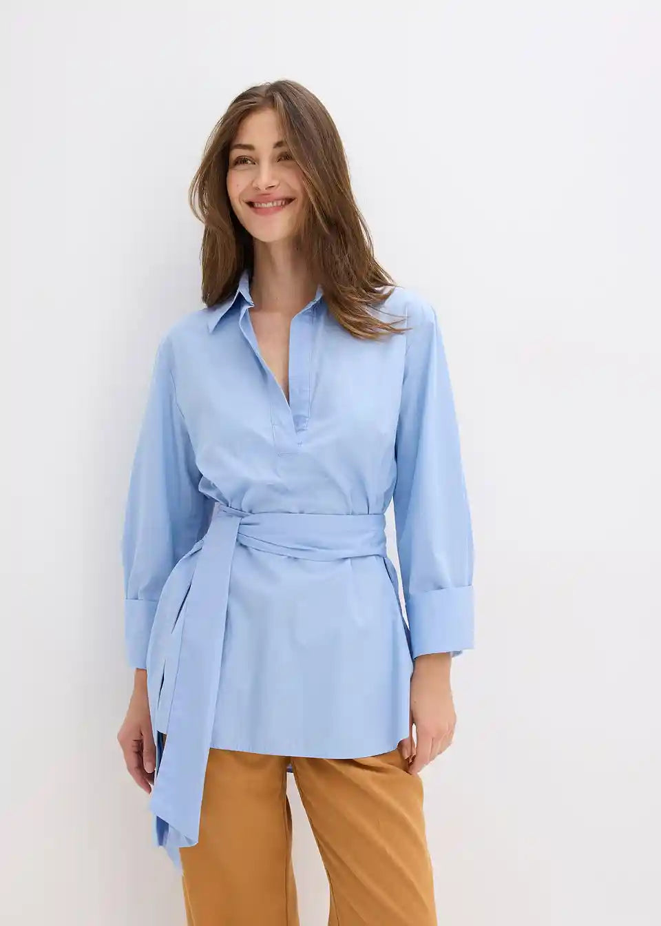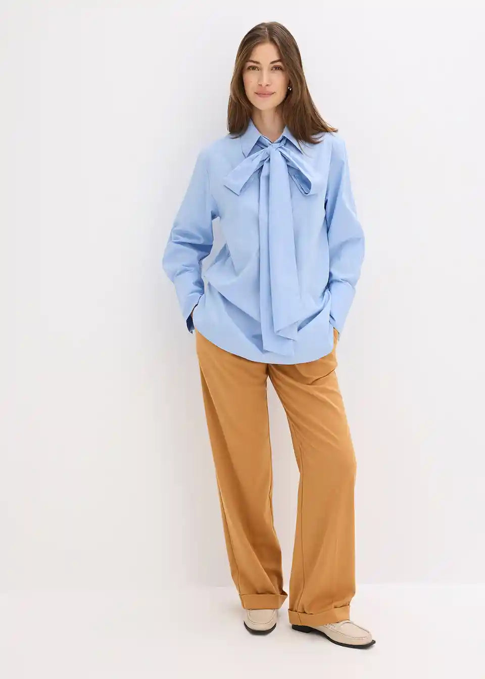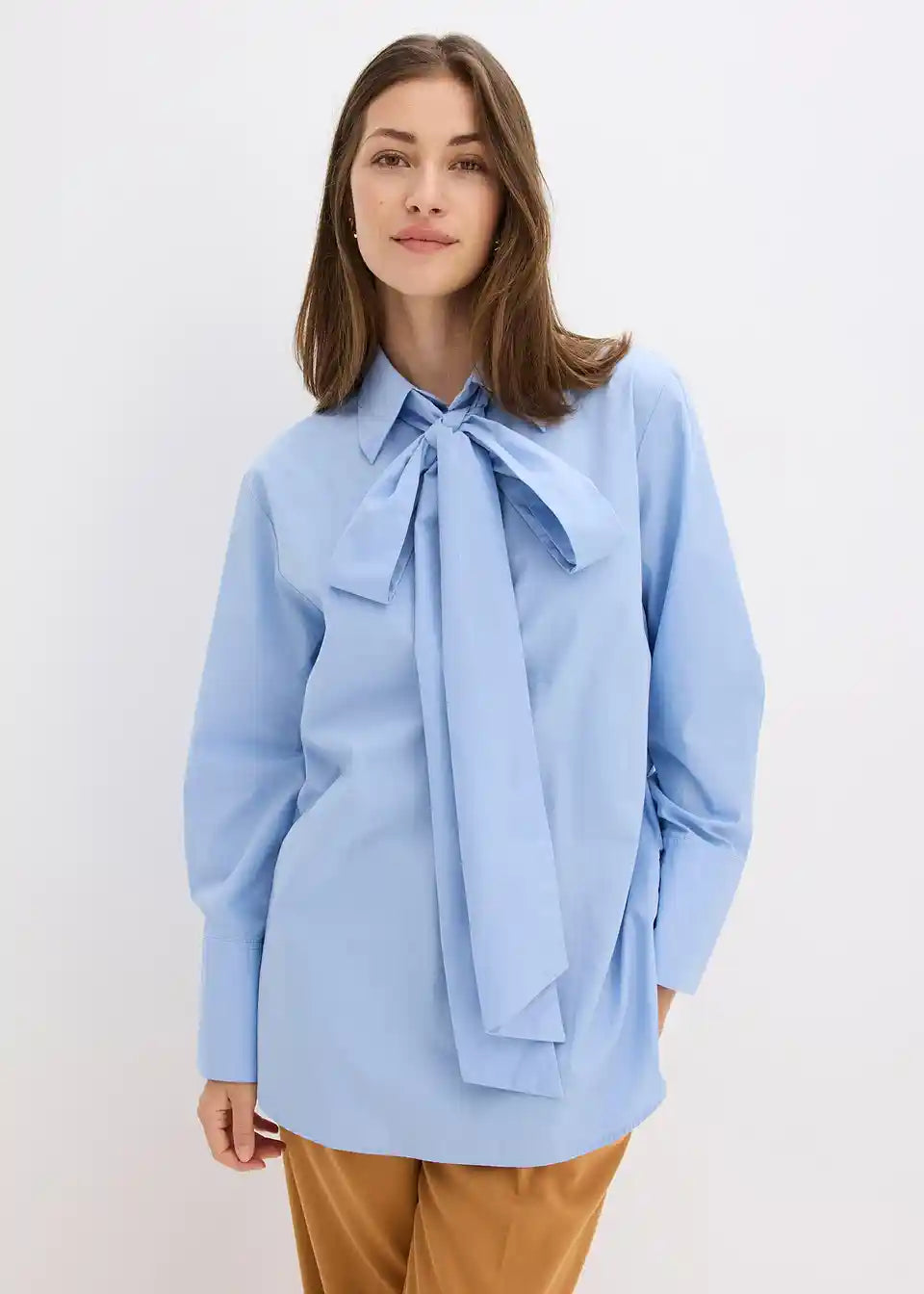 Bluse mit breiter Manschette und Kragen mit Schluppe