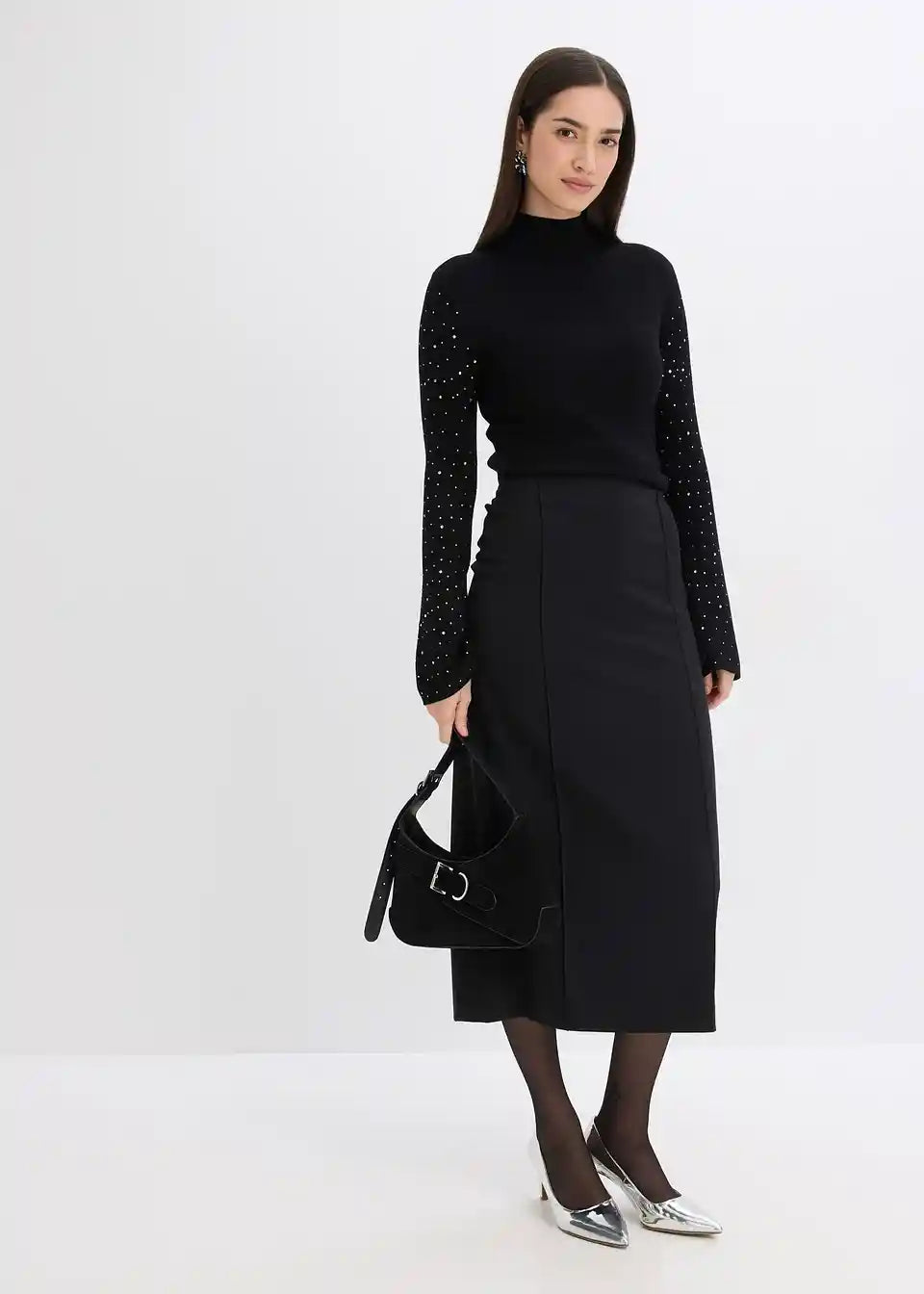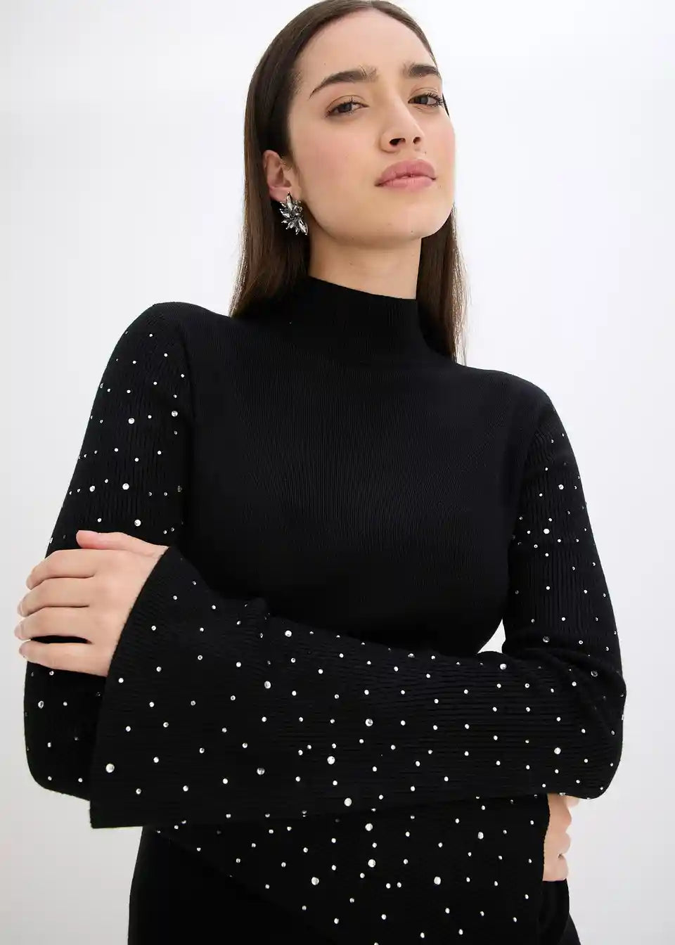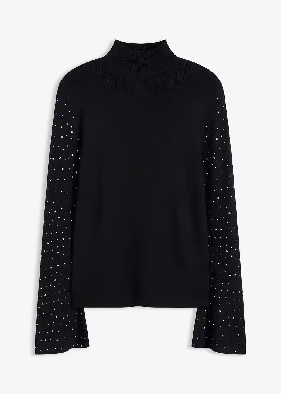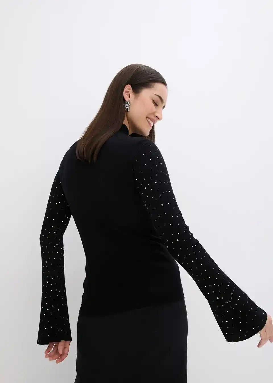 femininer Pullover mit Strass-verzierten Trompetenärmeln