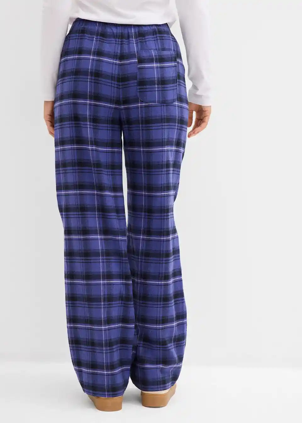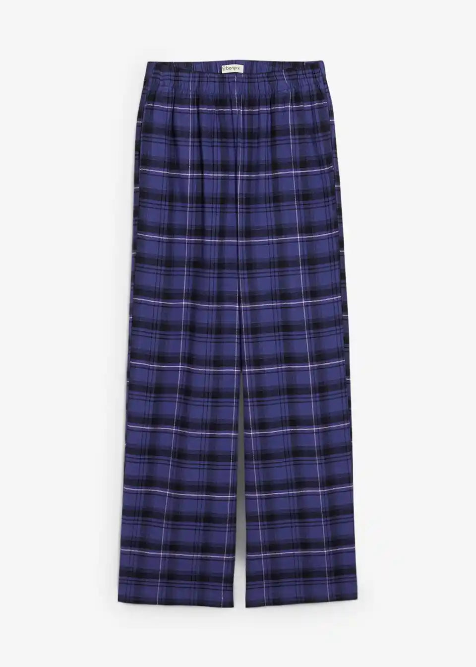 Flanellhose mit hoch geschnittenem, elastischem Bund und seitlichen Eingriffstaschen.