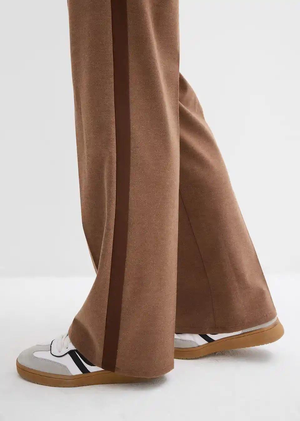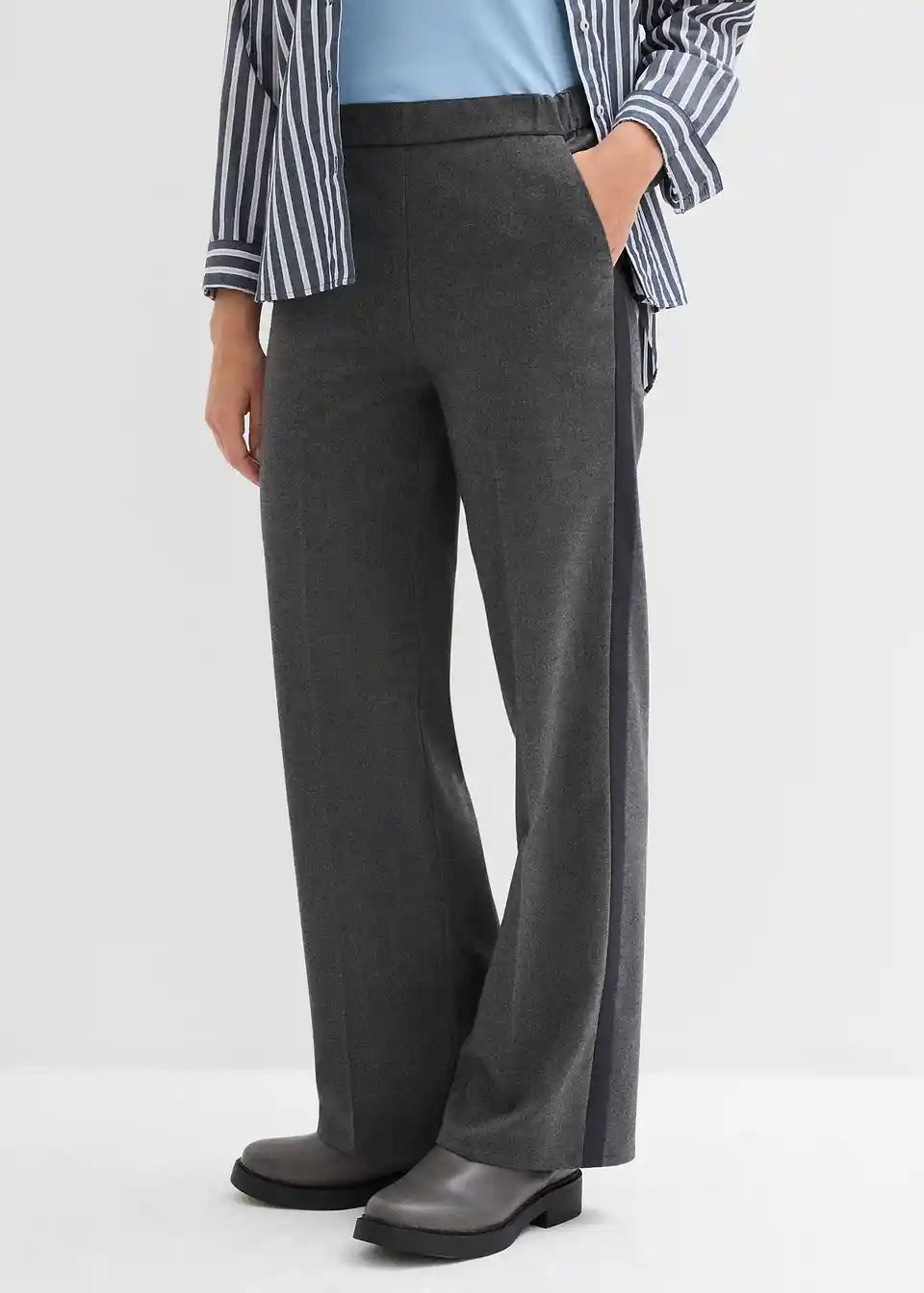 Marlene-Hose mit hoch geschnittenem, teil-elastischem Bund und seitlichem Streifendetail.