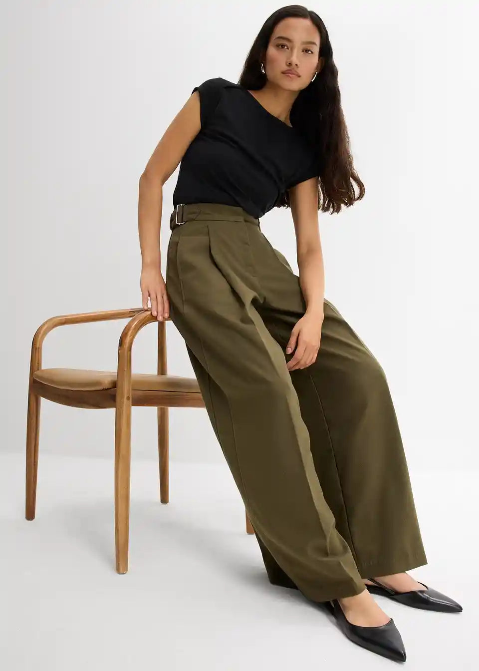 Hose mit Seitenschnallen aus Viskose-Mix