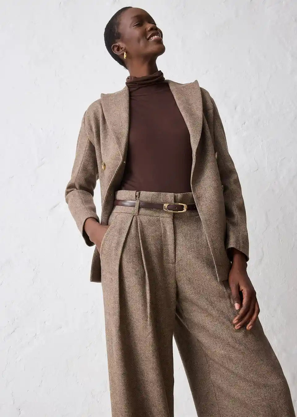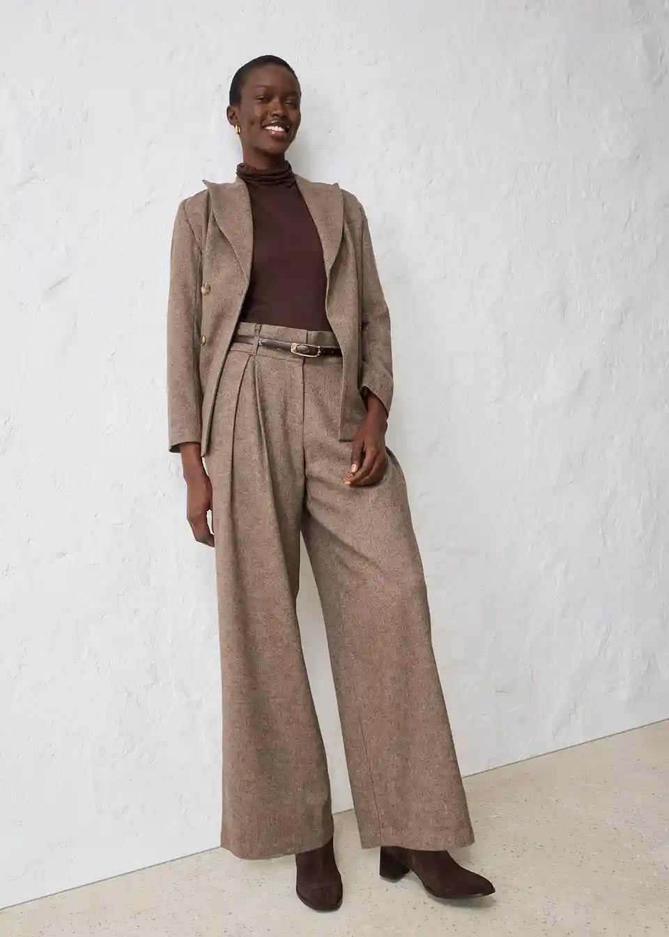 Weite Bundfaltenhose mit Wolle