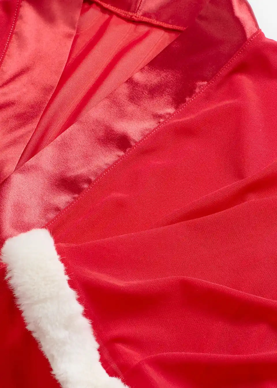 Kimono aus glänzendem Satin mit Fellimitat an den Ärmeln.