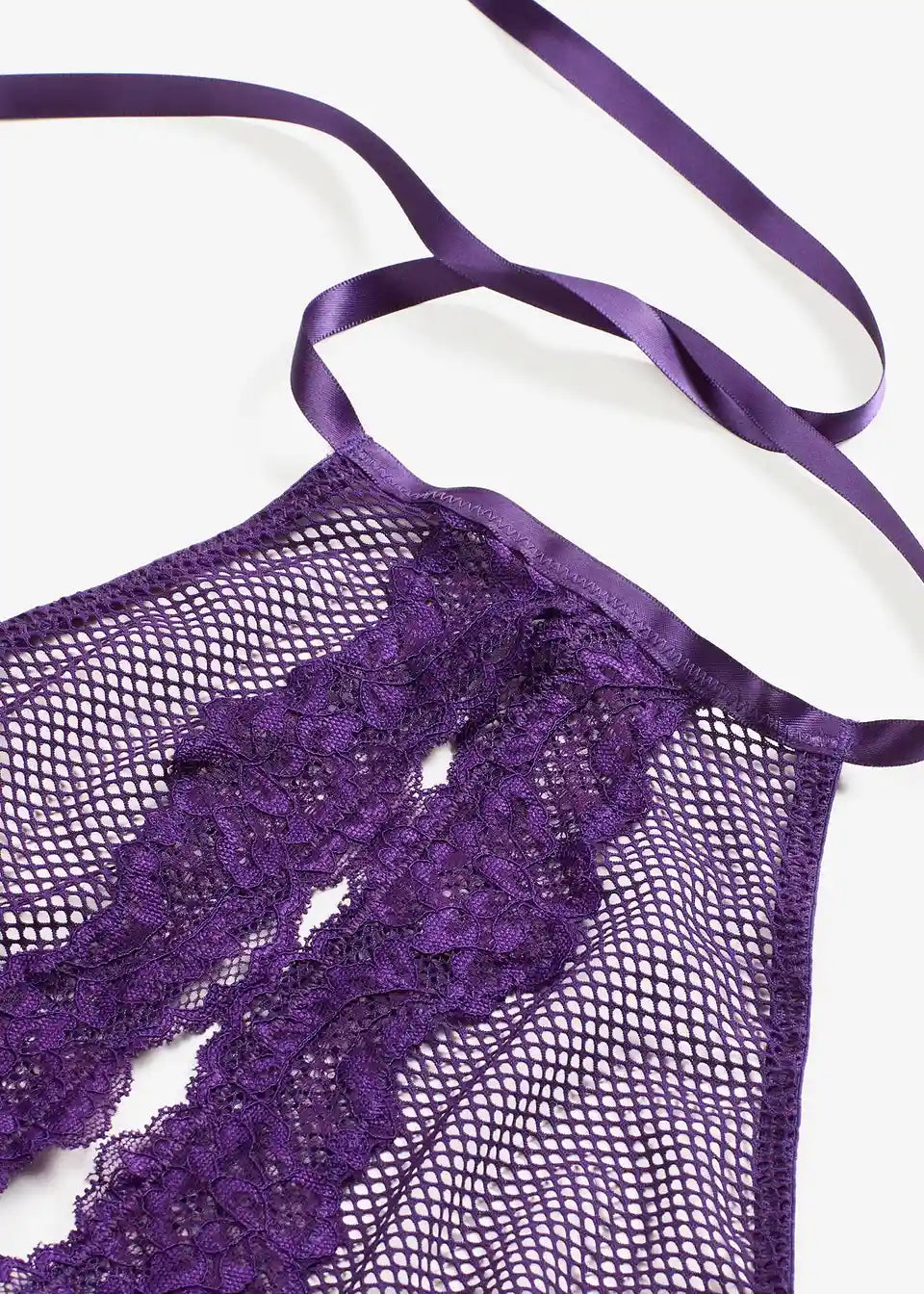 Stringbody aus Mesh mit schönen Spitzendetails.