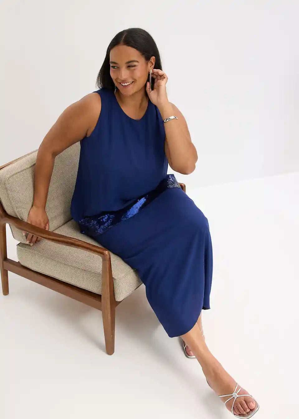 Modern und feminin: Abendkleid in Maxi-Länge mit Überwurf und Pailleten-Besatz