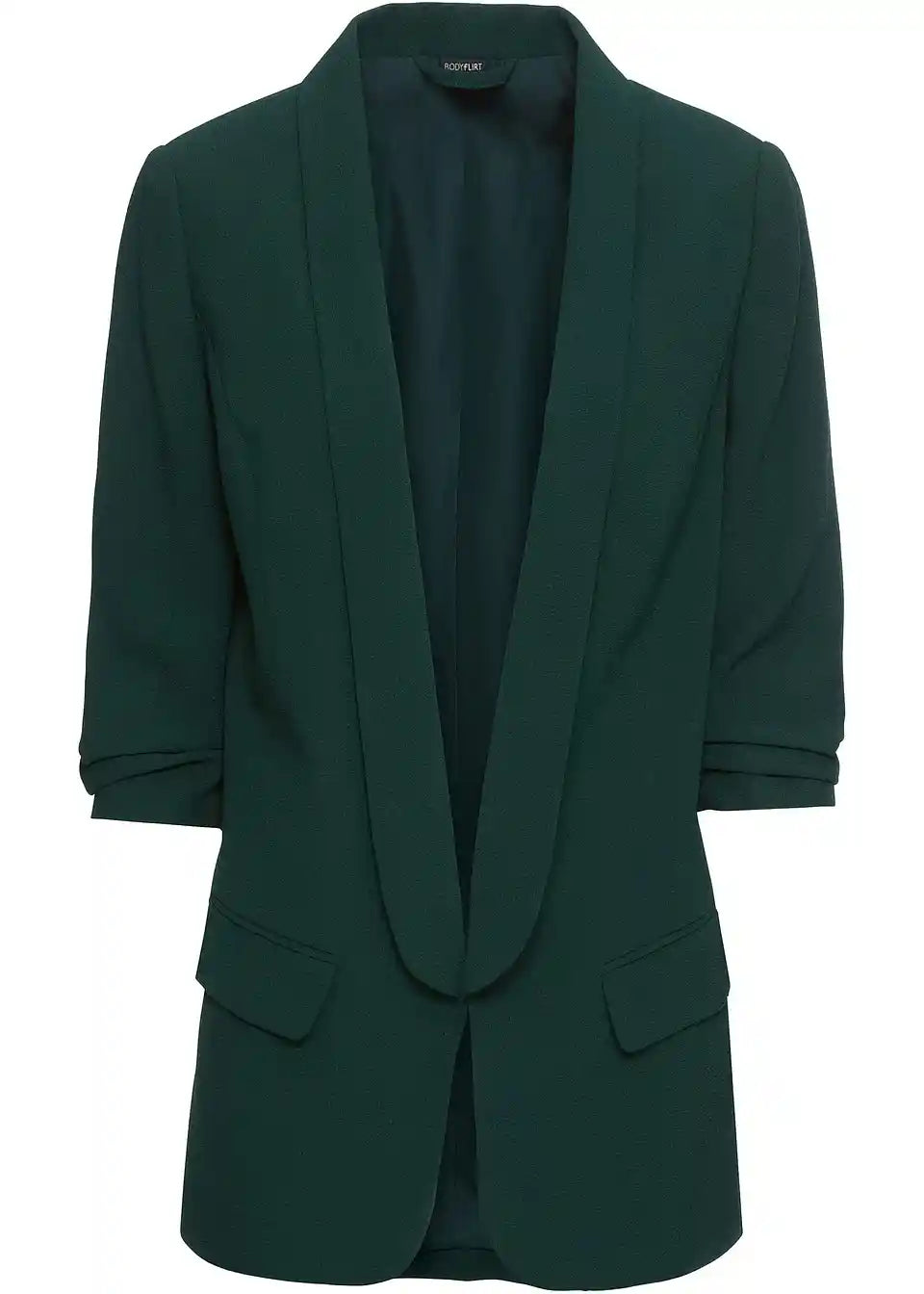 Longblazer mit drapierten Ärmeln und einem extra langen Kragen. Länge in Gr. 38 ca. 72 cm.