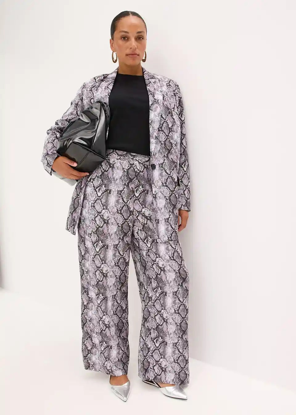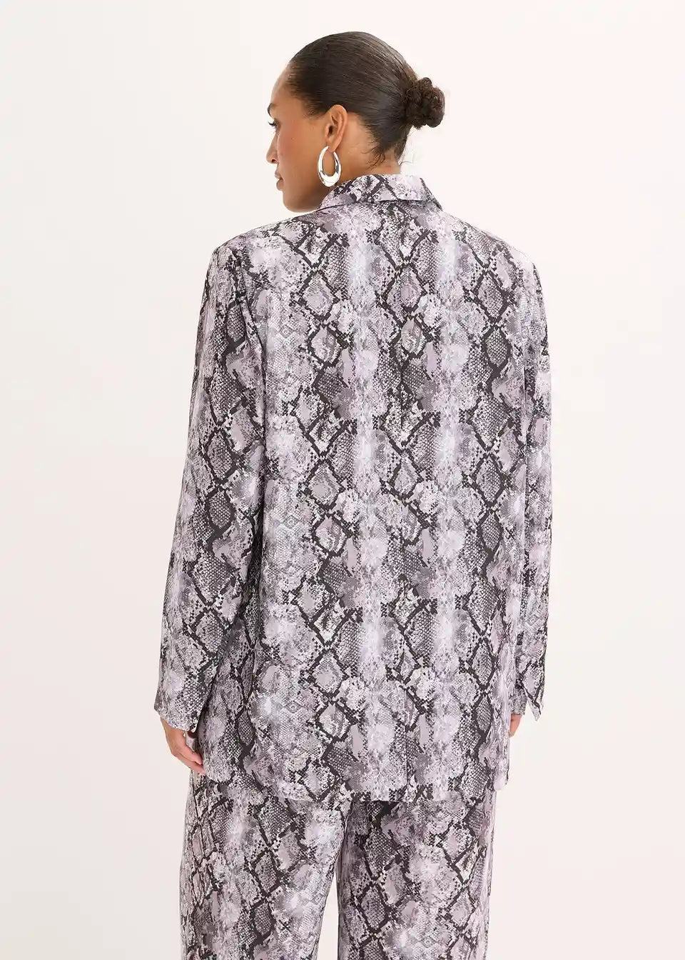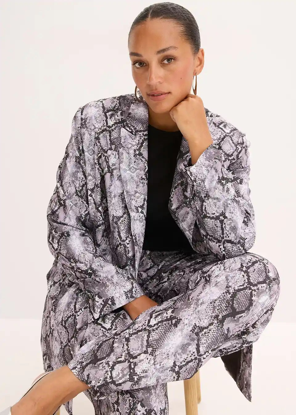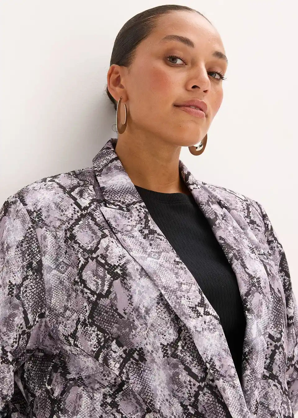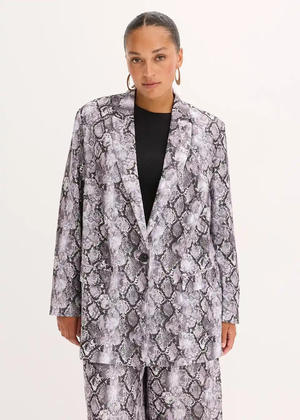 modisch bedruckter Longblazer mit Knopfverschluss vorne