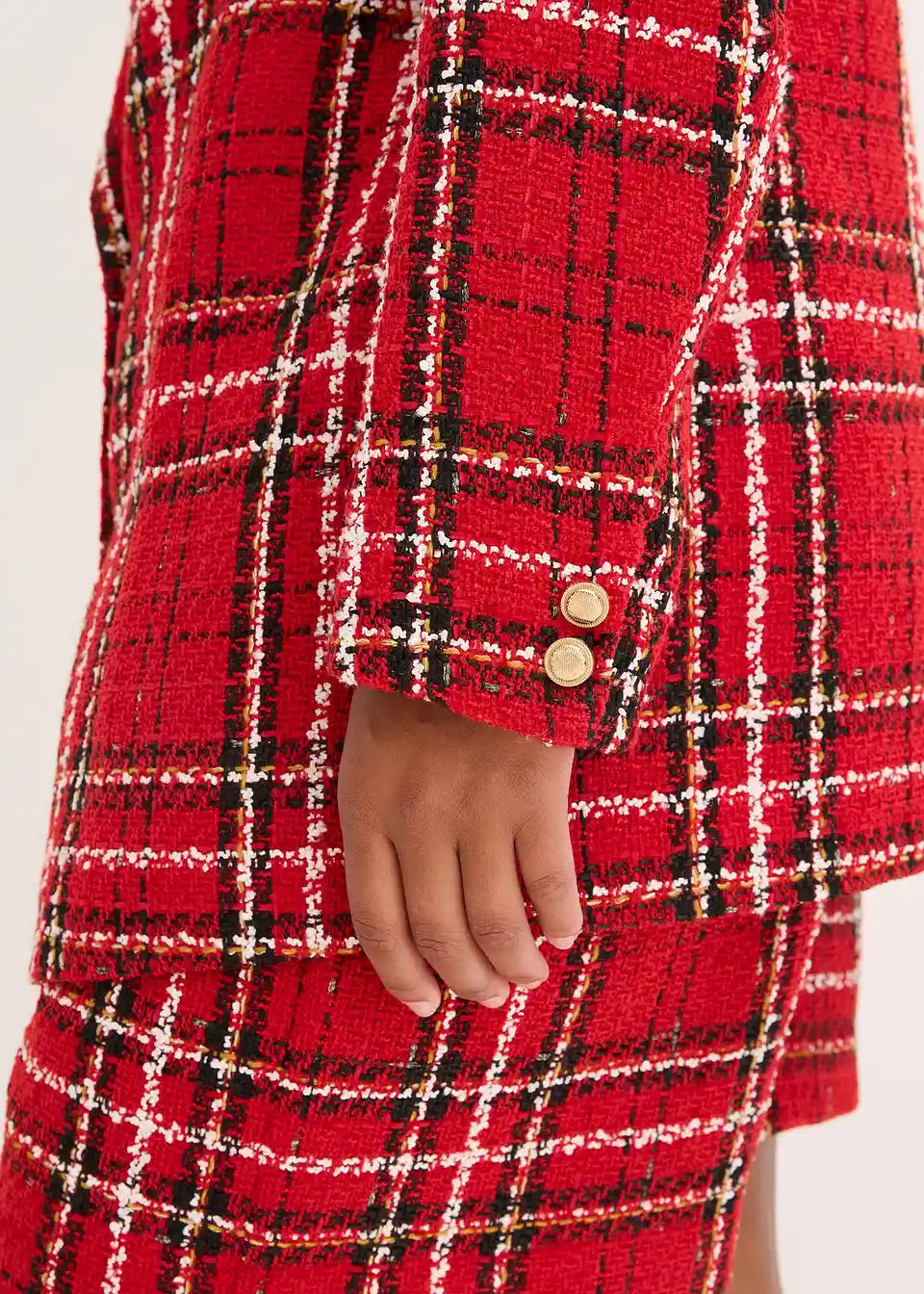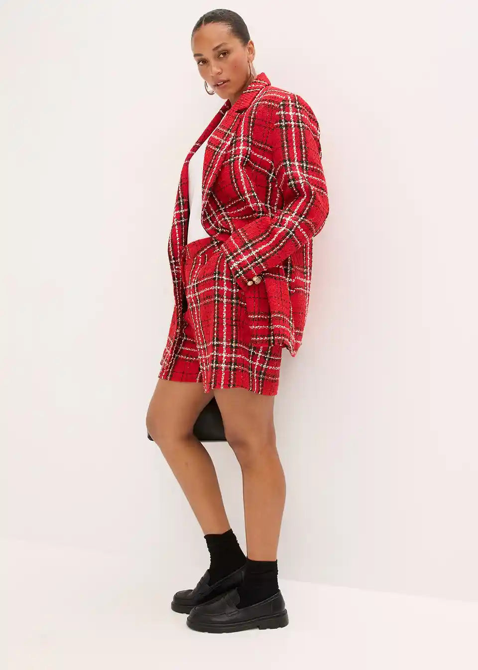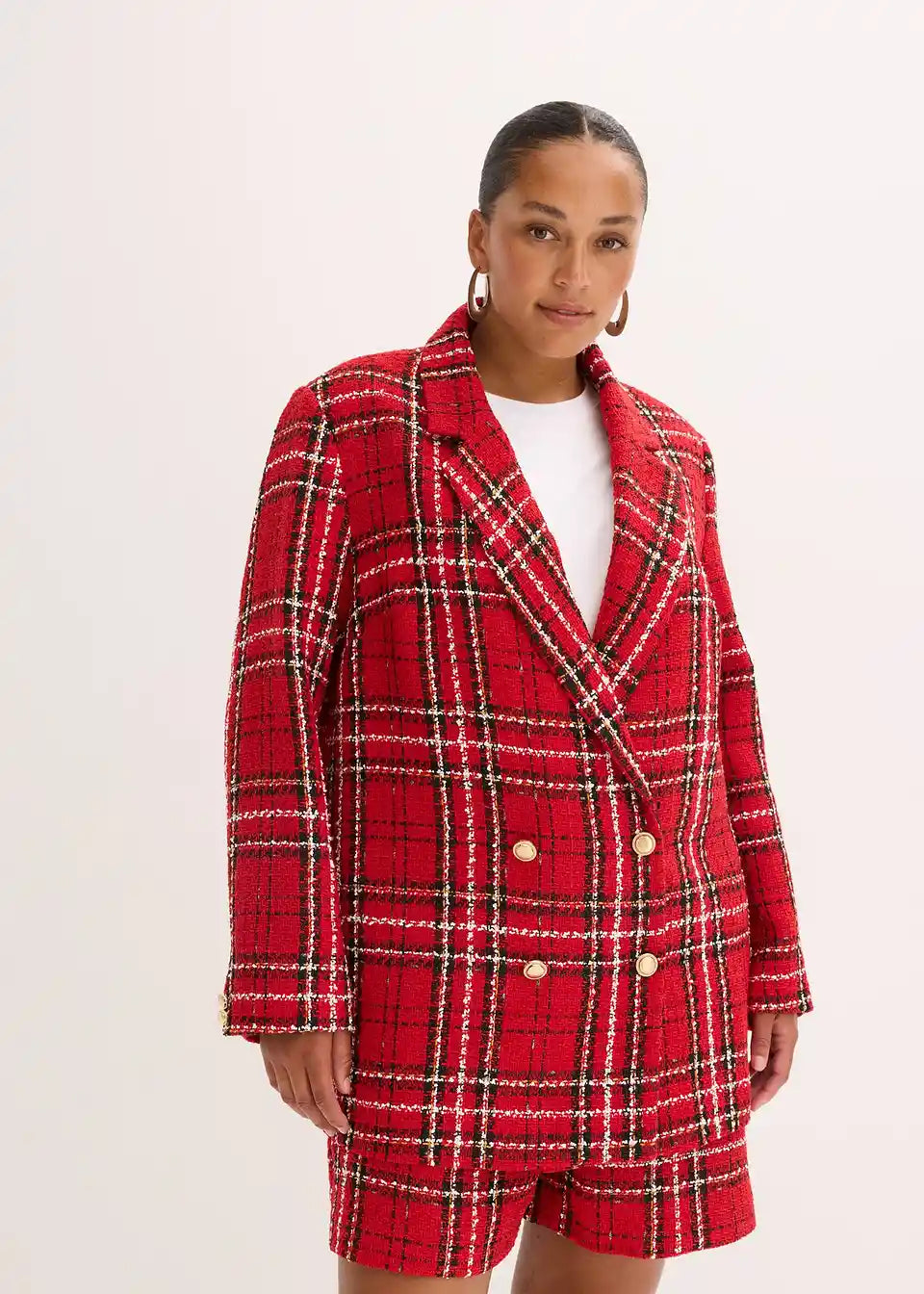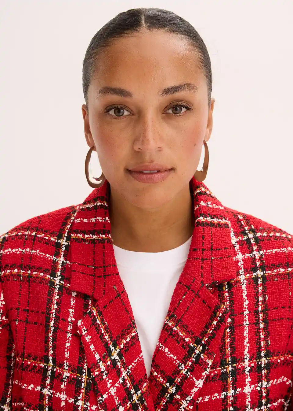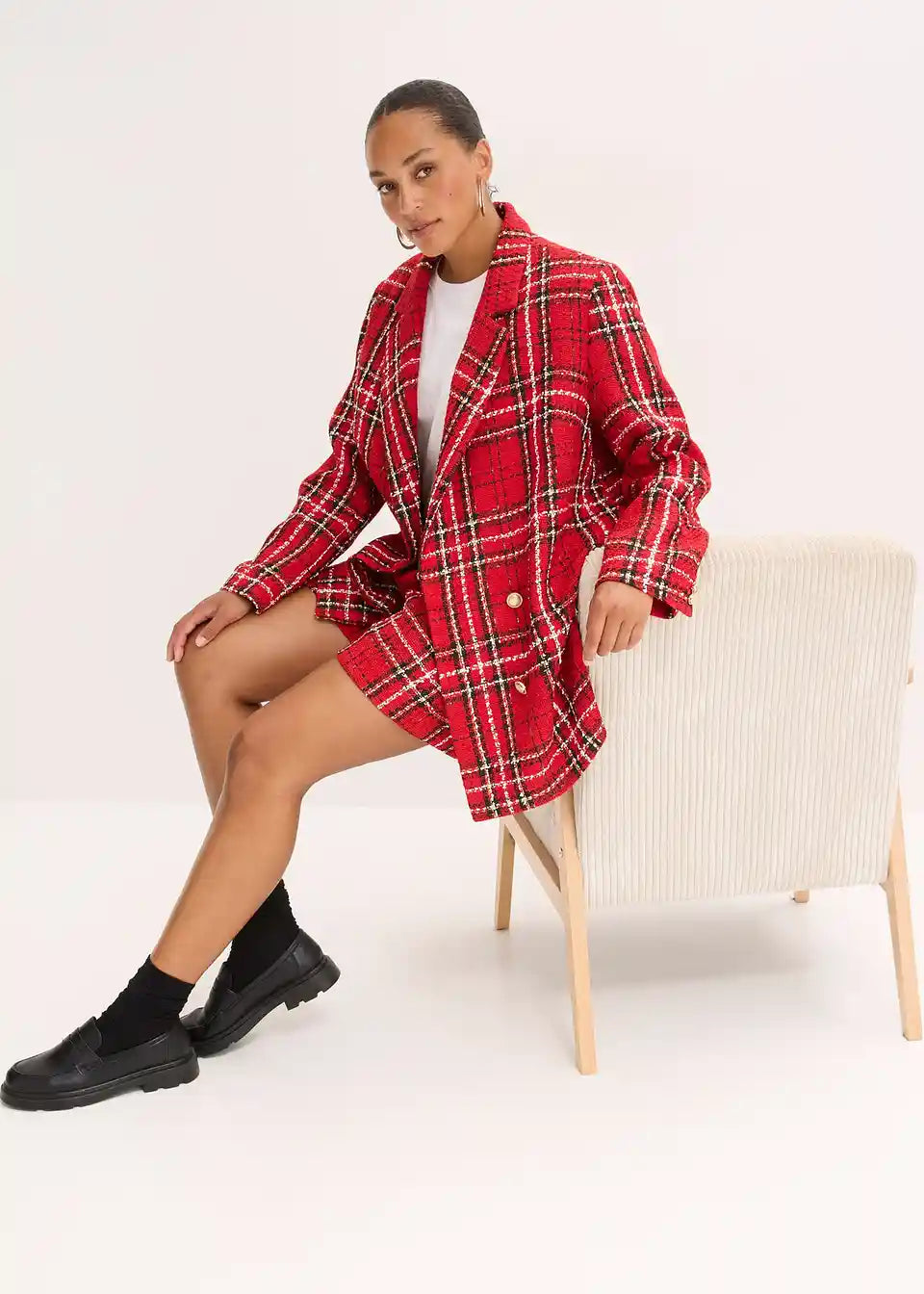 ^modischer Bouclé-Longblazer mit dekorativen Knöpfen