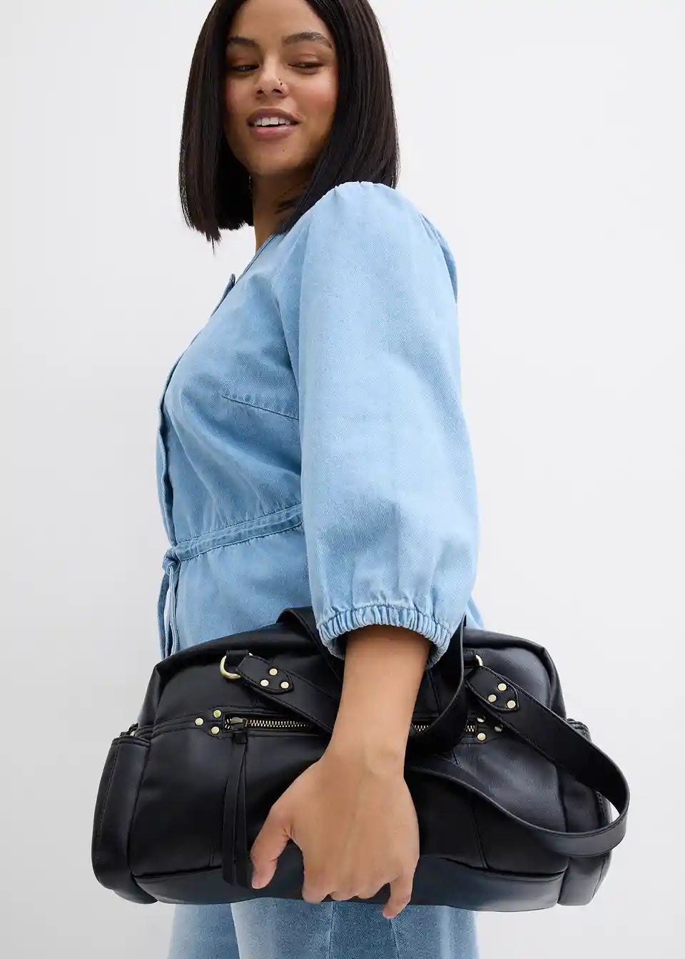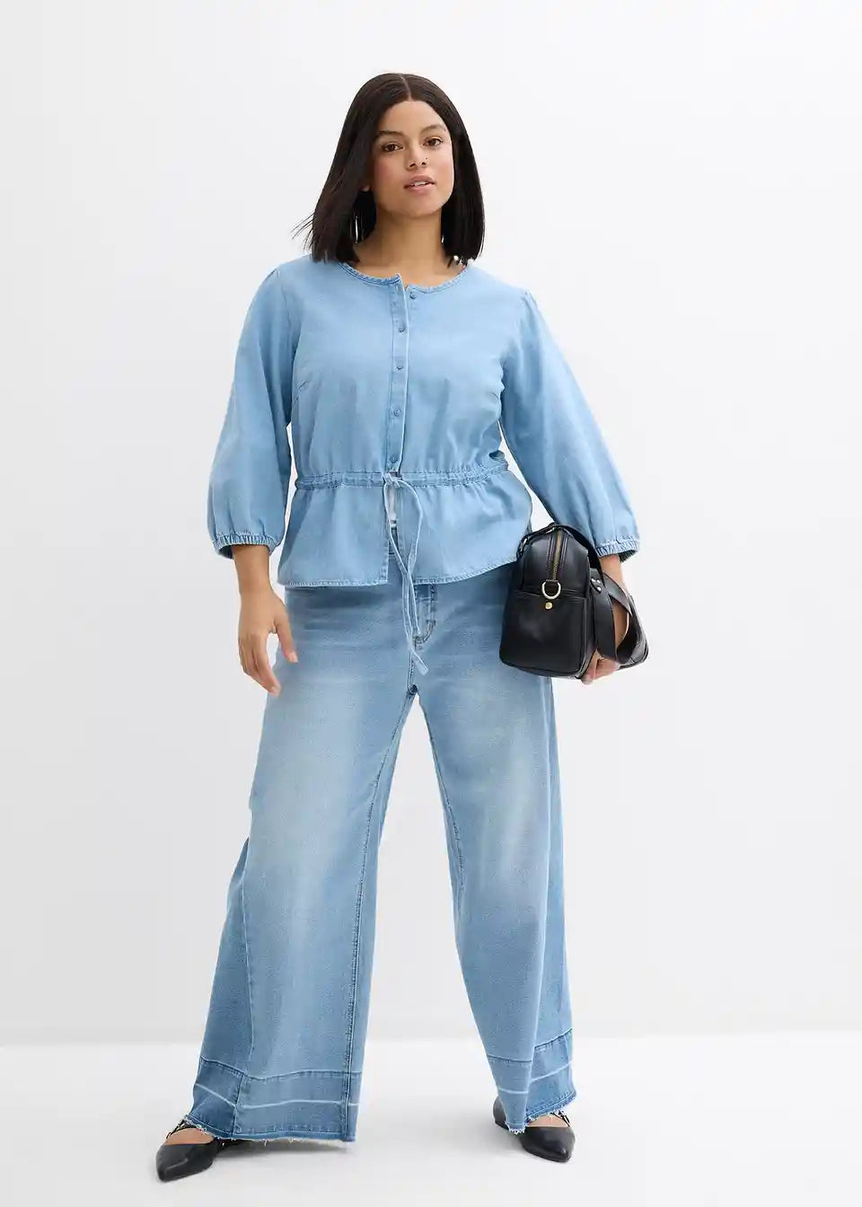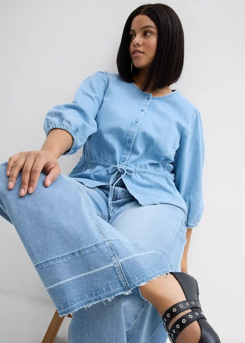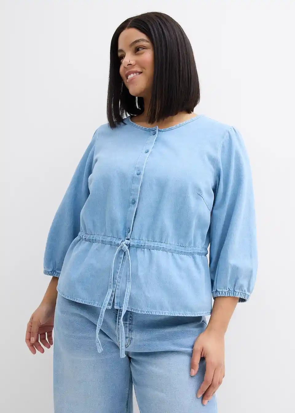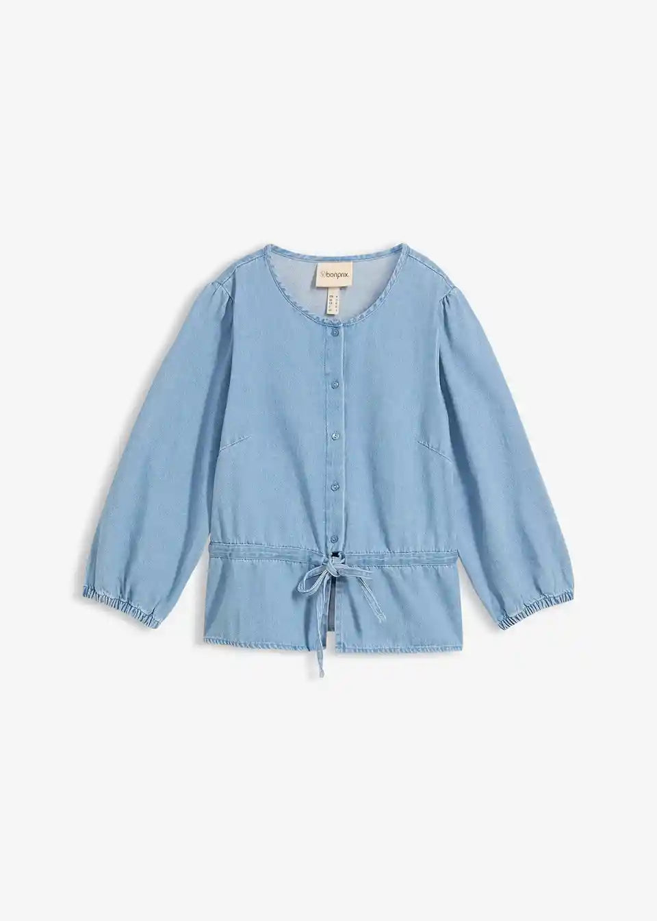 Jeansbluse mit Puffärmeln, Baumwolle