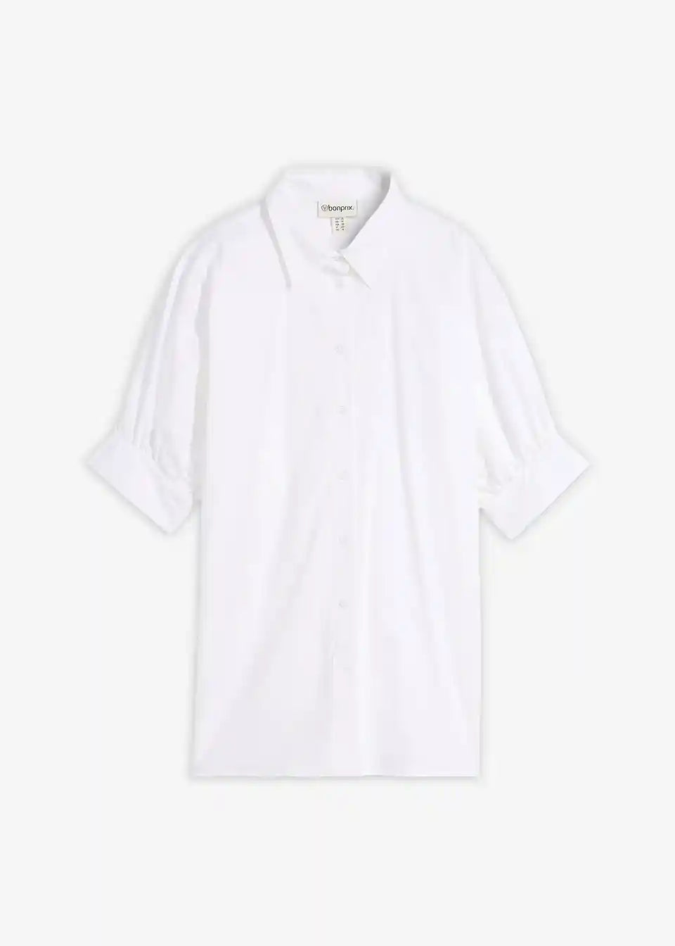 Oversize Bluse mit Knopfleiste vorne und Puffärmeln