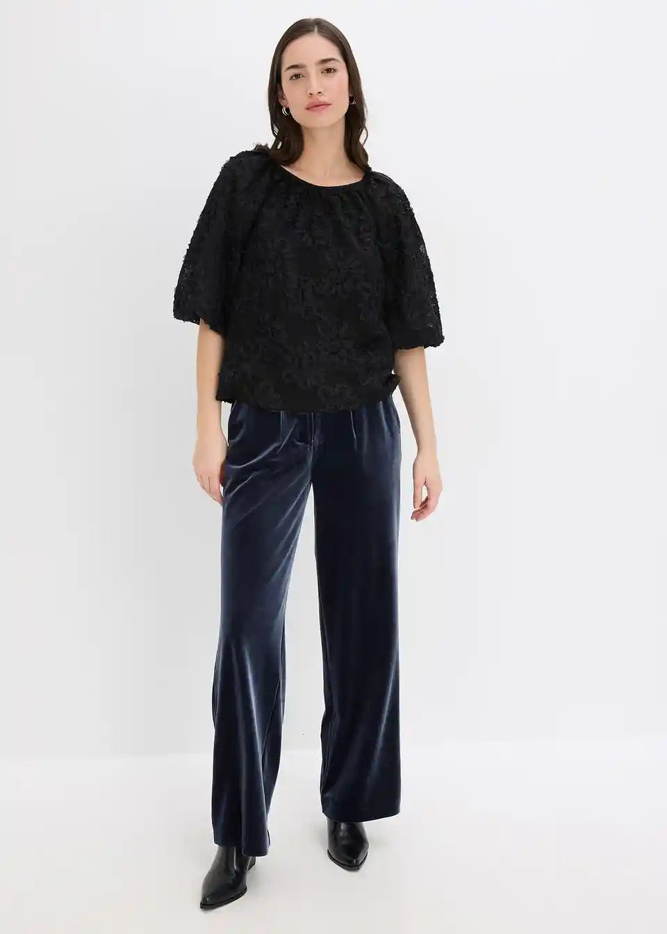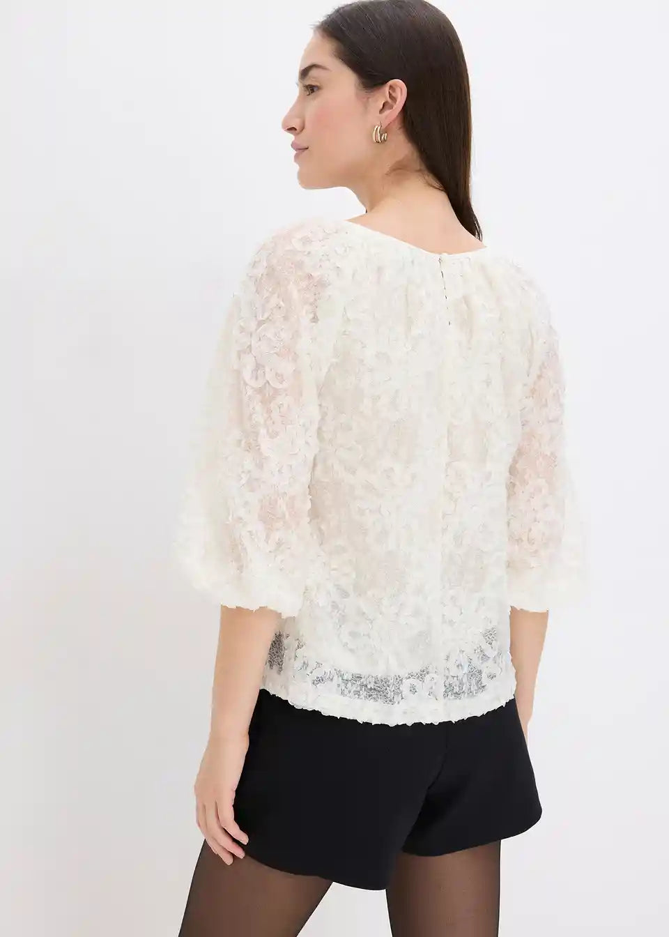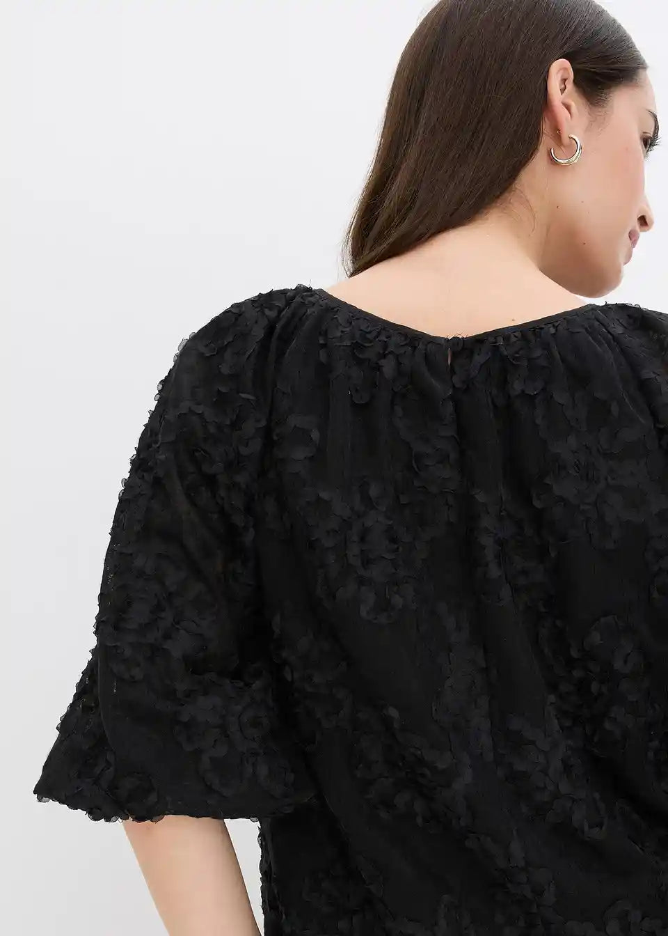 Schlupfbluse mit strukturiertem Blumen-Muster