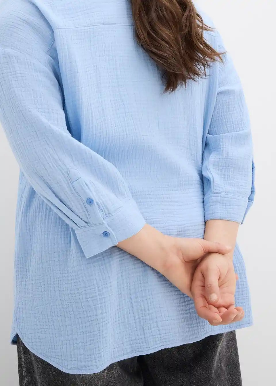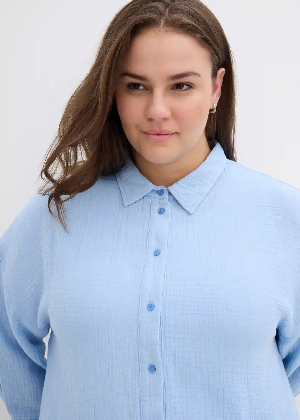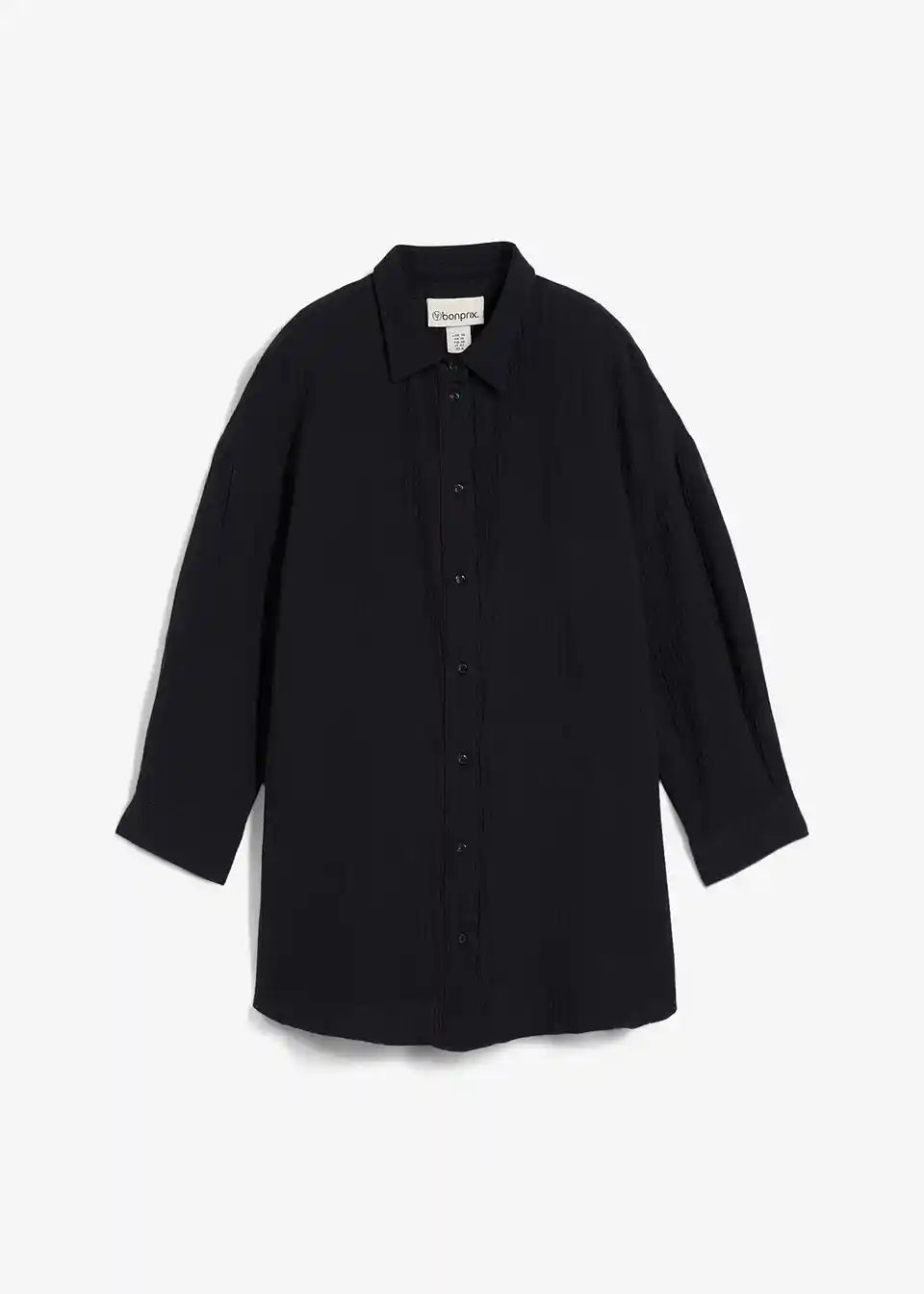 Lange Oversized-Bluse aus Musselin mit Knopfleiste