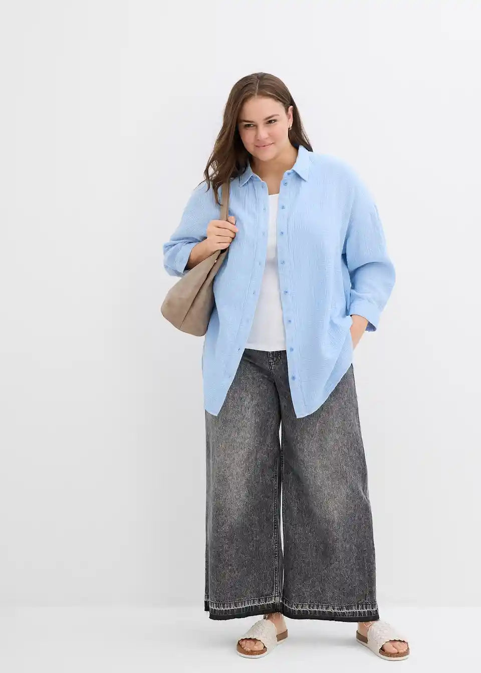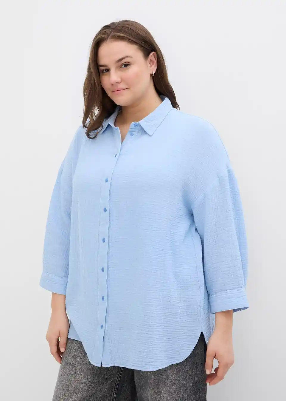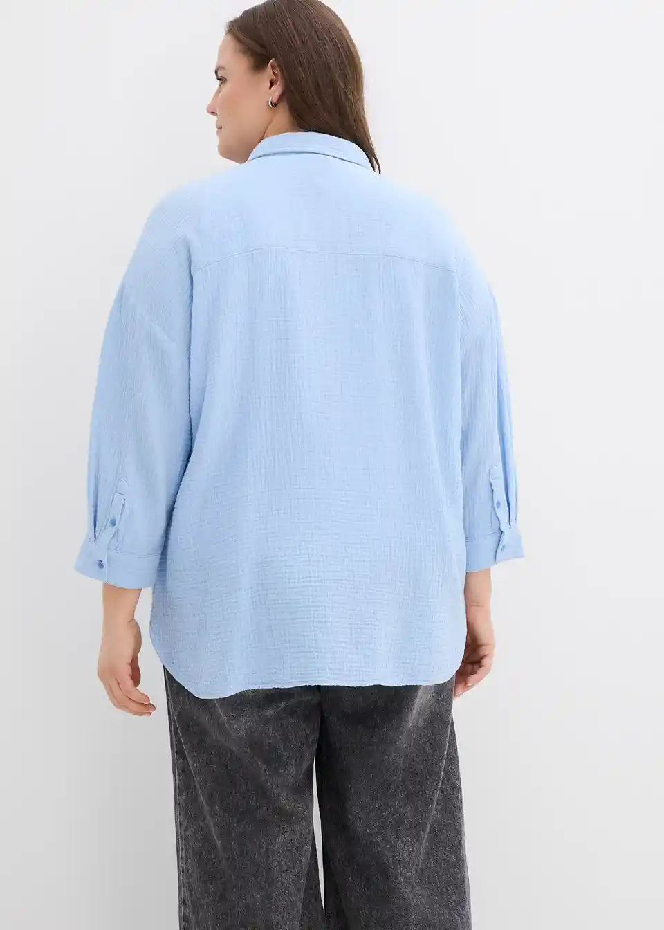 Lange Oversized-Bluse aus Musselin mit Knopfleiste