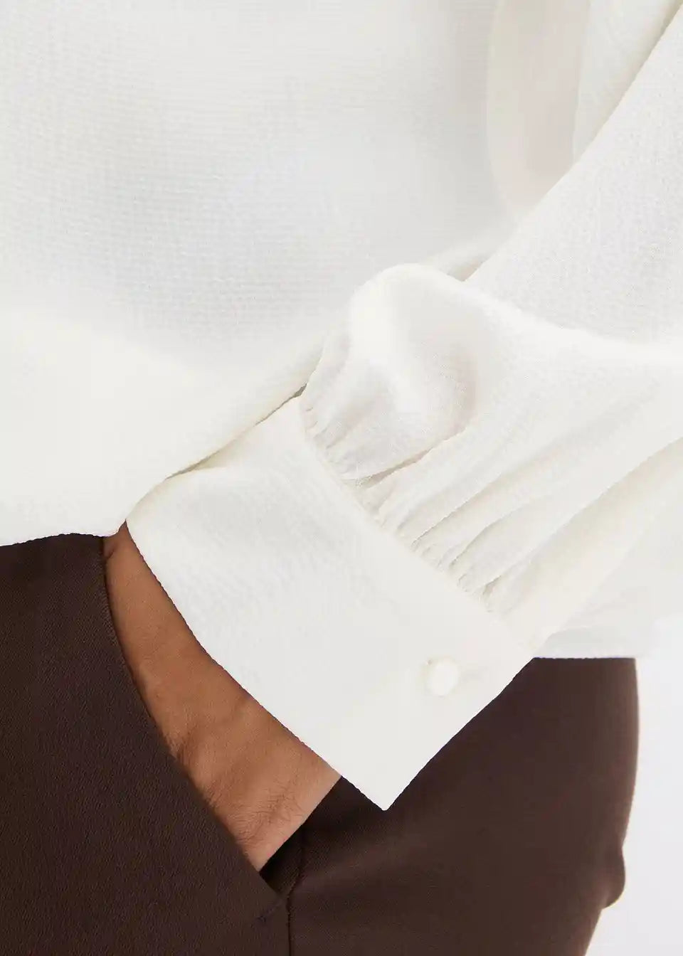elegante Bluse mit Stehkragen und Knoten